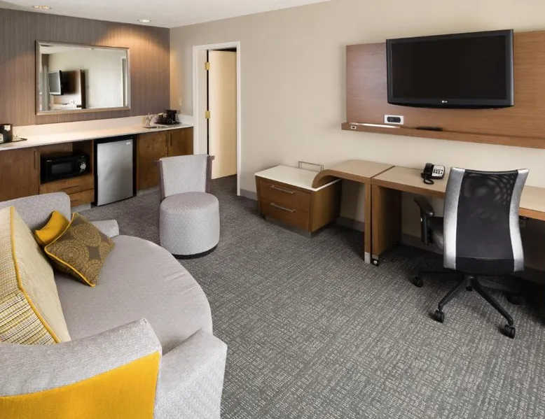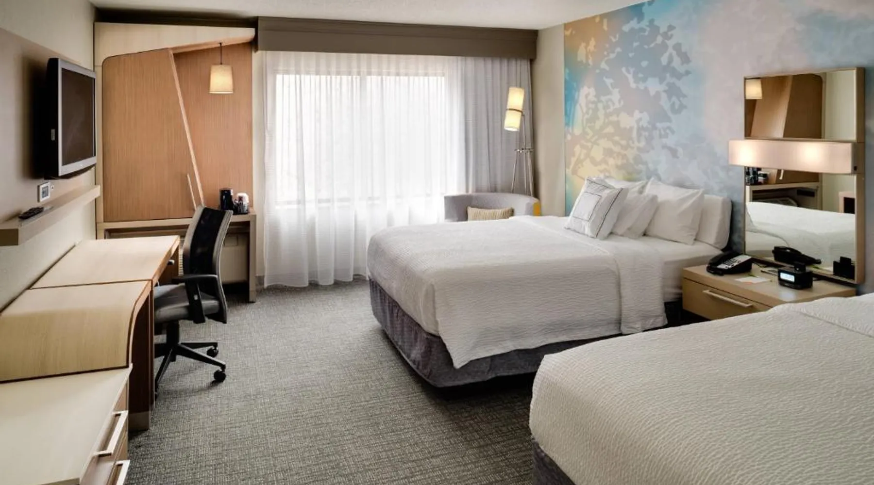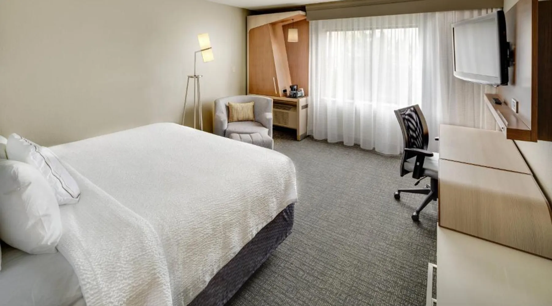Comfortable Accommodations: Courtyard St. Louis Airport/Earth City in Bridgeton offers comfortable rooms with air-conditioning, private bathrooms, and free WiFi. Each room includes a work desk, bath or shower, and a seating area with a sofa. Exceptional Facilities: Guests can enjoy an indoor swimming pool, fitness center, and a restaurant serving American cuisine. Additional amenities include a elevator and a 24-hour front desk. Free on-site parking is available. Prime Location: Located 6.8 mi from St. Louis Lambert International Airport, the hotel is near attractions such as Hollywood Casino St. Louis (3.7 mi), St. Louis Gateway Arch (22 mi), and Forest Park (14 mi). Guests appreciate the bed comfort and room cleanliness. Offering free Wi-Fi and cable TV, this room includes tea and coffee-making facilities.