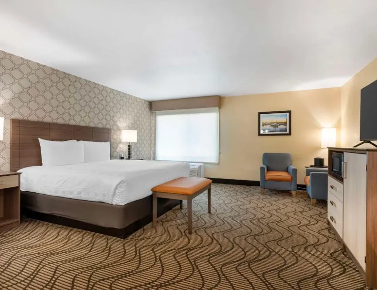 Centrally located in the Historic Waterfront Community of Benicia, Best Western Plus Heritage Inn is just minutes from Vallejo. Guests of the hotel can enjoy a free hot breakfast buffet and free WiFi. Each spacious guest room comes with cable TV and air-conditioning. Plush bedding and soft lighting provide additional comfort. A microwave and refrigerator are included for in-room dining convenience. The private bathroom features free toiletries and a hairdryer. Select rooms offer relaxing spa baths. Guests can take a dip in the outdoor pool or relax in the hot tub. A tour desk and car hire are offered onsite to assist guests as they explore their surroundings. Six Flags Discovery Kingdom is 9.9 mi away. The Greater San Francisco Bay Area is 40 minutes' drive away from Best Western Plus Heritage Inn. This air-conditioned room includes a cable TV, a work desk, a microwave and a refrigerator.