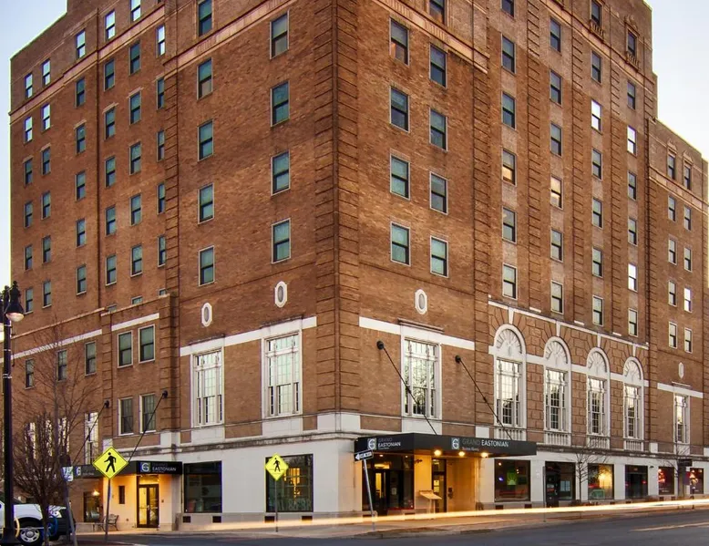 Featuring luxury suites, spacious rooms and extended stay accommodations, this hotel offers accommodations with full kitchens and flat-screen TVs. Located just a 4-minute walk from The Crayola Factory and The State Theater, it features an indoor pool and gym. The one to two-bedroom suites at Grand Eastonian Suites Hotel provide seating rooms with sofas, desks and free Wi-Fi. They have wood floors and marble accent bathrooms that feature spa tubs. The kitchens include dishes. For guests’ convenience, the hotel has a coffee shop that serves a continental or hot breakfast. It also offers a business center and meeting facilities. Concierge service is available. Grand Eastonian Hotel is within walking distance of the Siegel Museum and Lafayette College. Lehigh Valley International Airport is 13 miles away. This two-bedroom suite has a king and double bed, a queen sleeper sofa, whirlpool bath, style beamed ceiling, kitchen and a patio with river views.