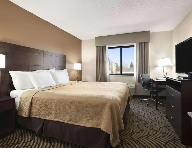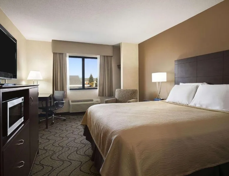 Comfortable Accommodations: Days Inn by Wyndham Columbia Mall in Grand Forks offers family rooms with air-conditioning, private bathrooms, and free WiFi. Each room includes a work desk, TV, and free toiletries. Leisure Facilities: Guests can enjoy an indoor swimming pool, hot tub, and fitness center. Additional amenities include a business area, sofa bed, and shared bathrooms. Convenient Location: Located 6.8 mi from Grand Forks International Airport and 3.1 mi from the University of North Dakota, the hotel provides easy access to local attractions. Guest Services: The property offers a 24-hour front desk, housekeeping, and free on-site parking. A continental breakfast is provided each morning. Offering free toiletries, this suite includes a private bathroom with a bath, a shower and a hairdryer. The suite offers air conditioning, a coffee machine, a sofa, a carpeted floor and a flat-screen TV with cable channels. The unit offers 2 beds.