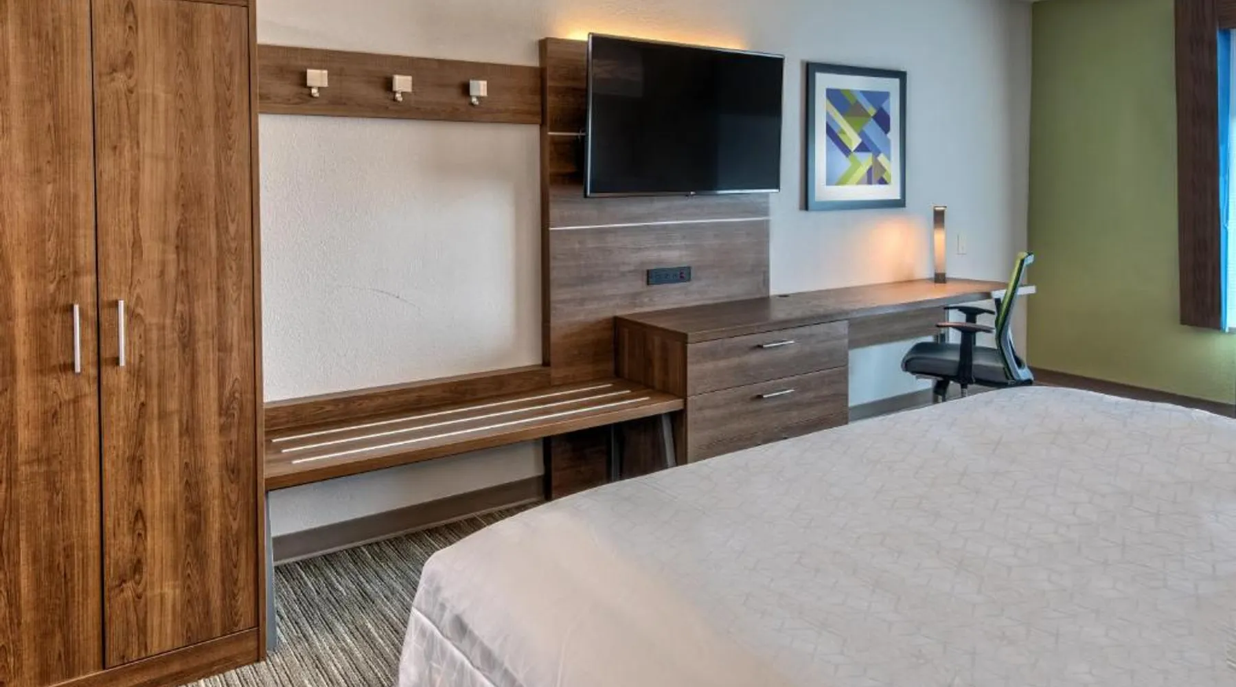 Just a 20-minute drive from the FedEx World Headquarters, the Holiday Inn Express Hotel & Suites Memphis Southwind offers a free local area shuttle service along with spacious guest rooms. The rooms of the Memphis Southwind Holiday Inn Express offer guests microwaves and mini-refrigerators. There is also free Wi-Fi. The fitness center and outdoor pool offer the opportunity to relax after a busy day. The Pink Palace Museum and the Memphis Zoo are just an 18-minute drive from the property. This room features a desk with an ergonomic chair, microwave, and small refrigerator. An accessible bath tub is also included.