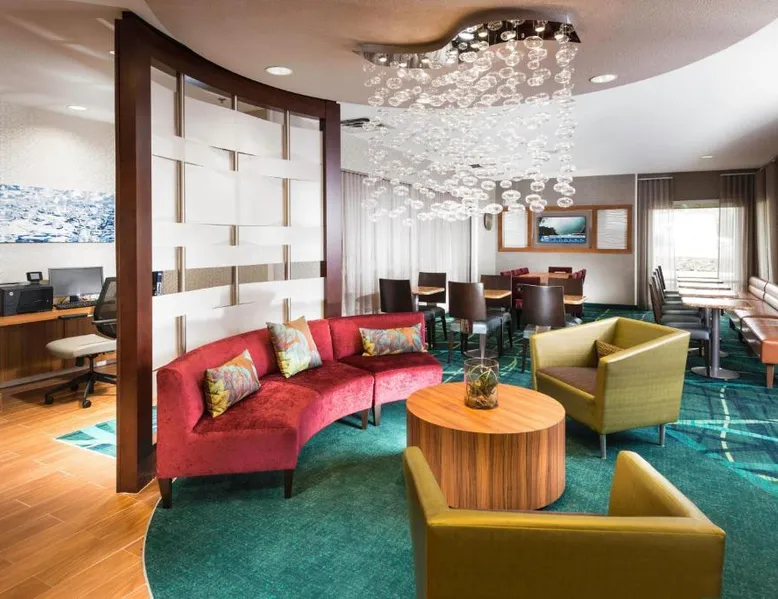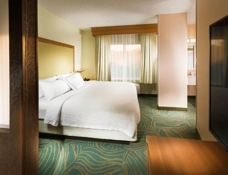 Comfortable Accommodations: SpringHill Suites by Marriott Bentonville in Bentonville offers family rooms with air-conditioning, kitchenettes, private bathrooms, and free WiFi. Each room includes a work desk, seating area, and TV. Exceptional Facilities: Guests enjoy an indoor swimming pool, fitness center, and free use of bicycles. Additional amenities include a hot tub, lounge, 24-hour front desk, minimarket, electric vehicle charging station, business area, and free on-site parking. Prime Location: Located 11 mi from Northwest Arkansas Regional Airport, the hotel is near attractions such as Crystal Bridges Museum of American Art (5 mi) and Peel Mansion And Historic Gardens (3.7 mi). Free on-site parking is available. Guest Satisfaction: Highly rated for room cleanliness, staff support, and comfort. A seating area with a sofa bed and flat-screen TV is featured in this room. A kitchenette is provided.