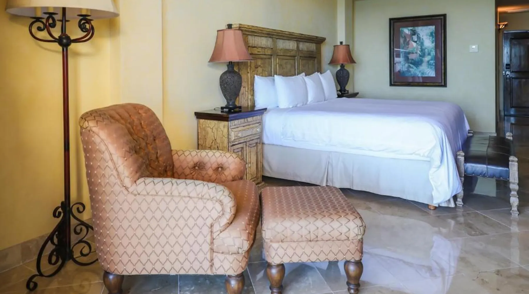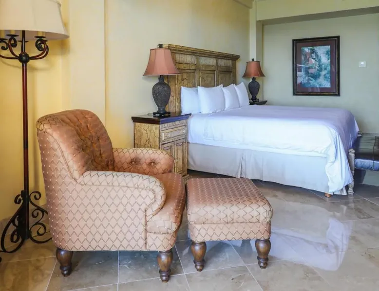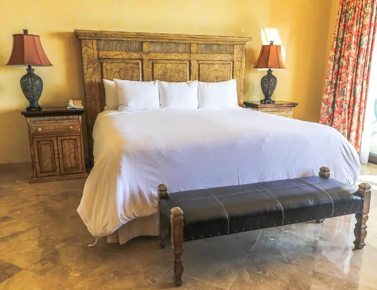 Located across the street from Loreto’s famous beach-walk Malecon, within walking distance to Loreto’s Central Plaza, Municipal Palace and “Our Lady of Loreto” Mission, the Hotel La Mision offers two restaurants, with pool side service, outdoor terrace dining and stunning views of the Sea of Cortez. Beautiful, clean rooms with private balconies and amazing ocean or mountain views. La Mision has a large pool, hot tub, and spa to help you relax with massages, facials, or manicures. Enjoy the International cuisine in Los Olivos Restaurant or a fire baked pizza from the Mezquite Pizza Grill. Free wi-fi. A clothing & gift shop. Onsite Starbucks Coffee shop. There are also tours available including whale watching fishing, fishing, snorkeling & boating. This room features free Wi-Fi, 1 King-size bed, air conditioning, flat-screen satellite TV and a private bathroom with shower and free toiletries. These rooms have terrace or balcony with and mountain views.