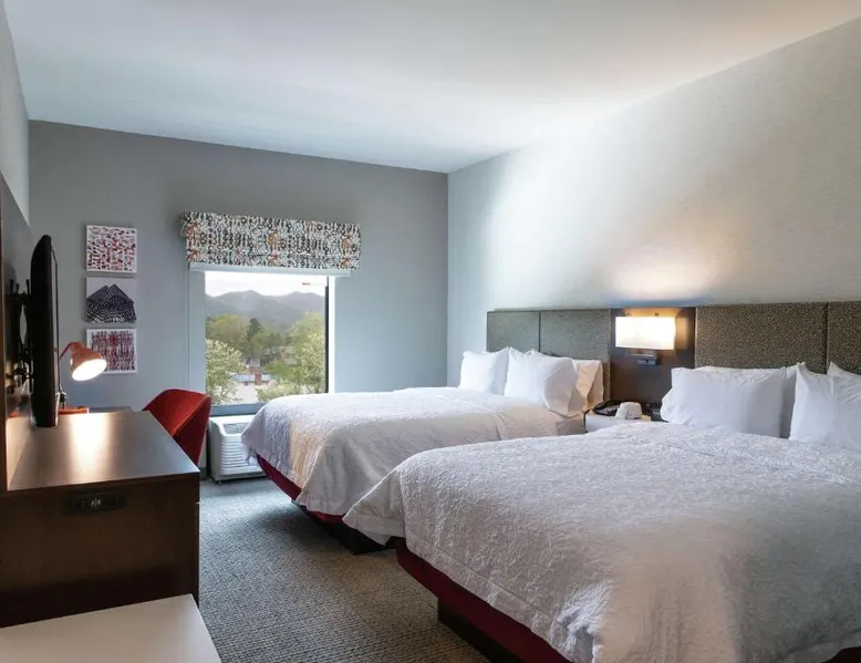 Comfortable Accommodations: Hampton Inn Black Mountain in Black Mountain offers comfortable rooms with air-conditioning, free WiFi, and amenities such as tea and coffee makers, hairdryers, and free toiletries. Leisure Facilities: Guests can enjoy a saltwater and indoor swimming pool, outdoor fireplace, fitness room, and outdoor seating area. Free on-site private parking is available. Dining Experience: A buffet breakfast is served with warm dishes, juice, fresh pastries, pancakes, cheese, and fruits. Convenient Location: Located 23 mi from Asheville Regional Airport, the hotel is near attractions like Biltmore Estate (17 mi) and the Folk Art Center (11 mi). Highly rated for breakfast, room cleanliness, and comfort. This quadruple room has air conditioning, a tea and coffee maker and a TV. The unit has 2 beds.