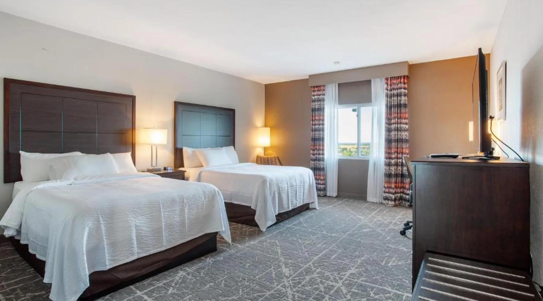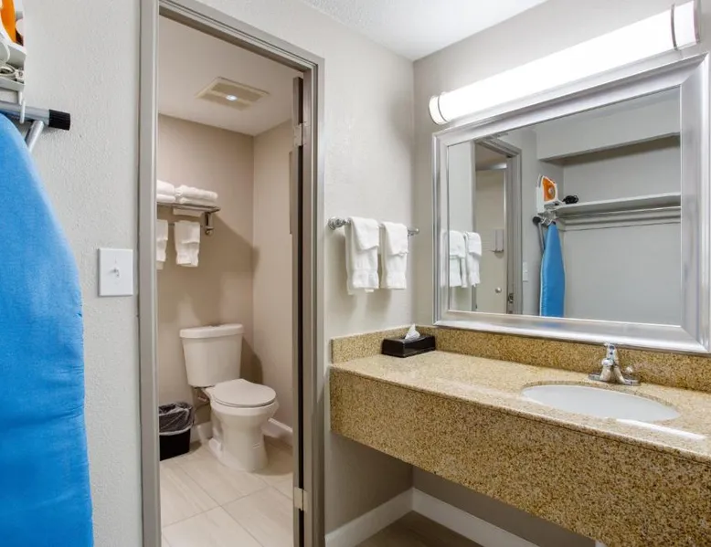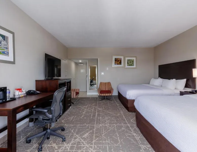 This nonsmoking hotel is 2.4 miles away from Kansas City International Airport and 17 miles away from downtown Kansas City, Missouri. The hotel offers 24hrs free shuttle service to and from Kansas City International Airport and within 5 miles of the shopping district from 9am-8pm. It features a walk-out courtyard and free Wi-Fi in all rooms. Each simply furnished guest room at Orangewood Hotel is equipped with a cable TV. A coffee maker and work desk are provided. Orangewood Inn & Suites Kansas City Airport features a newly renovated heated indoor swimming pool and hot tub/jacuzzi. A complimentary hot buffet breakfast is served every morning at this non pet-friendly Kansas City hotel. A 24hrs business center is located off of the lobby and laundry services are available. Worlds of Fun Amusement Park is a 20-minute drive from the Kansas City Plaza Hotel. Tiffany Greens Golf Club is less than 4 miles away. This air-conditioned quadruple room includes a flat-screen TV with cable channels and a private bathroom. The unit offers 2 beds.