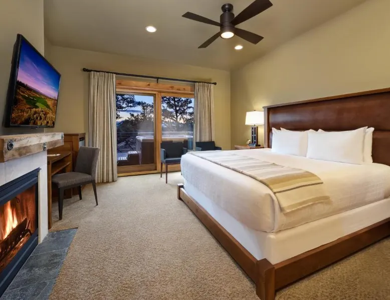 On 1,800 acres in Powell Butte, this ranch features an 18-hole golf course, an athletic center and large indoor/outdoor equestrian center. Brasada overlooks the Central Oregon high desert and Cascade Mountains. Every luxury cabin features a gourmet kitchen, spacious living room with a gas fireplace and 42-inch plasma TV. A wrap-around deck offers mountain or golf course views. Each is decorated in warm interiors with wood furnishings and floors. Brasada Ranch’s athletic center is 17,000-square-feet. It showcases 2 outdoor pools, complete with a water slide, lazy river and waterfall. A state-of-the-art fitness center and 2 tennis courts are included. The Spa features 4 treatment rooms, an adult pool and panoramic mountain views. Ping-pong tables, gaming consoles and board games are provided at The Hideout. A daily menu, prepared with local ingredients is served at the Signature Restaurant. It features outdoor patios with 2 fire pits. The Ranch House has coffee and gourmet snacks. A large wrap-around deck, gas barbecue, fully-equipped kitchen, shopping services, iPod docking station, marble bathrooms and living room with gas fireplace and flat-screen TV are included in this 2-bedroom cabin. Please contact the property for more information on pet-friendly cabins. There are a very limited quantity.