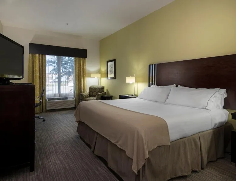 Comfortable Accommodations: Holiday Inn Express Conway by IHG in Conway offers rooms with air-conditioning, private bathrooms, and free WiFi. Each room includes a coffee machine, refrigerator, and TV, ensuring a pleasant stay. Leisure Facilities: Guests can enjoy a spa and wellness center, fitness center, and indoor swimming pool. Additional amenities include a fitness room, elevator, 24-hour front desk, and free on-site parking. Convenient Location: Located 32 mi from Clinton National Airport, the hotel is near attractions such as Simmons Bank Arena (30 mi), Old State House (30 mi), and Historic Arkansas Museum (31 mi). Free on-site parking is available. Guest Satisfaction: Guests appreciate the room cleanliness, attentive staff, and comfortable accommodations, making it a preferred choice for travelers. The spacious double room features air conditioning, a coffee machine, as well as a private bathroom boasting a shower and a hairdryer. The double room offers a flat-screen TV with cable channels, a tiled floor, a carpeted floor and heating. The unit has 1 bed.