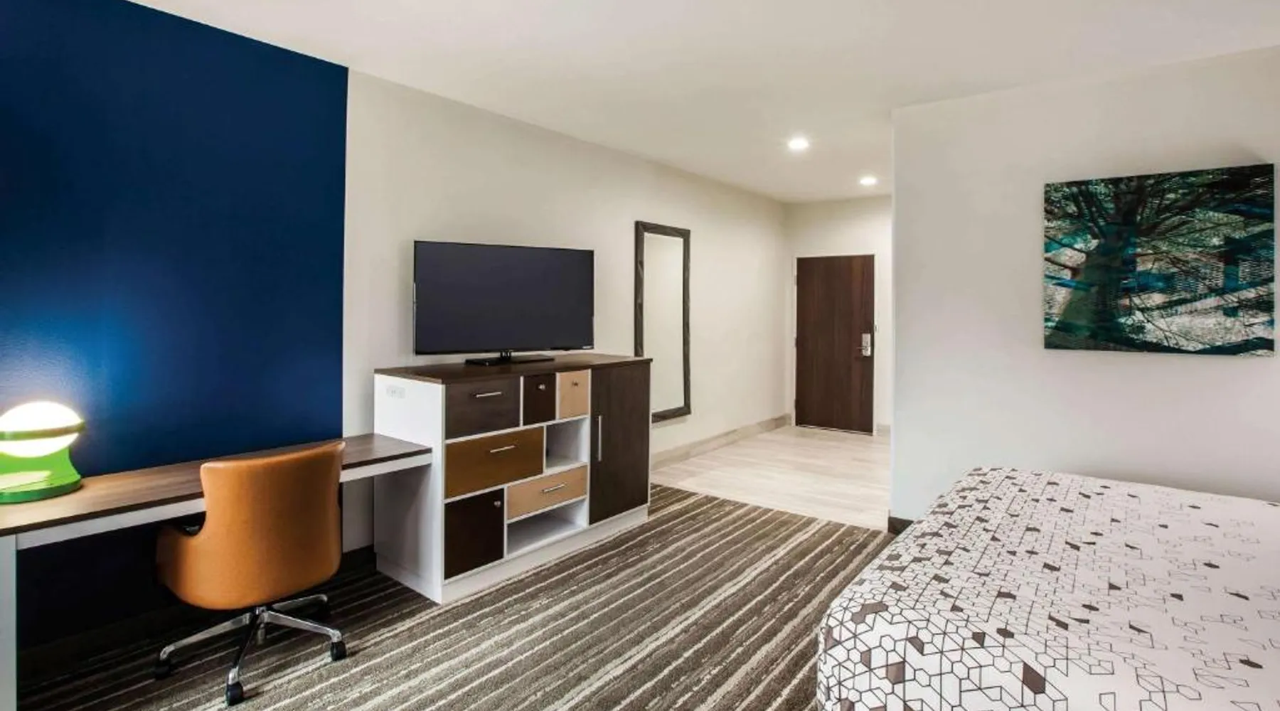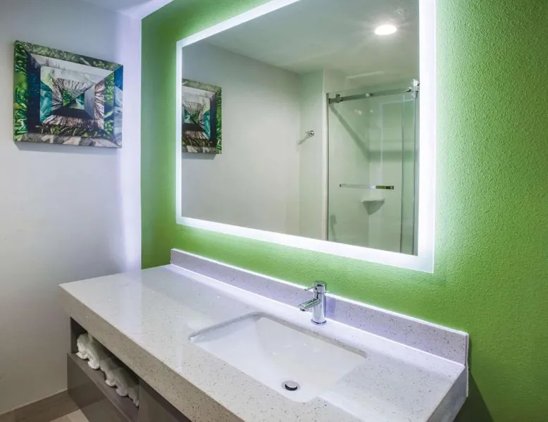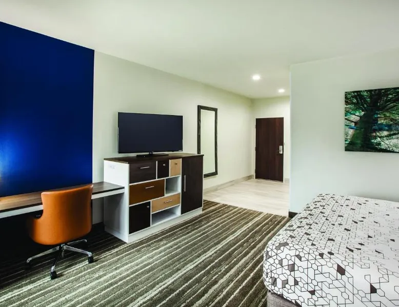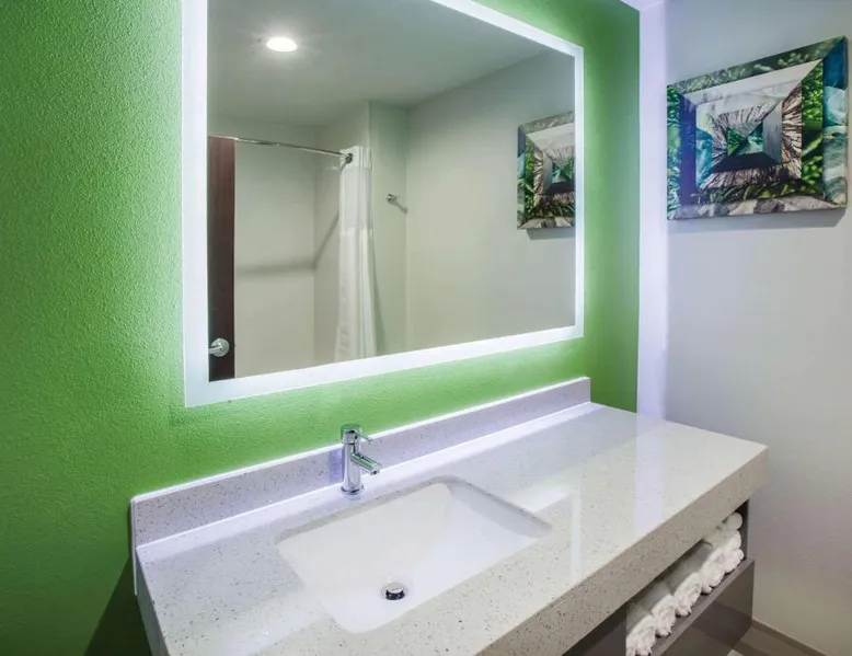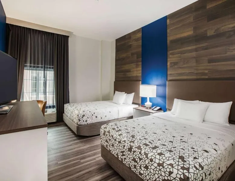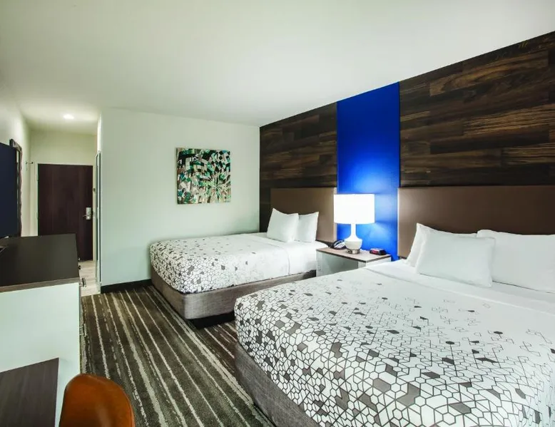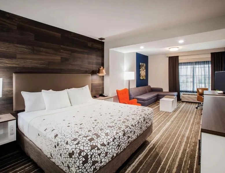 Comfortable Accommodations: La Quinta by Wyndham Owasso in Owasso offers air-conditioned rooms with private bathrooms, tea and coffee makers, and free WiFi. Each room includes a work desk, TV, and wardrobe, ensuring a pleasant stay. Exceptional Facilities: Guests can enjoy a fitness center, sun terrace, indoor swimming pool, and outdoor seating area. Additional amenities include a lounge, business area, and free on-site private parking. Delicious Breakfast: A continental buffet breakfast is served daily, featuring warm dishes, fresh pastries, pancakes, cheese, and fruits. The breakfast is highly praised by guests for its quality and variety. Convenient Location: Located 5.6 mi from Tulsa International Airport, the hotel is near attractions such as Tulsa Zoo and Living Museum (8.1 mi) and Skelly Stadium Hurricane (14 mi). Free WiFi is available throughout the property. This family room has a microwave, coffeemaker and refrigerator.