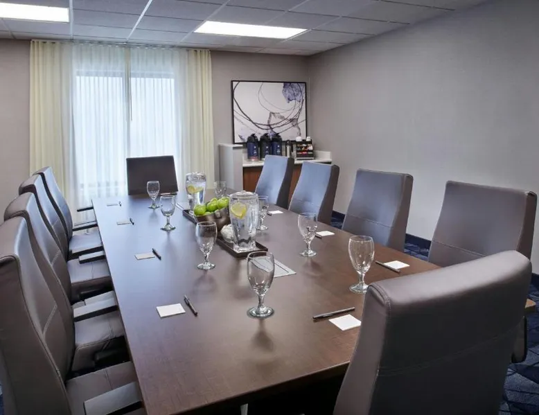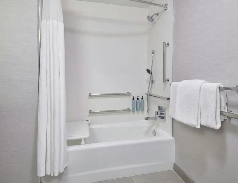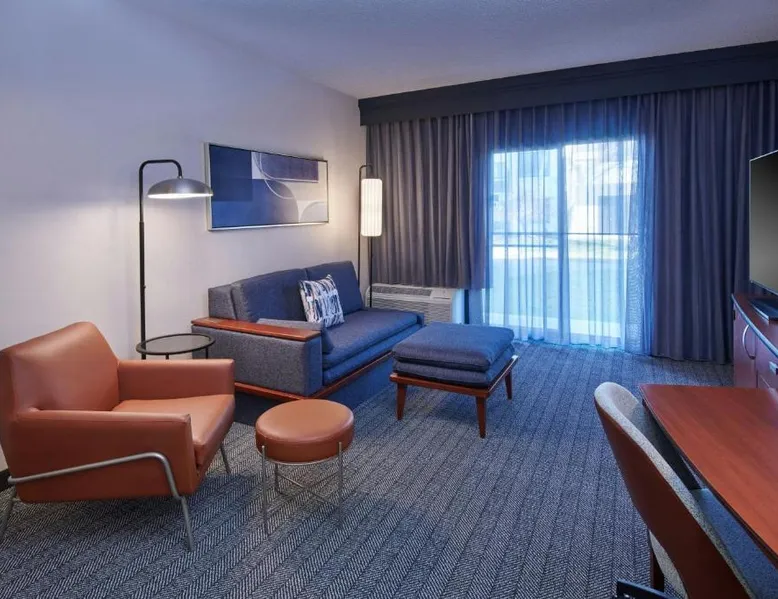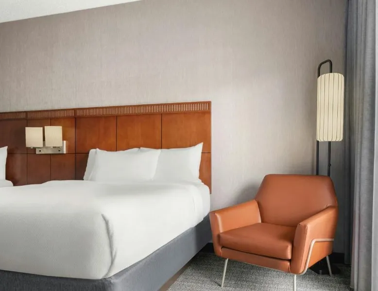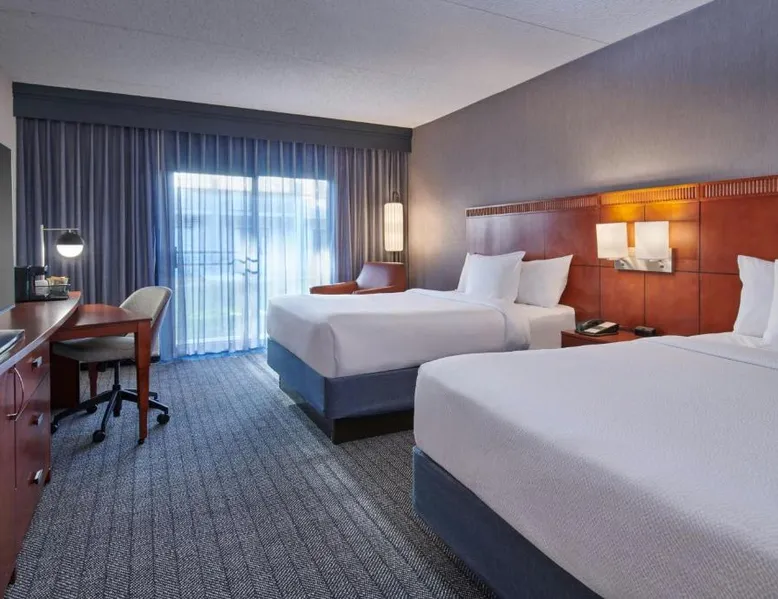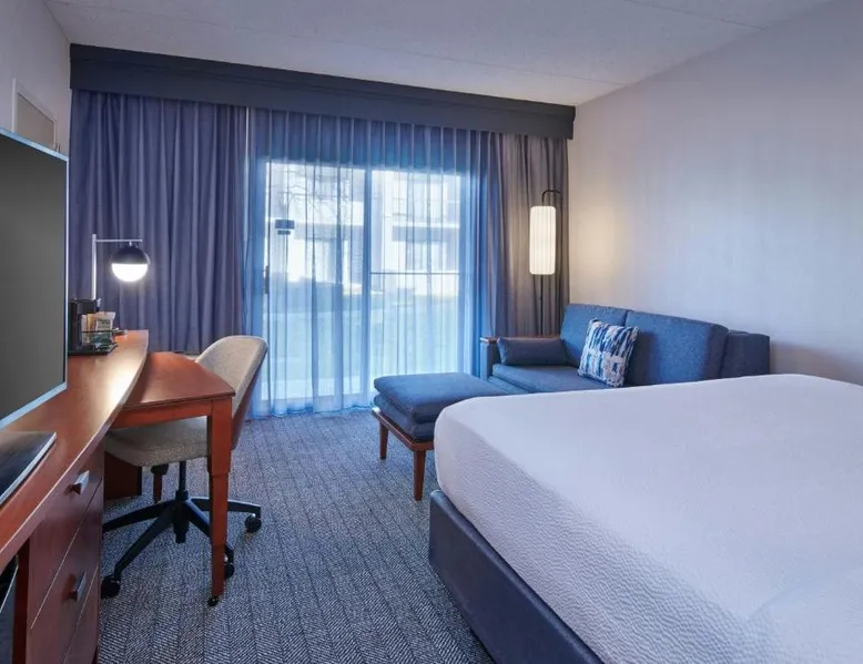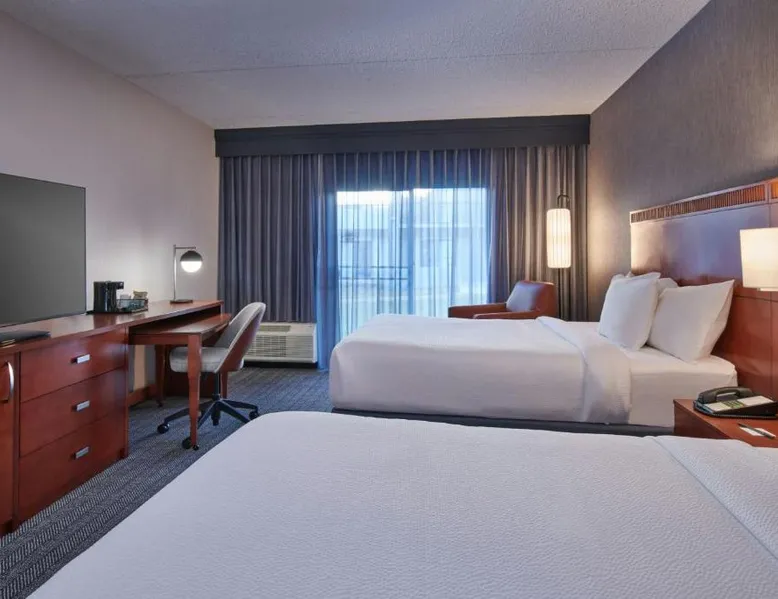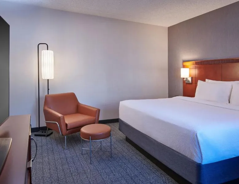 Comfortable Accommodations: Courtyard Detroit Metro Airport Romulus in Romulus offers air-conditioned rooms with private bathrooms, tea and coffee makers, and work desks. Each room includes a seating area and carpeted floors. Dining and Leisure: Guests can enjoy an American restaurant with a modern ambiance, serving dinner and cocktails. The hotel features a garden and a minimarket for added convenience. Convenient Location: Located 1.9 mi from Detroit Metro Airport, the hotel is near attractions such as Fritzs Caboose and Heritage Park, each 7.5 mi away. Free airport shuttle service is available. Guest Services: The hotel offers a elevator, 24-hour front desk, and paid on-site parking. Additional amenities include a minimarket and a work desk. Featuring cable TV, this room also offers tea and coffee-making facilities.