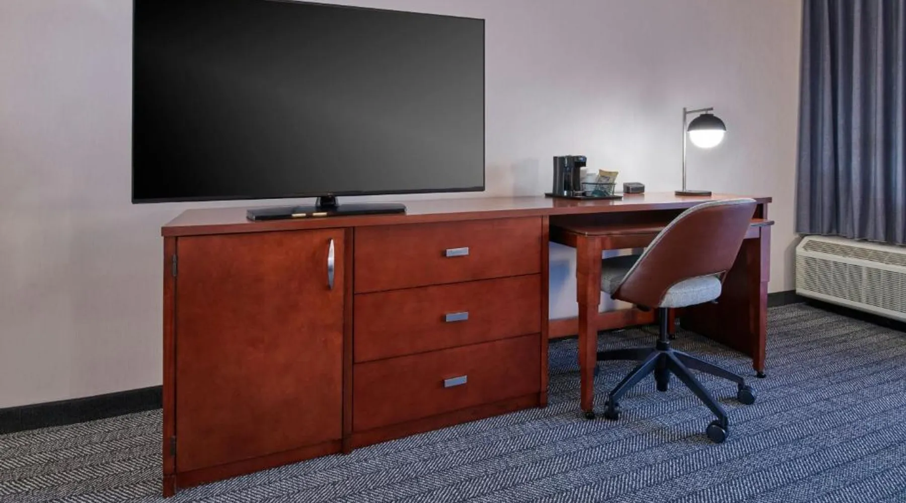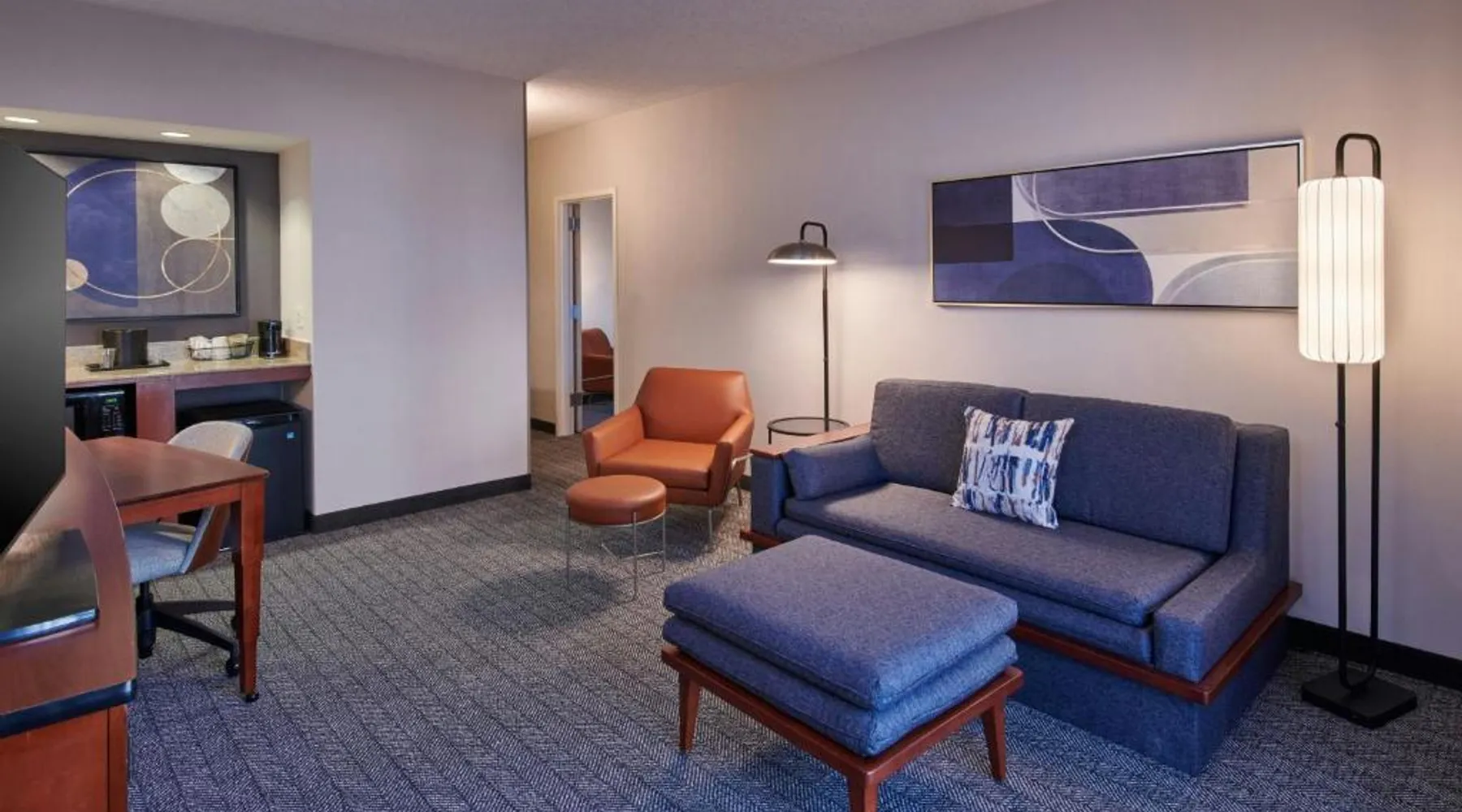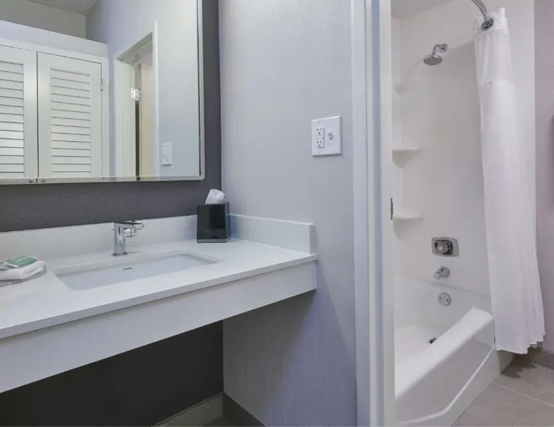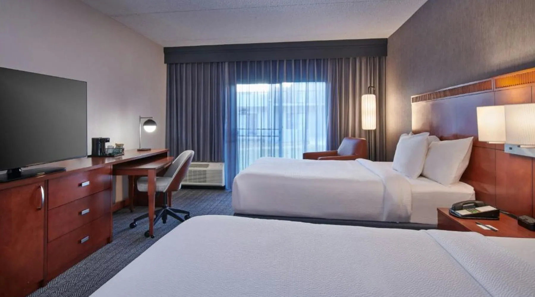 Comfortable Accommodations: Courtyard Detroit Metro Airport Romulus in Romulus offers air-conditioned rooms with private bathrooms, tea and coffee makers, and work desks. Each room includes a seating area and carpeted floors. Dining and Leisure: Guests can enjoy an American restaurant with a modern ambiance, serving dinner and cocktails. The hotel features a garden and a minimarket for added convenience. Convenient Location: Located 1.9 mi from Detroit Metro Airport, the hotel is near attractions such as Fritzs Caboose and Heritage Park, each 7.5 mi away. Free airport shuttle service is available. Guest Services: The hotel offers a elevator, 24-hour front desk, and paid on-site parking. Additional amenities include a minimarket and a work desk. Featuring cable TV, this room also offers tea and coffee-making facilities.