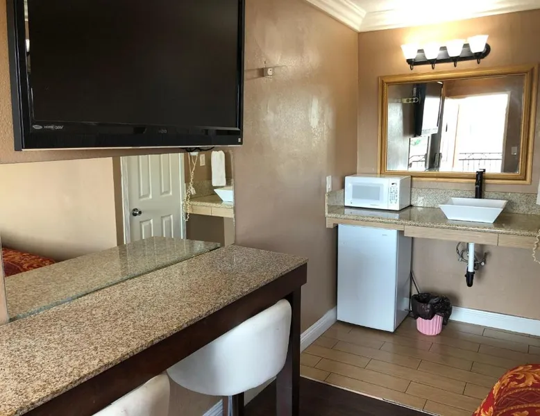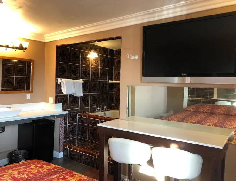 Comfortable Accommodations: Flight Motel in Los Angeles offers air-conditioned rooms with private bathrooms, walk-in showers, and parquet floors. Each room includes a refrigerator, work desk, microwave, TV, and free WiFi. Convenient Facilities: Guests benefit from free on-site private parking, a 24-hour front desk, and private check-in and check-out services. Housekeeping ensures a clean and comfortable stay. Prime Location: Located 4.3 mi from Hawthorne Municipal Airport, the motel is near SoFi Stadium (3.7 mi), La Memorial Coliseum (5 mi), and the California Science Center (5 mi). Other attractions include the Natural History Museum of Los Angeles County (5.6 mi) and Crypto.com Arena (7.5 mi). Guests will have a special experience as this double room offers a hot tub and a spa bath. This air-conditioned double room includes a flat-screen TV with cable channels and a private bathroom. The unit offers 1 bed.