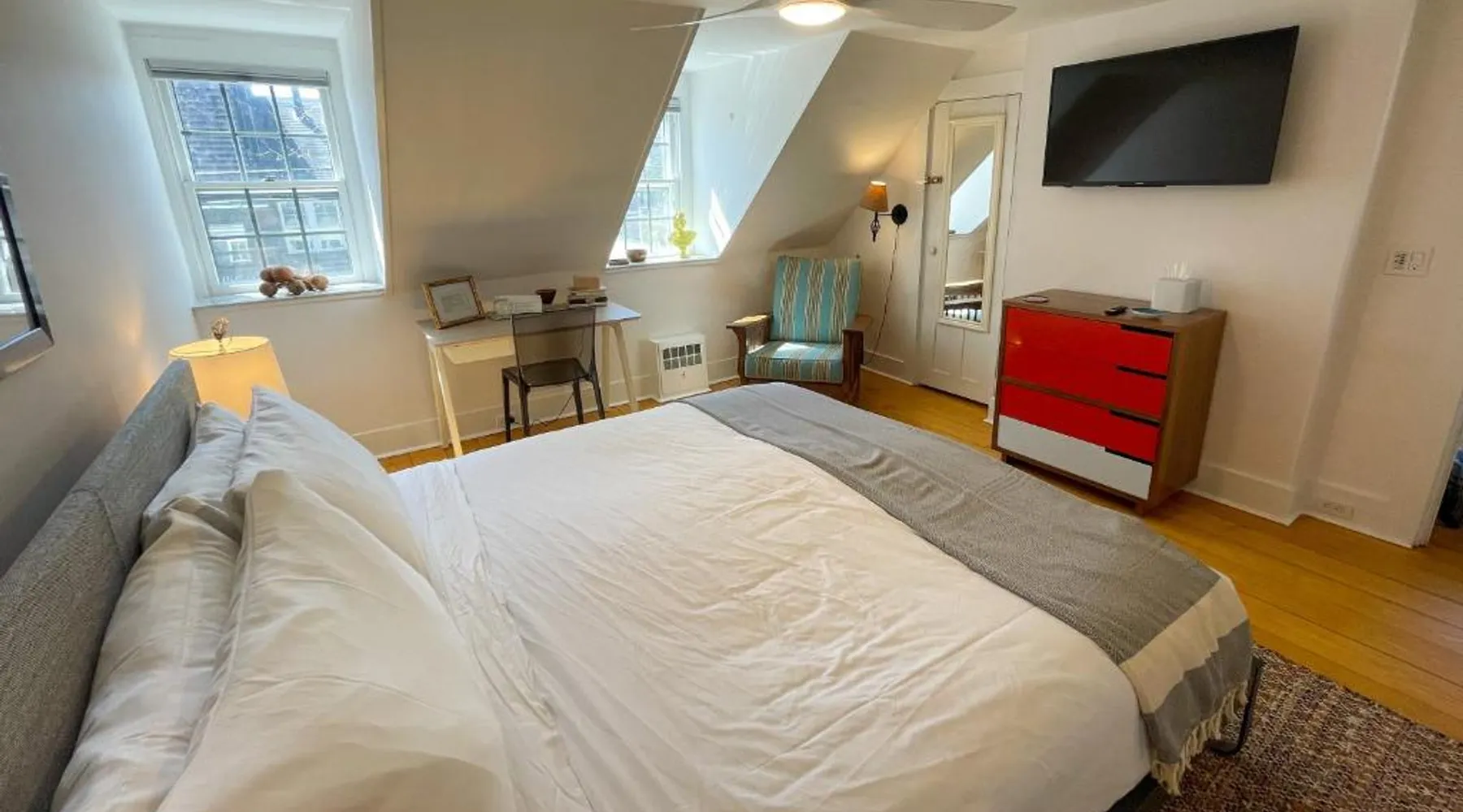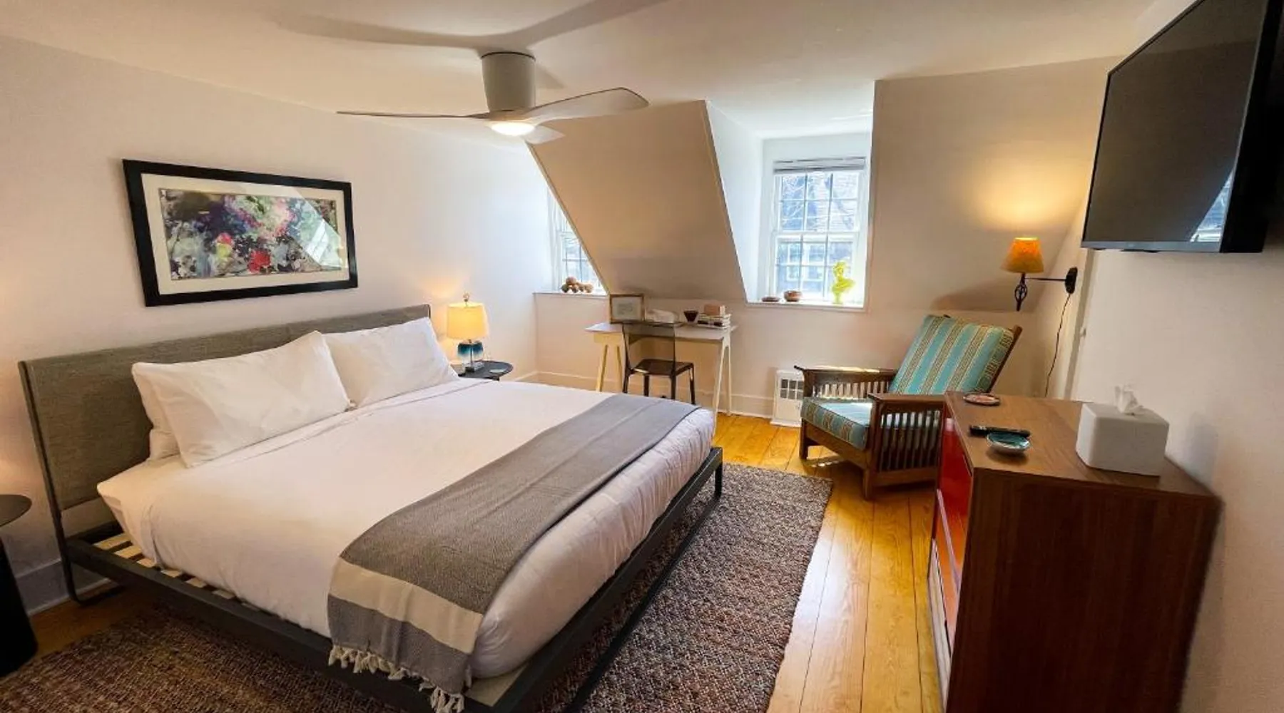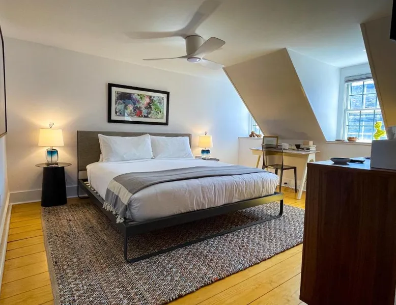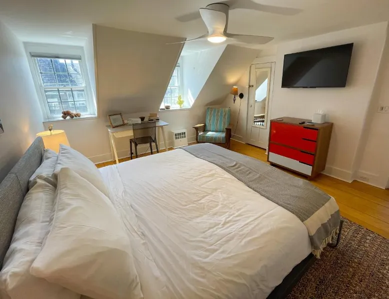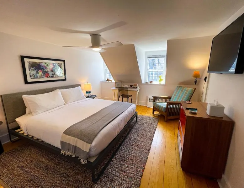 In the heart of Provincetown’s art gallery district, the historic Inn at Cook Street was originally built in 1836. It features unique, individually decorated guest rooms and serves a daily hot breakfast. Each guest room is decorated with original local artwork and has antique furnishings. A flat-screen TV and private bathroom are included. The Cook Street Inn has an on-site tea room and an art gallery. Free Wi-Fi access is available. Guests can enjoy a hot breakfast each morning on the shared terrace overlooking the lush gardens and Koi pond. BBQ facilities are also available. The Inn at Cook Street provides a free shuttle service to Provincetown Municipal Airport. Provincetown Harbor is just under 1 mile from the property. Featuring free Wi-fi, this room offers a flat-screen TV and a hairdryer in the private bathroom.