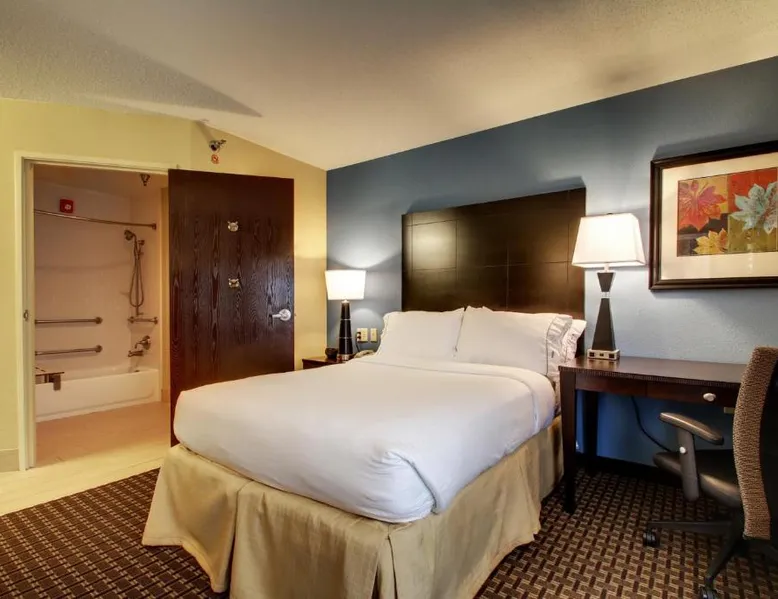 Comfortable Accommodations: Holiday Inn Express Hotel Fort Campbell-Oak Grove by IHG in Oak Grove offers family rooms with air-conditioning, private bathrooms, and modern amenities including a work desk and TV. Exceptional Facilities: Guests enjoy an indoor swimming pool, free WiFi, and a solarium. Additional facilities include a elevator, 24-hour front desk, daily housekeeping, business area, outdoor seating, picnic area, and barbecue facilities. Convenient Location: Located 64 mi from Nashville International Airport, the hotel is near attractions such as Mb Roland Distillery (5 mi) and Fort Defiance Civil War Park & Interpretive Center (12 mi). Free on-site parking is available. Guest Satisfaction: Highly rated for its breakfast, attentive staff, and convenient location, the hotel ensures a pleasant stay for all visitors. The unit offers 1 bed.