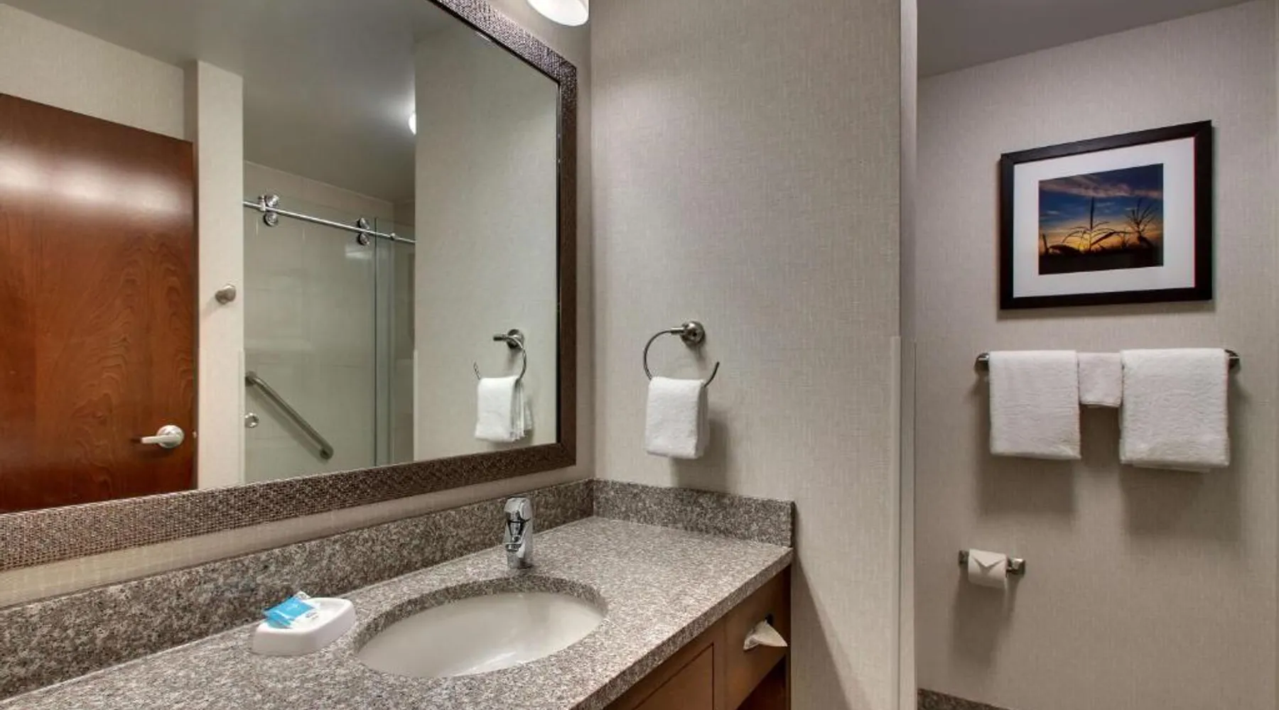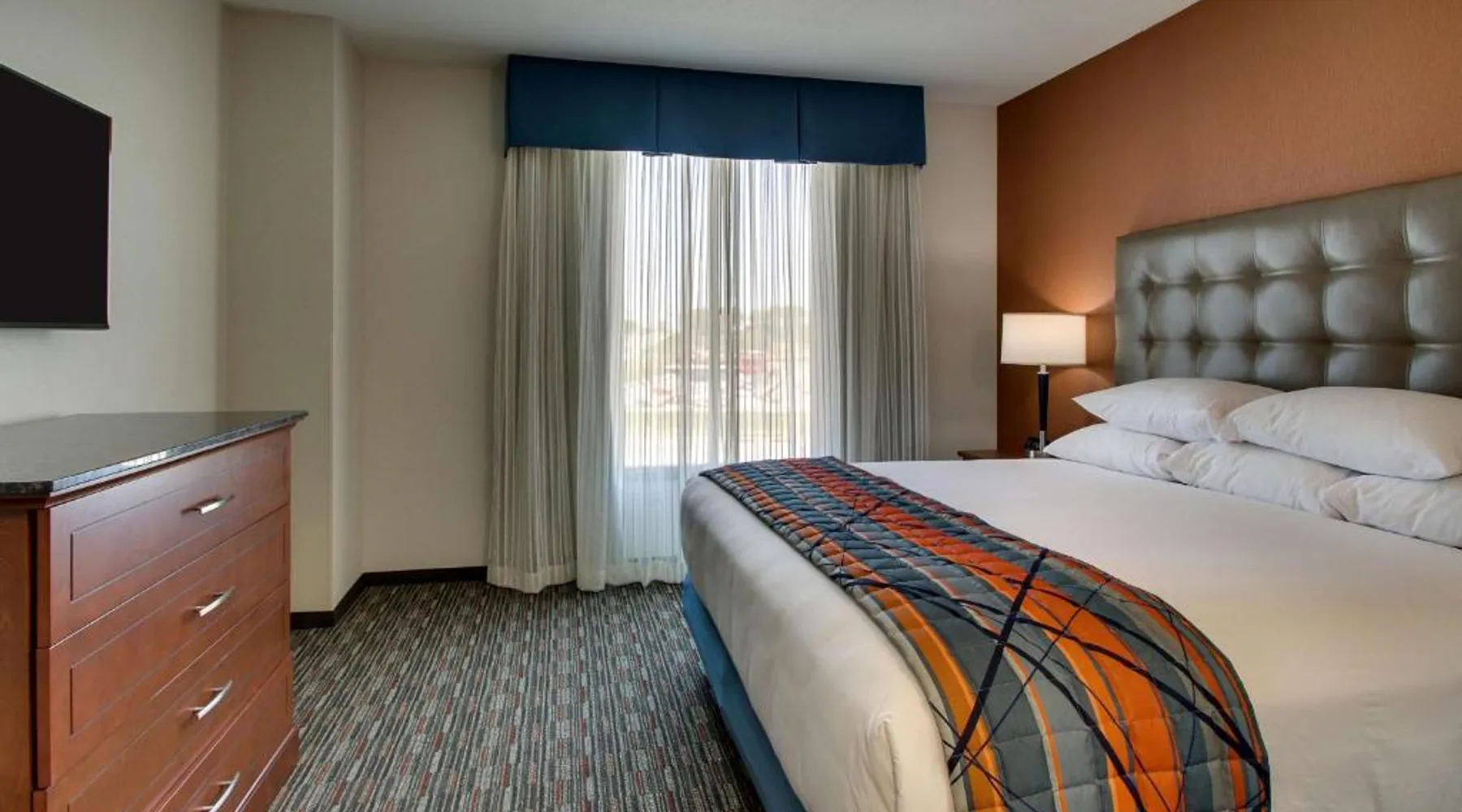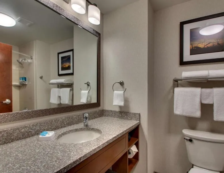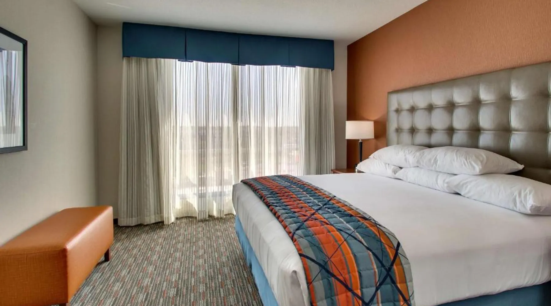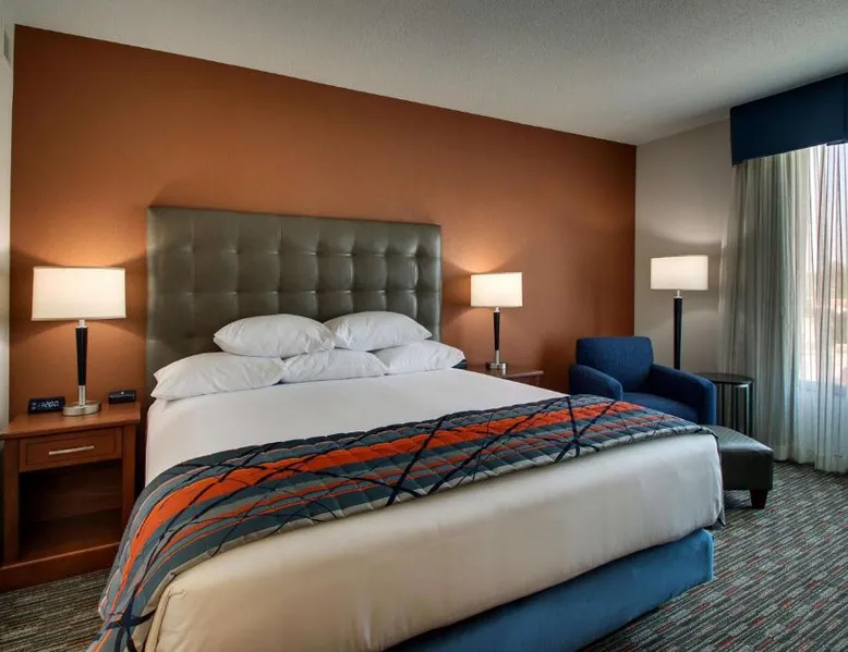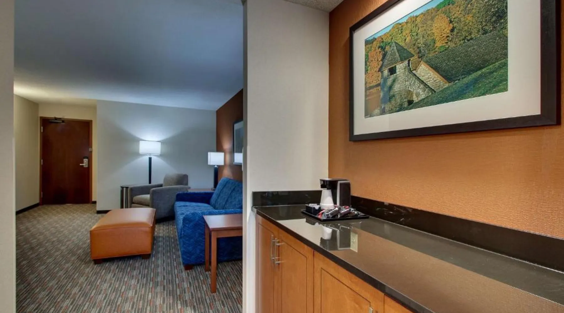 Comfortable Accommodations: Drury Inn & Suites Iowa City Coralville in Coralville offers family rooms with air-conditioning, private bathrooms, and free WiFi. Each room includes a work desk, refrigerator, and TV. Leisure Facilities: Guests can enjoy a fitness center, outdoor swimming pool, and hot tub. Additional amenities include a elevator, business area, and free on-site private parking. Dining Options: A buffet breakfast is provided each morning, along with dinner options. The property staff and service support receive high ratings from guests. Nearby Attractions: Kinnick Stadium is 2.5 mi away, Paramount Theater 24 mi, and The Eastern Iowa Airport 19 mi from the hotel. This air-conditioned suite is consisted of of a flat-screen TV with cable channels and a private bathroom. The unit has 3 beds.