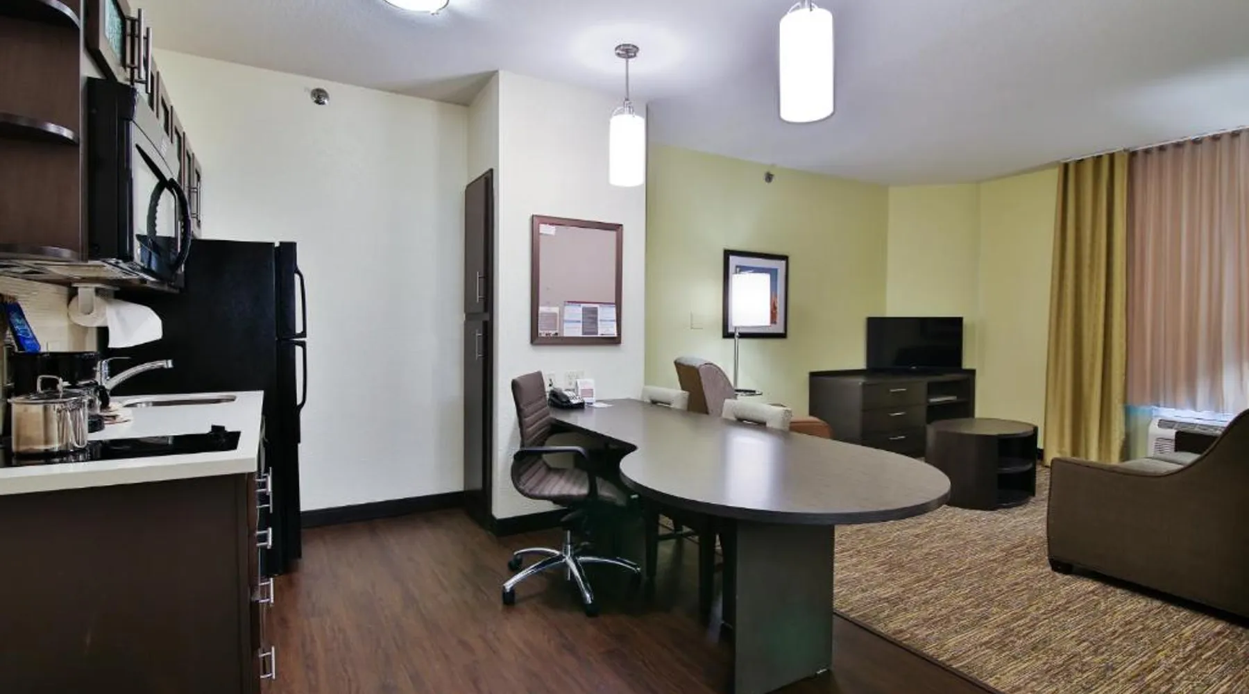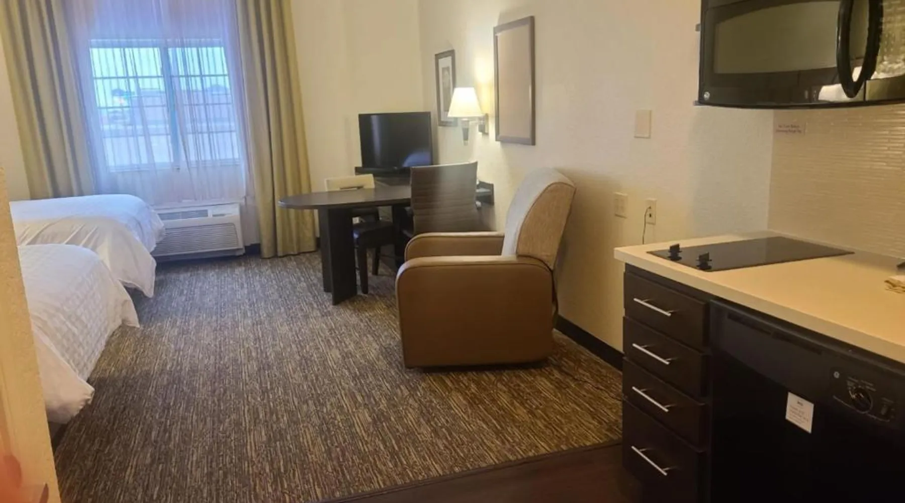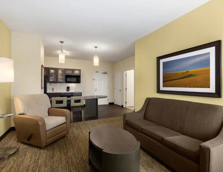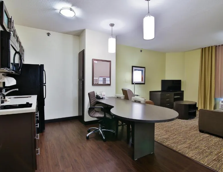 Comfortable Accommodations: Candlewood Suites Bismarck in Bismarck offers family rooms with air-conditioning, private bathrooms, and fully equipped kitchens. Each room includes a work desk, dining area, and free WiFi. Facilities and Services: Guests can enjoy a fitness center, lounge, and outdoor seating area. Additional amenities include a business area, laundry service, and free on-site private parking. Convenient Location: Located 5.6 mi from Bismarck Municipal Airport, the hotel is near attractions such as North Dakota State Capitol (3.1 mi) and Kirkwood Mall (5 mi). Guests appreciate the convenient location. Providing free toiletries, this suite includes a private bathroom with a bath, a shower and a hairdryer. In the well-equipped kitchen, guests will find a stovetop, a refrigerator, a dishwasher and kitchenware. The suite features carpeted floors, a seating area with a flat-screen TV with cable channels, air conditioning, a tea and coffee maker, as well as a dining area. The unit offers 1 bed.