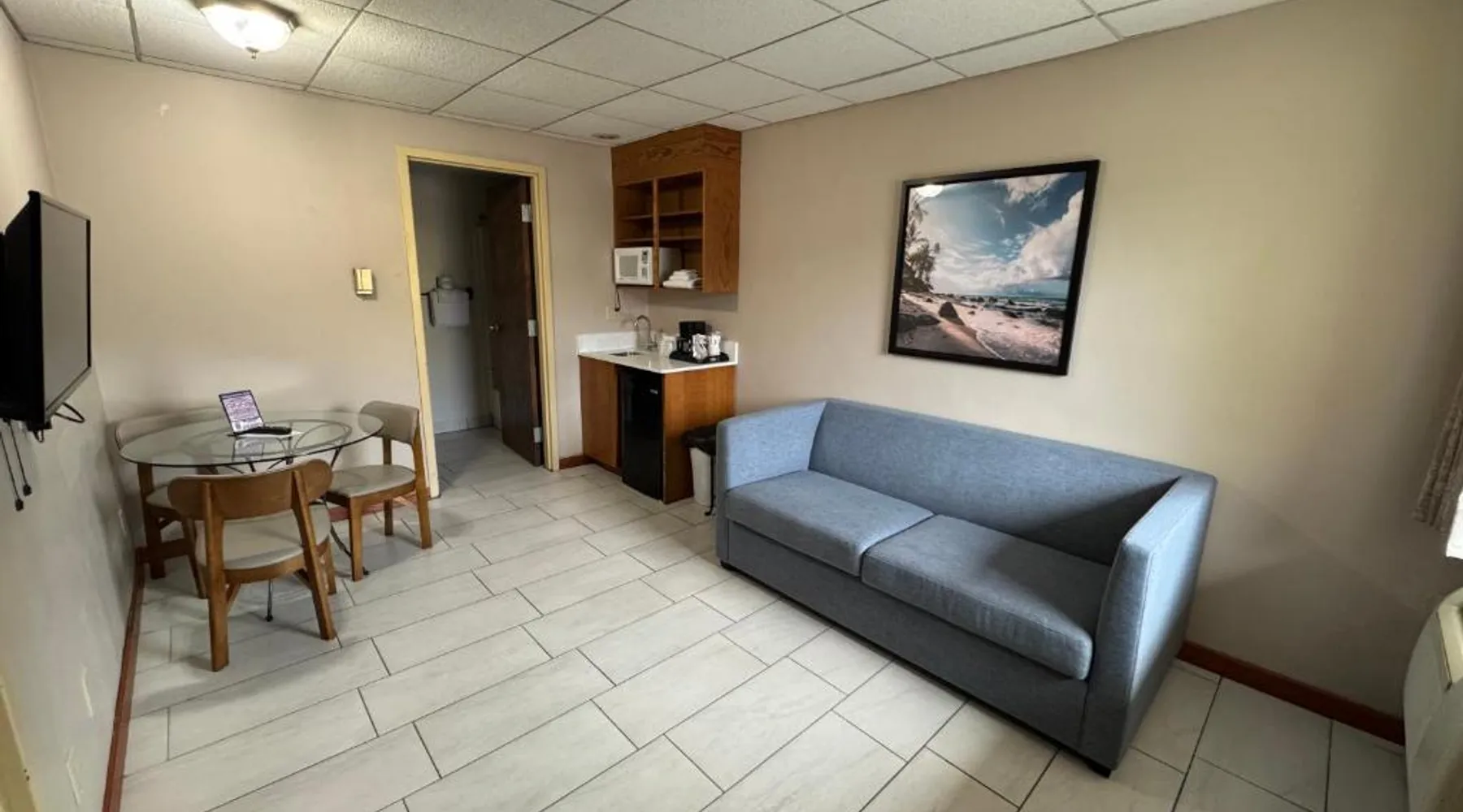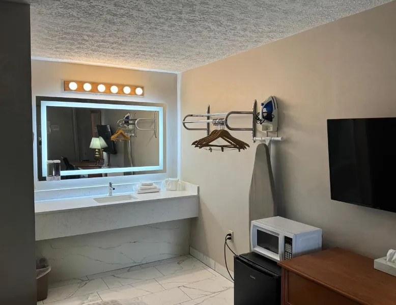This hotel features a large outdoor pool with a water slide and a hot tub. Facilities also include a game room. Cedar Point Amusement Park is 3 miles away. Cable TV and free Wi-Fi are included in each room at the South Shore Inn. Decorated in light colors and carpeted floors, the rooms have a private bathroom with a hairdryer. Visitors can use the barbecue facilities and relax in the shaded picnic area at the Sandusky South Shore Inn. Laundry facilities are also available. Castaway Bay Water Park is a 2-minute drive from the property. The Merry-Go-Round Museum is 2.5 miles away. The pool with a view is a top feature of this suite. This spacious suite comes with 1 living room, 1 separate bedroom and 1 bathroom with a bath and free toiletries. Guests will find a refrigerator and a microwave in the kitchenette. The suite also includes a barbecue. The air-conditioned suite features a flat-screen TV with cable channels, a mini-bar, a tea and coffee maker, a seating area as well as garden views. The unit has 3 beds.