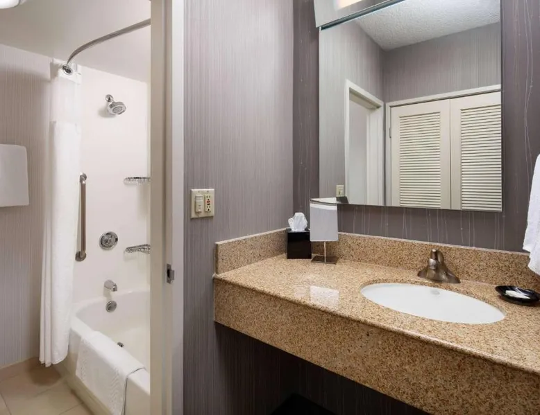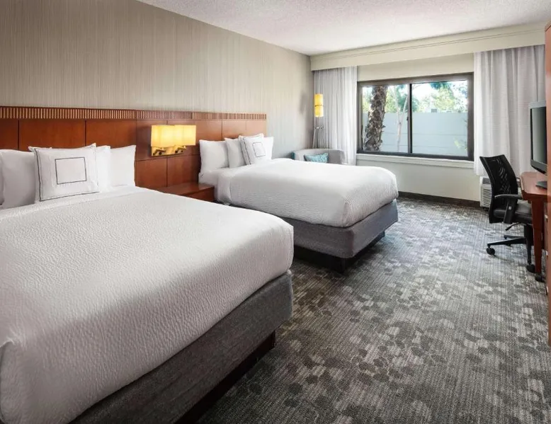 Comfortable Accommodations: Sonesta Select Laguna Hills Irvine Spectrum in Laguna Hills offers family rooms with balconies, featuring modern amenities such as tea and coffee makers, refrigerators, and free WiFi. Exceptional Facilities: Guests can enjoy a fitness center, seasonal outdoor swimming pool, terrace, and garden. Additional facilities include a hot tub, outdoor fireplace, and outdoor seating areas. Dining Experience: The modern, family-friendly restaurant serves American cuisine with vegetarian options. Outdoor seating and a minimarket enhance the dining experience. Convenient Location: Located 9.9 mi from John Wayne Airport, the hotel is near attractions like South Coast Plaza (12 mi) and Disneyland (19 mi). Guests appreciate the attentive staff and comfortable rooms. The double room offers a tea and coffee maker. The unit offers 2 beds.