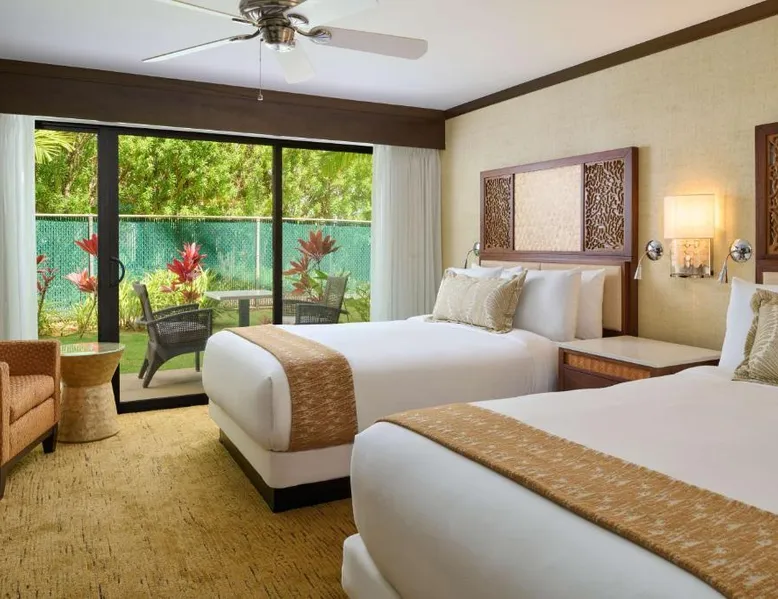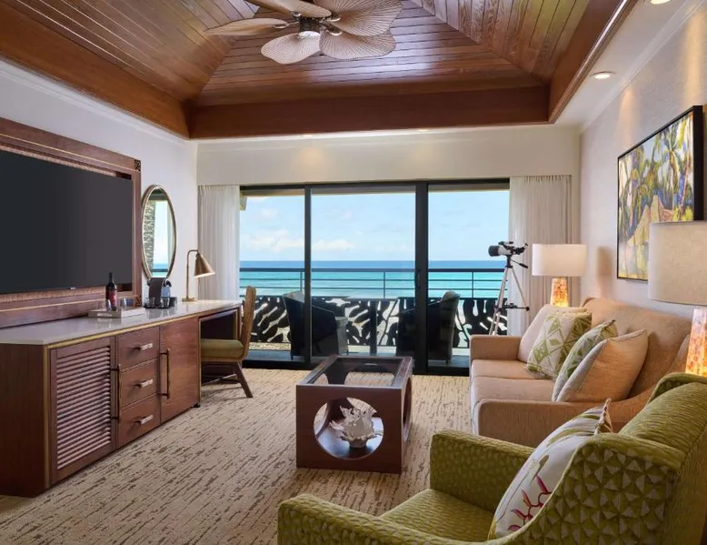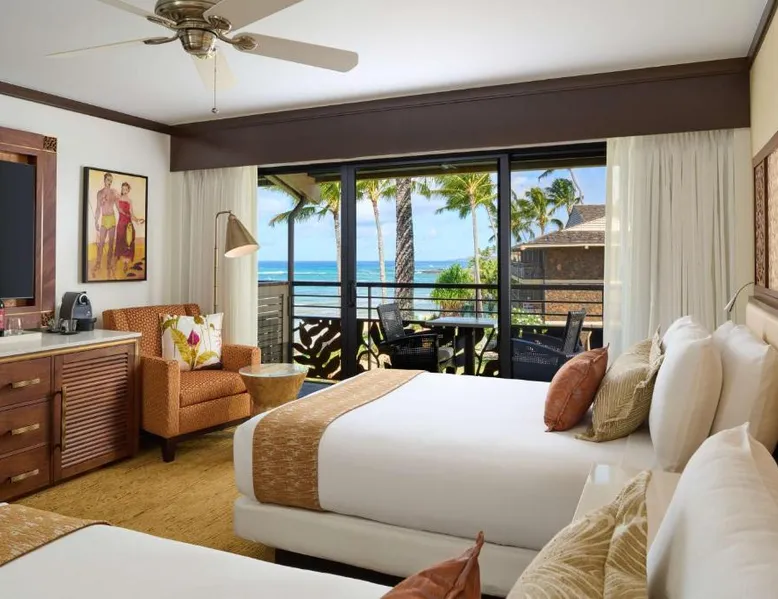 Located on Poipu Beach on Kauai’s south shore, this boutique Koloa resort offers an on-site restaurant and spa. Furnished balconies and free Wi-Fi are included in all luxurious guest rooms. A flat-screen TV and a coffee machine are available in each air-conditioned room at Koa Kea Resort on Poipu Beach. Upscale furnishings, subtle colored linens, plush bathrobes and premium toiletries are also provided. Select rooms offer ocean views from a balcony or patio. Boasting ocean views, the Red Salt Restaurant is open for breakfast and dinner and serves American fare featuring fresh Hawaiian seafood and produce. A poolside bar serving lunch is also offered at the 100% nonsmoking Kauai Koa Kea Resort on Poipu Beach. 24-hour room service is available. The spa at Koa Kea incorporates natural local ingredients in their massage, facial and body treatments. Oceanside and in-room massage services are also available. An outdoor pool is available for guest relaxation. Valet parking is provided. National Tropical Botanical Garden is 3 miles away. Waimea Canyon State Park is 1 hours’ drive away from Koloa. This double room features a balcony and air conditioning. A roll-in shower shower is provided as well.