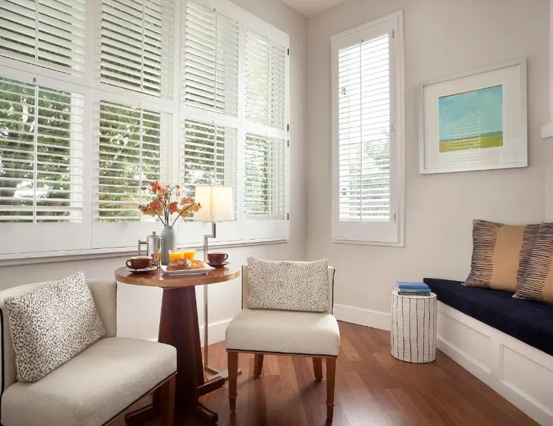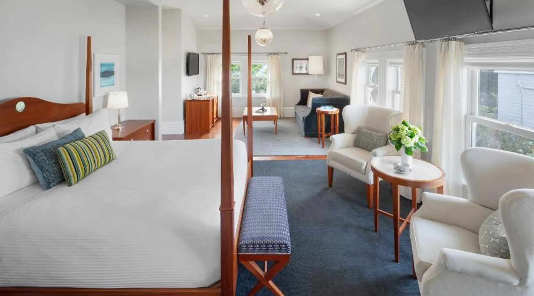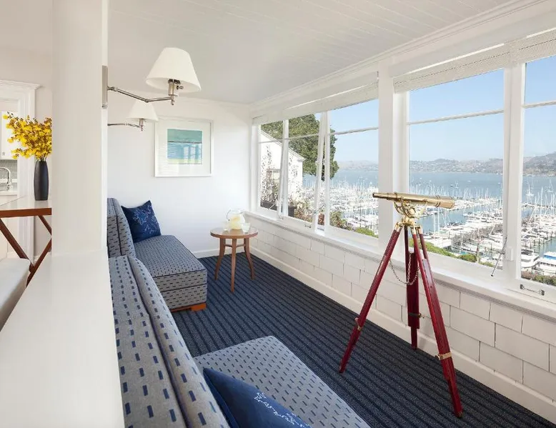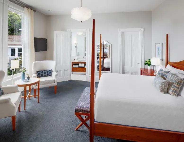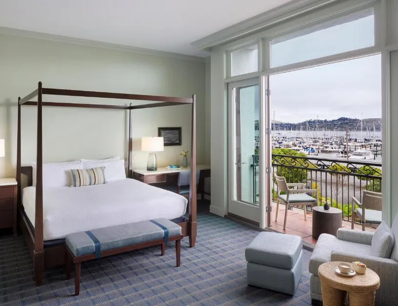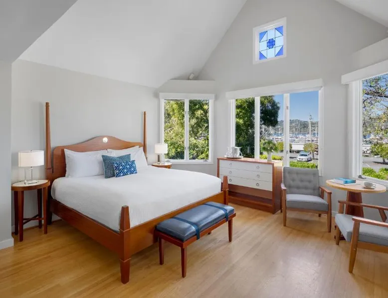 This elegant hotel is located next to the downtown Sausalito waterfront, overlooking the San Francisco skyline. The hotel offers a full-service spa, a restaurant and free WiFi. Guest rooms at Casa Madrona Hotel and Spa feature cable TV and a telephone with speakerphone and voicemail services. A coffee maker with Starbucks coffee and Tazo tea is also provided. The Golden Gate Ferry with service to downtown San Francisco is less than 1640 feet from Casa Madrona Hotel and Spa. Sausalito's famous water walkway, which offers shops, restaurants and views of Alcatraz and San Francisco, is also less than 1640 feet away. Located in the contemporary building with easy access to a semi-private fire-pit courtyard, room incudes four-poster king size bed and plush modern bathrooms with both shower and tub, plus luxe bath amenities.