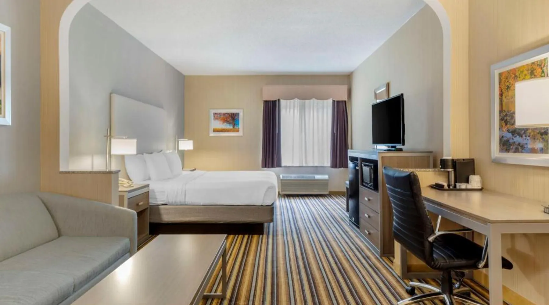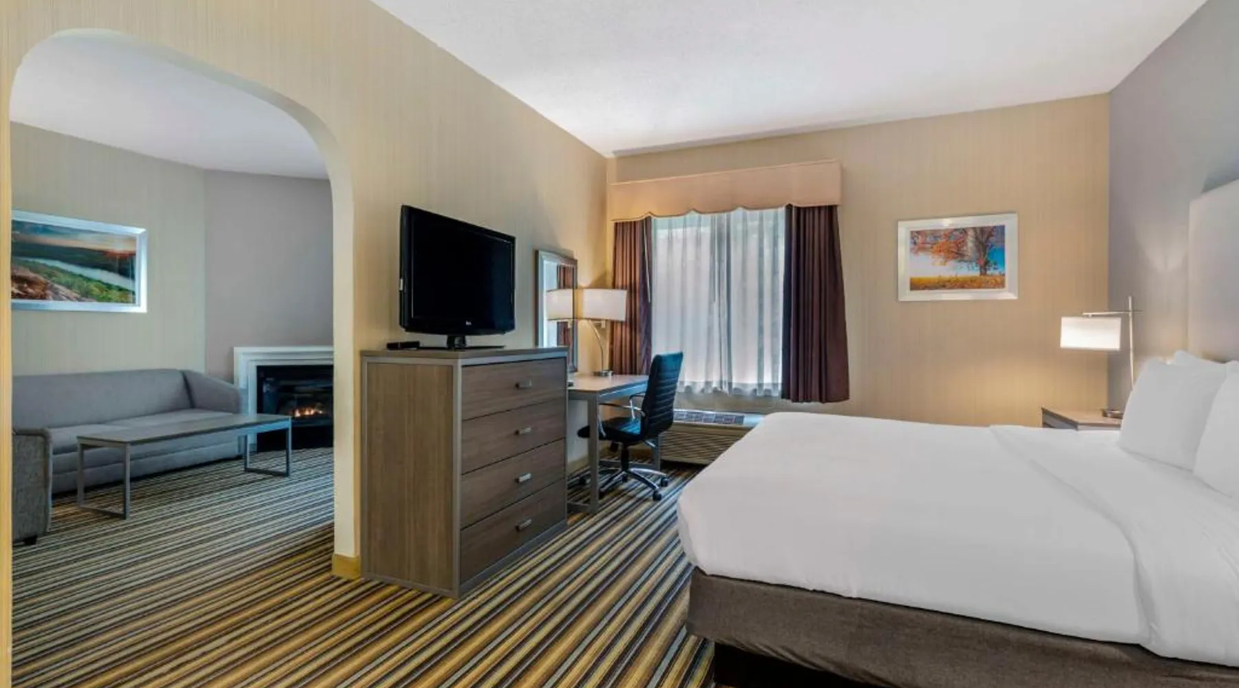 This Berlin, Connecticut hotel is 8.1 mi from Dinosaur State Park. The hotel offers free WiFi and free on-site parking. All guest rooms at the Best Western Plus New England Inn & Suites are equipped with a coffee/tea maker, a microwave and a cable TV. Certain rooms have whirlpool tubs and fireplaces. Best Western Plus New England Inn & Suites features an indoor swimming pool and a fitness center. A full breakfast and newspaper are provided every morning. A business center with copy and fax service is also available. Lake Compounce is 16 mi from the property while Hartford city center is 15 mi away. The suite features a tea and coffee maker.