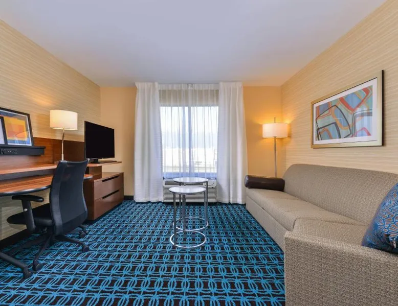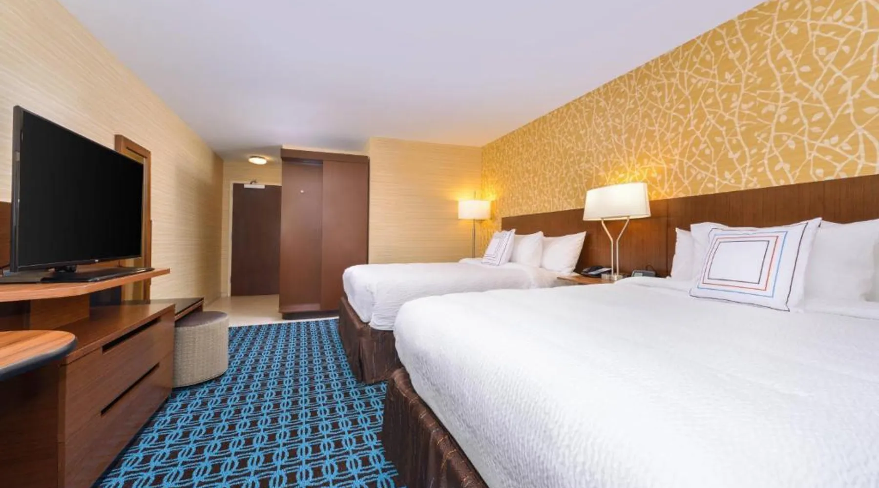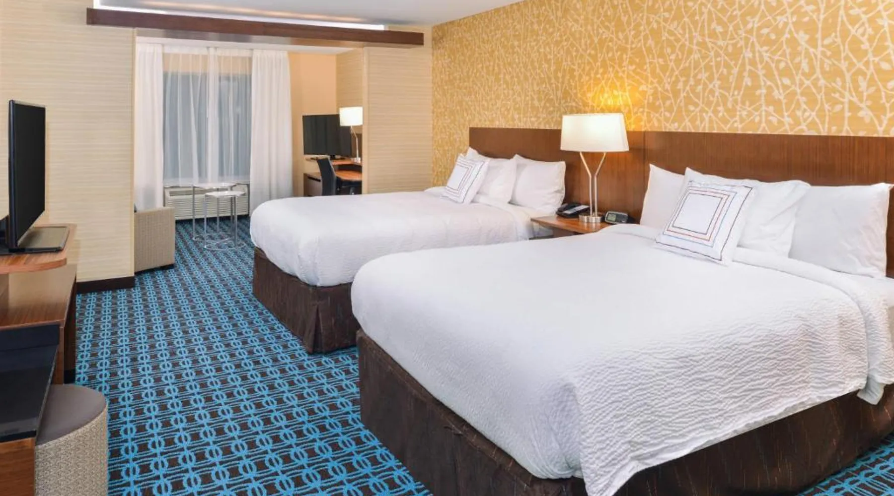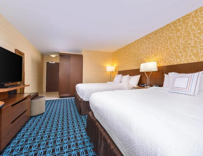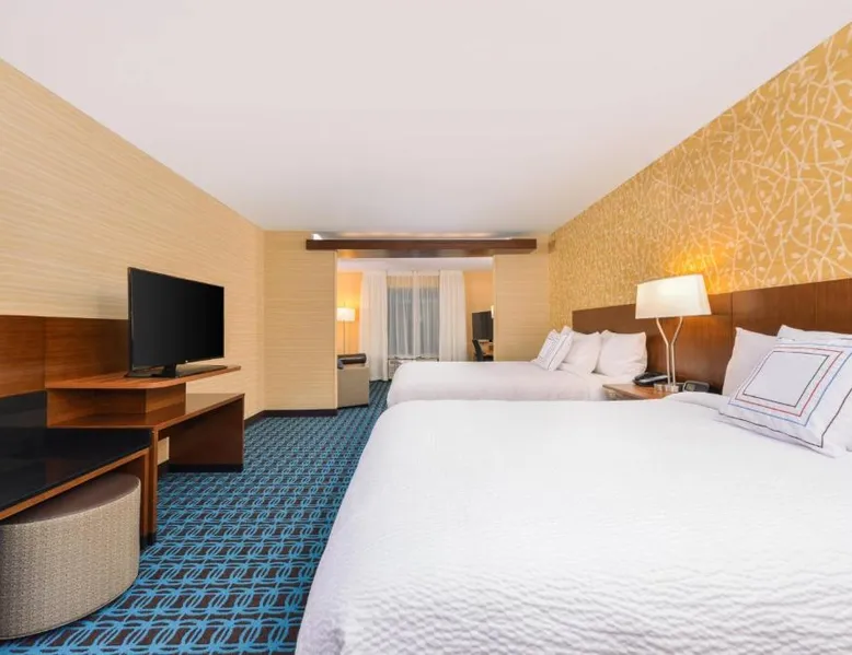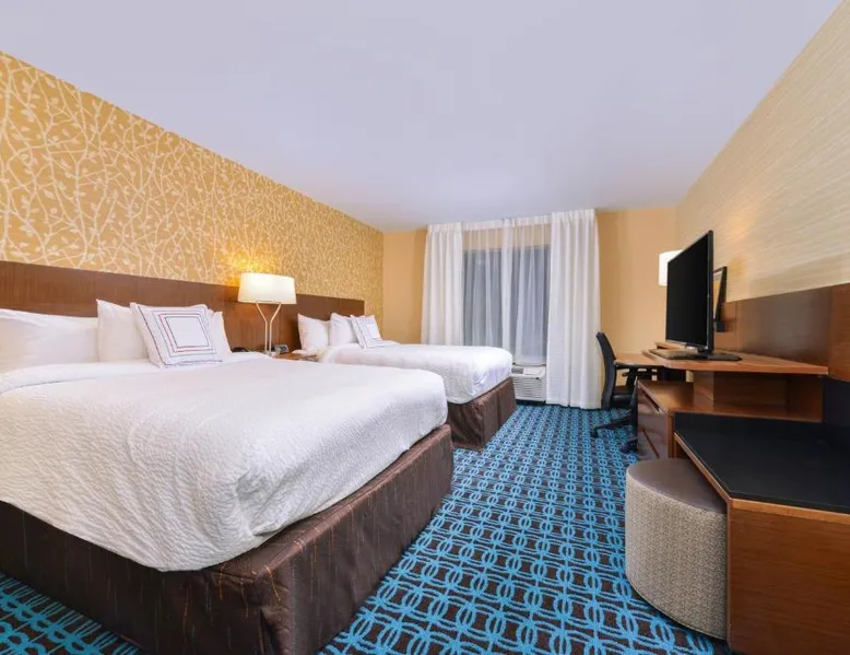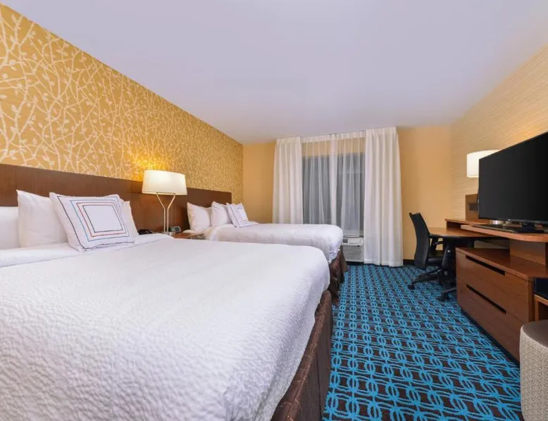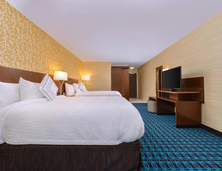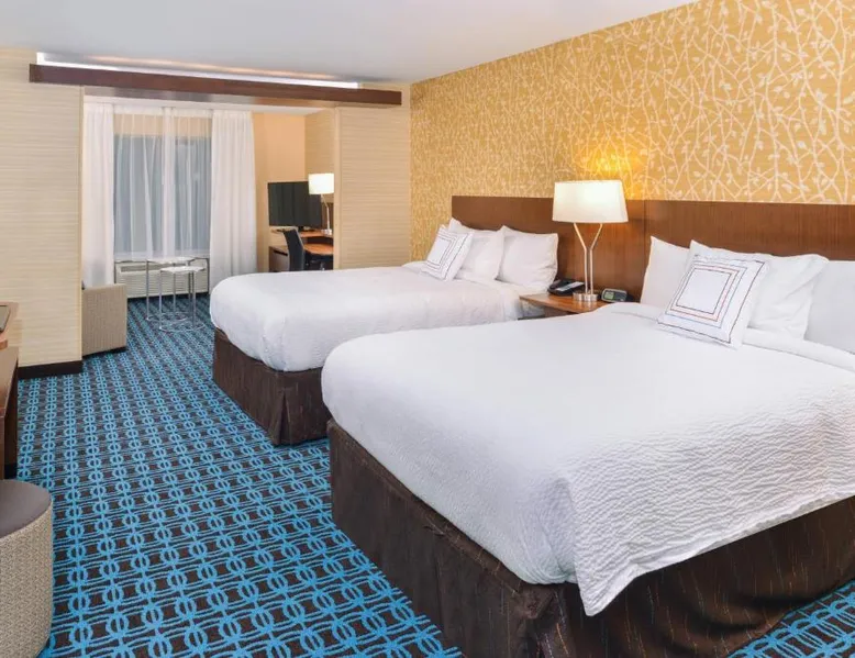 Comfortable Accommodations: Fairfield Inn & Suites by Marriott Coralville in Coralville offers rooms with air-conditioning, free WiFi, and amenities such as a refrigerator and TV. Guests enjoy free on-site private parking, a fitness center, and an indoor swimming pool. Dining and Services: The hotel provides an American buffet breakfast with warm dishes, fresh pastries, fruits, and juice. Additional facilities include a lounge, 24-hour front desk, business area, and electric vehicle charging station. Prime Location: Located 17 mi from The Eastern Iowa Airport, the hotel is near attractions like Kinnick Stadium (4.3 mi) and Paramount Theater (22 mi). Guests appreciate the convenient location and excellent room cleanliness. The suite provides air conditioning, a seating area, a carpeted floor, heating and a flat-screen TV. The unit offers 2 beds.