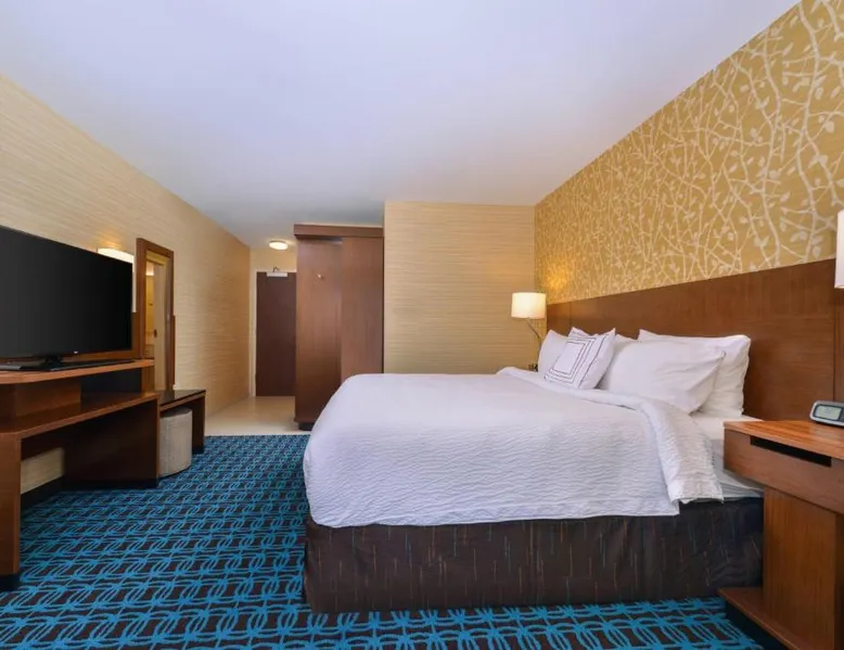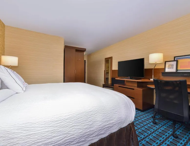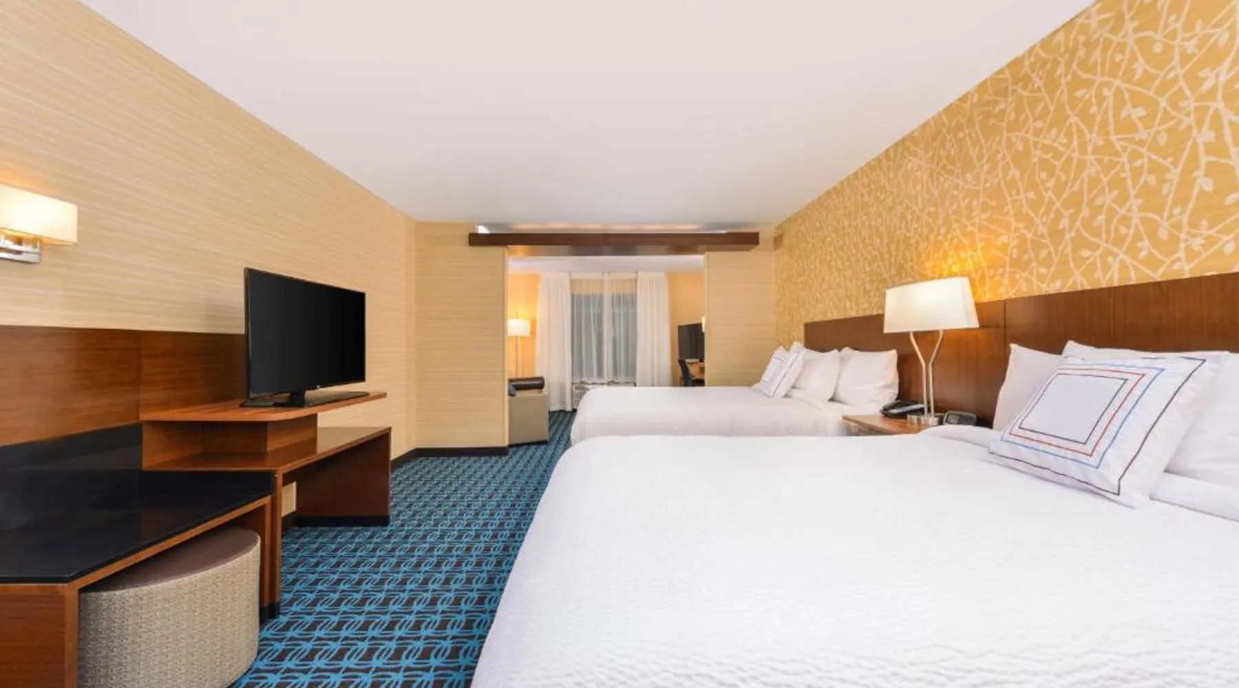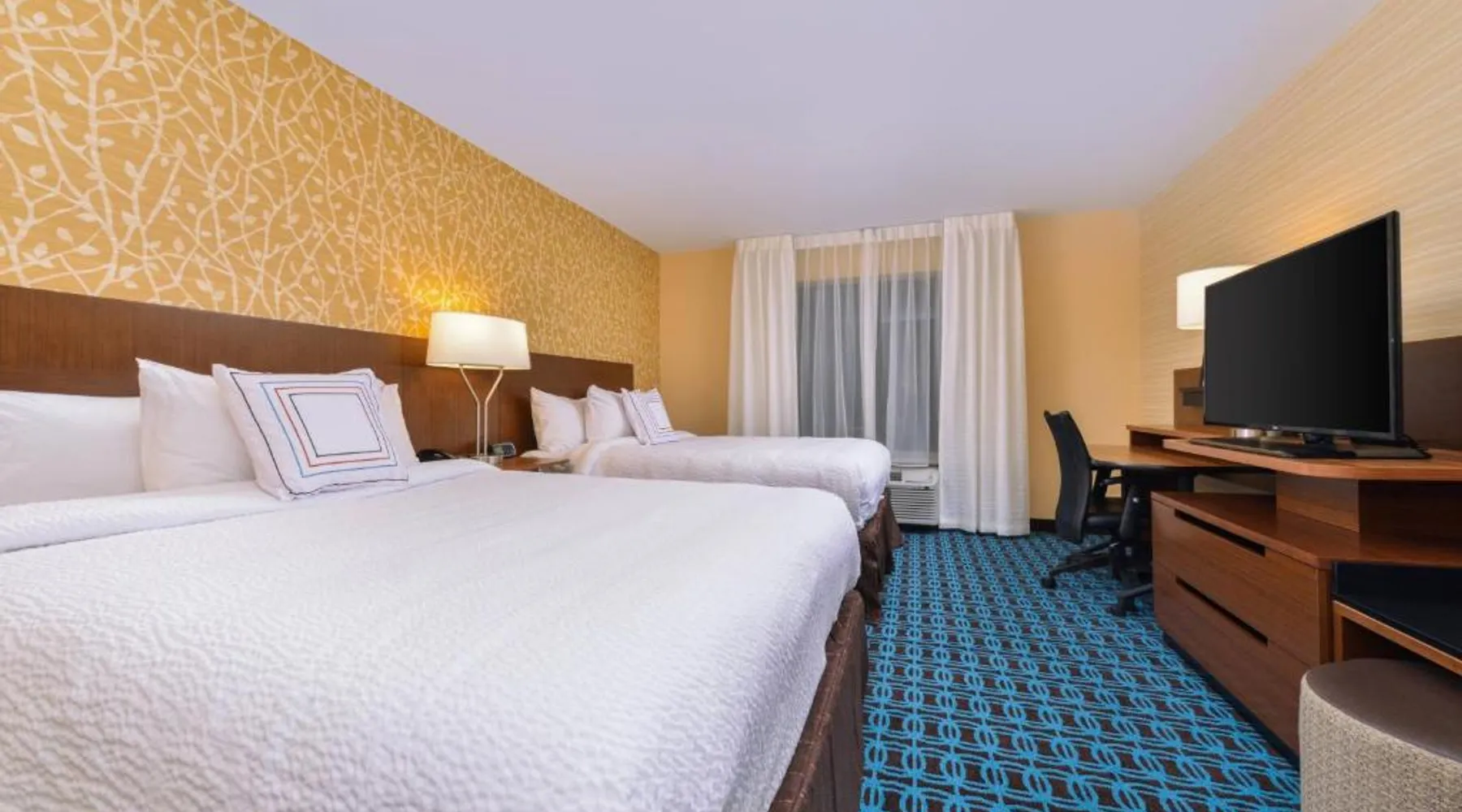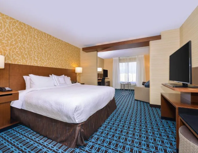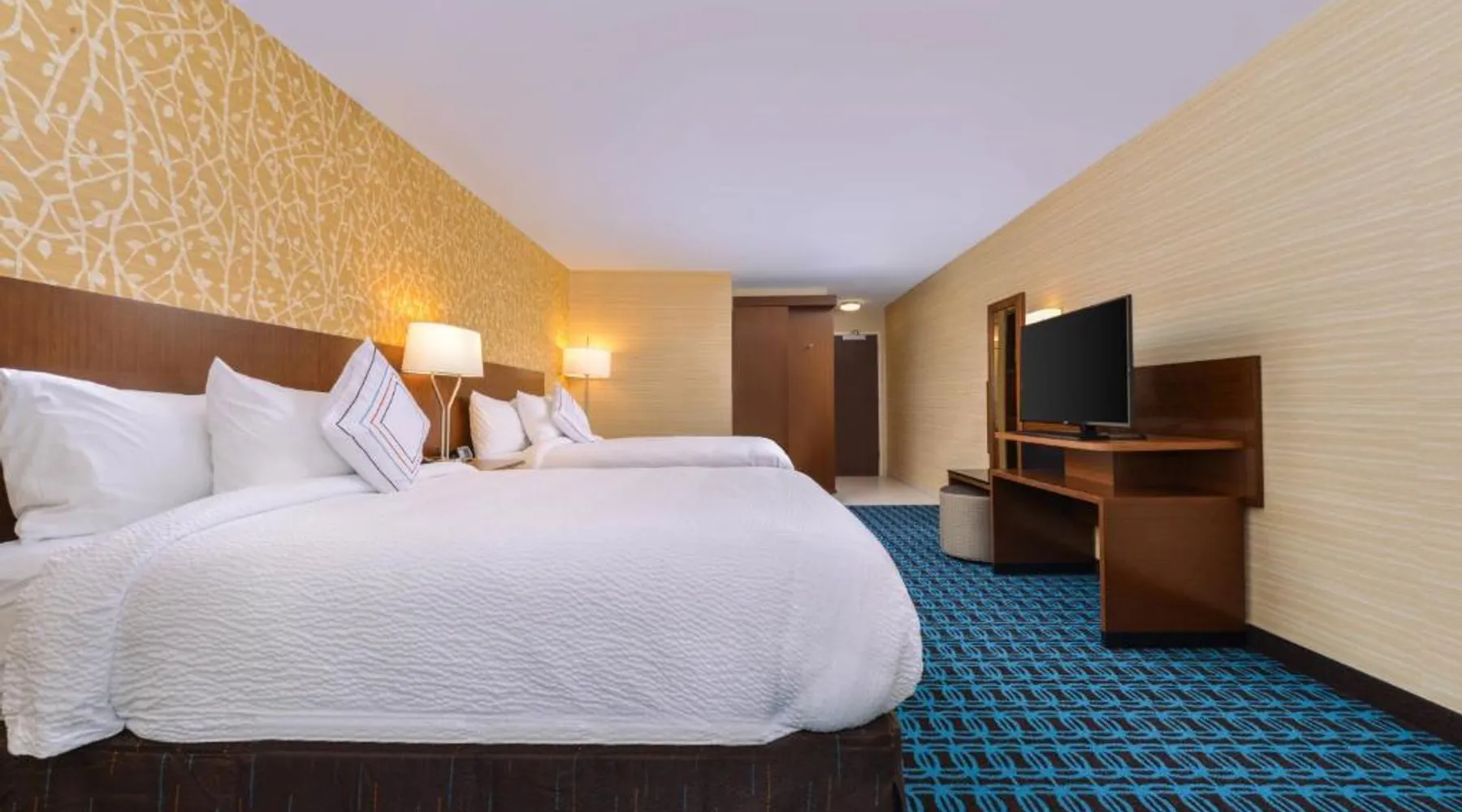 Comfortable Accommodations: Fairfield Inn & Suites by Marriott Coralville in Coralville offers rooms with air-conditioning, free WiFi, and amenities such as a refrigerator and TV. Guests enjoy free on-site private parking, a fitness center, and an indoor swimming pool. Dining and Services: The hotel provides an American buffet breakfast with warm dishes, fresh pastries, fruits, and juice. Additional facilities include a lounge, 24-hour front desk, business area, and electric vehicle charging station. Prime Location: Located 17 mi from The Eastern Iowa Airport, the hotel is near attractions like Kinnick Stadium (4.3 mi) and Paramount Theater (22 mi). Guests appreciate the convenient location and excellent room cleanliness. The suite provides air conditioning, a seating area, a carpeted floor, heating and a flat-screen TV. The unit offers 2 beds.