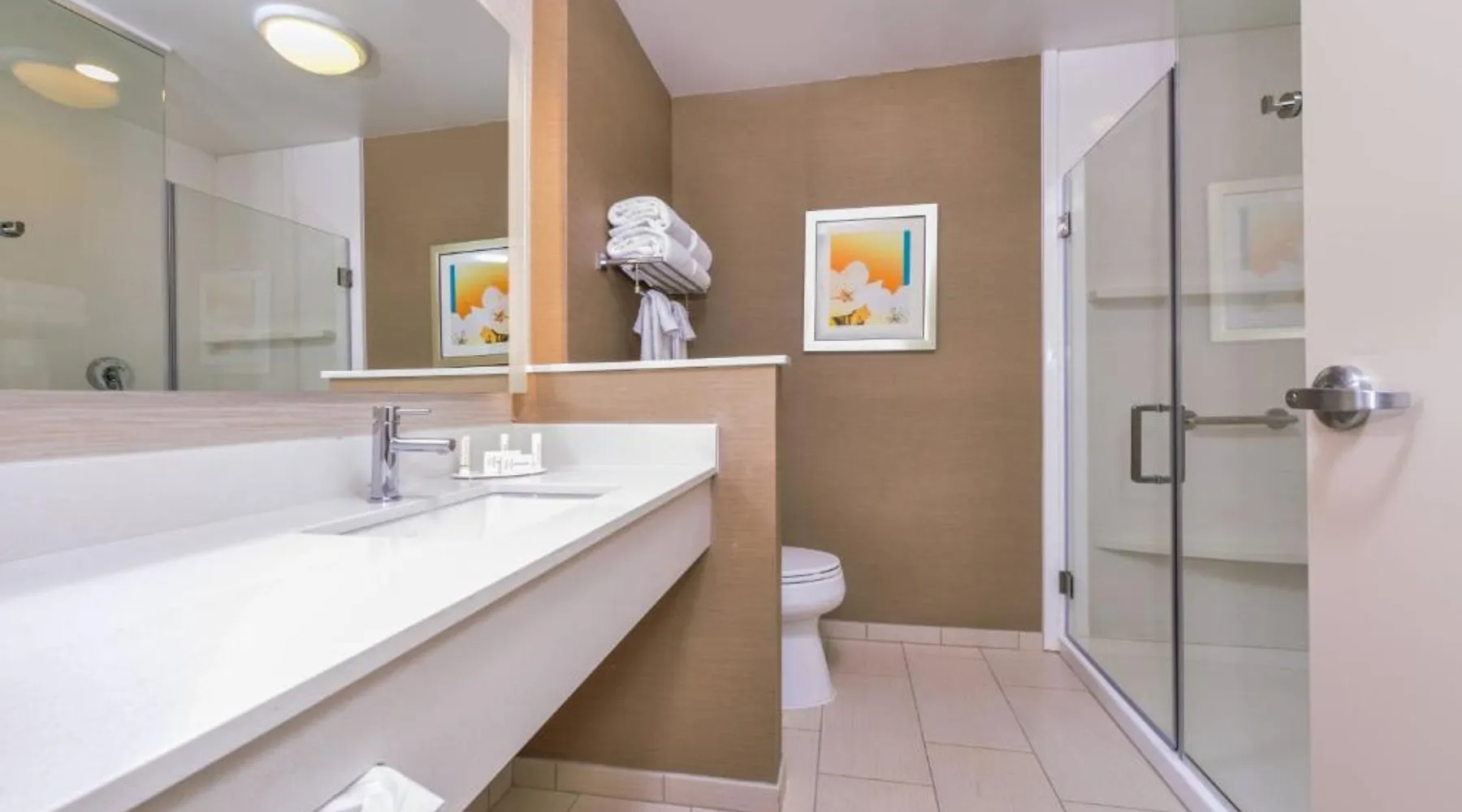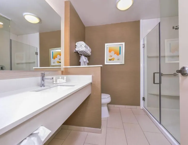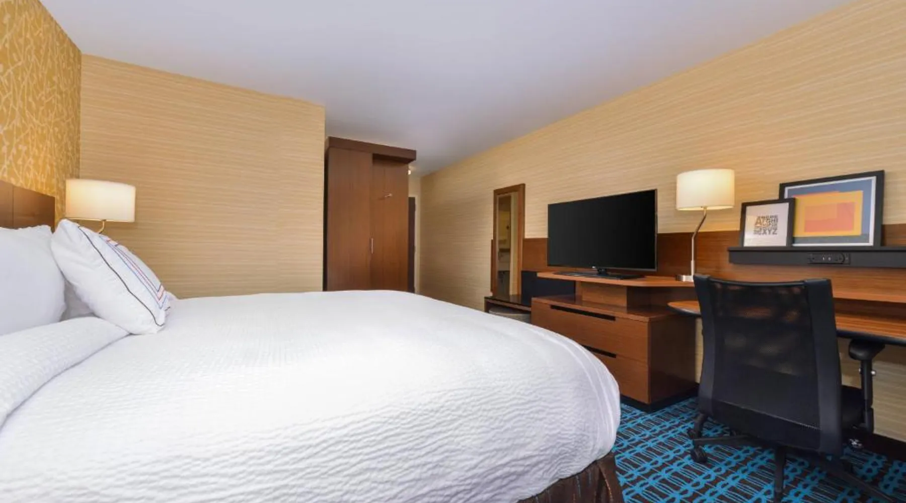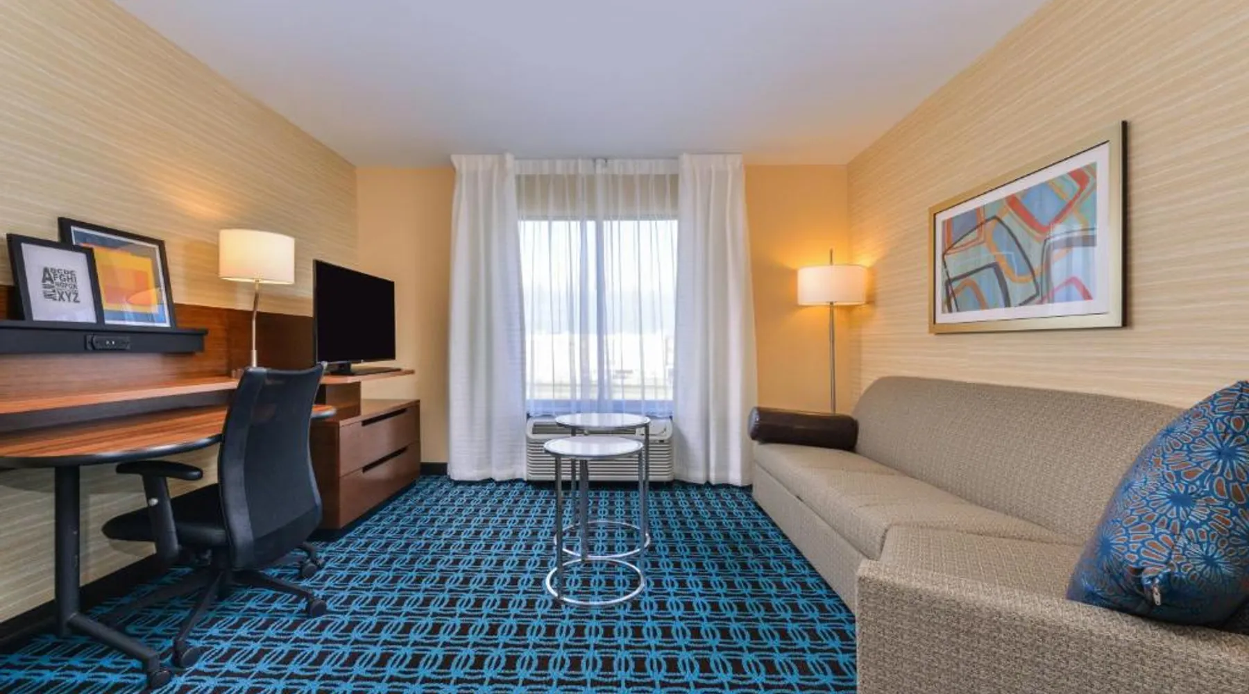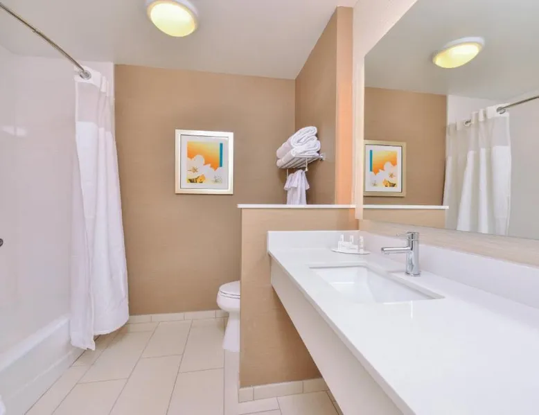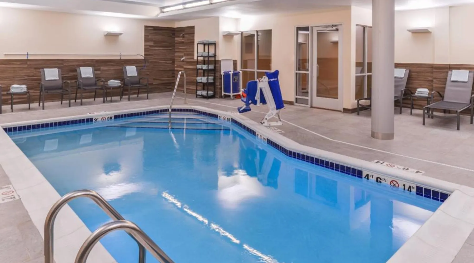 Comfortable Accommodations: Fairfield Inn & Suites by Marriott Coralville in Coralville offers rooms with air-conditioning, free WiFi, and amenities such as a refrigerator and TV. Guests enjoy free on-site private parking, a fitness center, and an indoor swimming pool. Dining and Services: The hotel provides an American buffet breakfast with warm dishes, fresh pastries, fruits, and juice. Additional facilities include a lounge, 24-hour front desk, business area, and electric vehicle charging station. Prime Location: Located 17 mi from The Eastern Iowa Airport, the hotel is near attractions like Kinnick Stadium (4.3 mi) and Paramount Theater (22 mi). Guests appreciate the convenient location and excellent room cleanliness. The suite provides air conditioning, a seating area, a carpeted floor, heating and a flat-screen TV. The unit offers 2 beds.