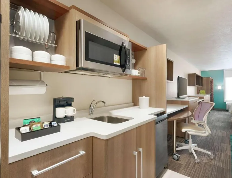 Comfortable Accommodations: Rooms feature air-conditioning, kitchen facilities, and free WiFi. Guests enjoy amenities such as a fitness center, indoor swimming pool, and hot tub. Convenient Facilities: The hotel offers a lounge, outdoor fireplace, fitness room, and 24-hour front desk. Additional services include a minimarket, daily housekeeping, business area, coffee shop, and barbecue facilities. Prime Location: Located in Bismarck, the hotel is 5 mi from Bismarck Municipal Airport and a 12-minute walk from Bismarck State College. Nearby attractions include North Dakota State Capitol (2.1 mi) and Dakota Zoo (3.1 mi). Guest Satisfaction: Guests appreciate the room cleanliness, comfort, and the breakfast provided by the property. In the fully equipped kitchen, guests will find a refrigerator, a dishwasher, kitchenware and a microwave. The studio offers air conditioning, a tea and coffee maker, a seating area, heating, as well as a TV with cable channels. The unit offers 1 bed.