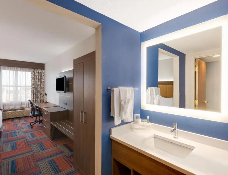 Comfortable Accommodations: Holiday Inn Express Cambridge by IHG in Cambridge offers comfortable rooms with air-conditioning, private bathrooms, tea and coffee makers, hairdryers, refrigerators, work desks, and seating areas. Each room includes a bath or shower and carpeted floors. Exceptional Facilities: Guests enjoy a fitness center, indoor swimming pool, and free WiFi. Additional amenities include a 24-hour front desk, free on-site parking, and a variety of room comforts. Convenient Location: Located 37 mi from Salisbury-Ocean City Wicomico Regional Airport, the hotel is near Academy Of The Arts (16 mi) and Federalsburg Marina (20 mi). Highly rated for its convenient location, breakfast provided by the property, and room comfort. The spacious double room features air conditioning and a seating area, as well as a private bathroom boasting a hairdryer. The unit has 2 beds.