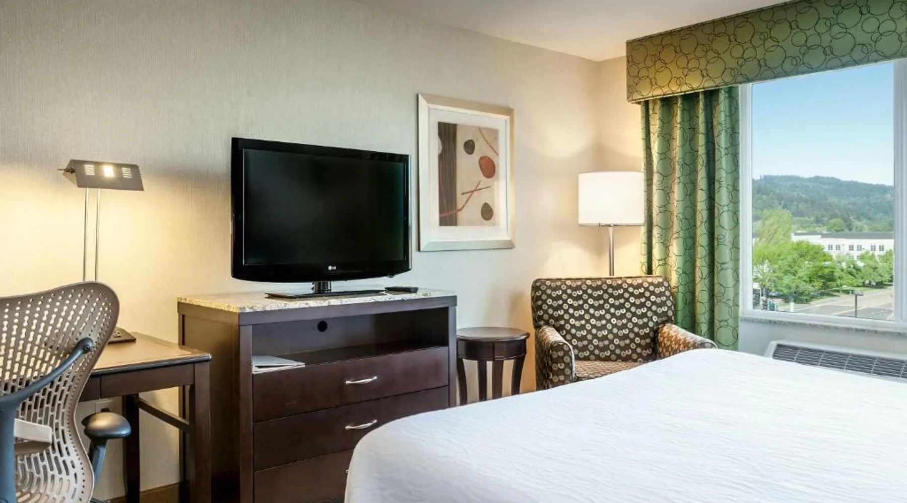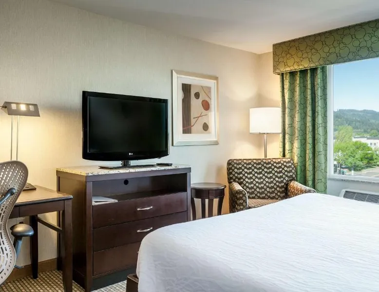 Comfortable Accommodations: Hilton Garden Inn Seattle/Bothell in Bothell offers family rooms with air-conditioning, free WiFi, and amenities such as tea and coffee makers, refrigerators, and work desks. Each room includes a bath or shower, TV, and free toiletries. Dining and Leisure: The family-friendly restaurant serves American cuisine for dinner. Guests can relax at the indoor swimming pool, terrace, or garden. The bar provides a welcoming atmosphere for socializing. Convenient Location: Located 9.3 mi from Snohomish County Airport, the hotel is near attractions like Lynnwood Convention Center (6.2 mi) and Etr Outdoor Adventures (2.4 mi). Free on-site parking is available. Guest Satisfaction: Guests appreciate the bed comfort, room cleanliness, and attentive property staff. Free Wi-Fi and a flat-screen cable TV with HBO, a microwave, a refrigerator and an iPod docking station are included in this room.