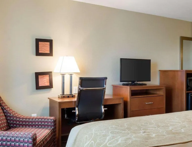 Comfortable Accommodations: Comfort Inn & Suites Watford City in Watford City offers comfortable rooms with private bathrooms, air-conditioning, and free WiFi. Each room includes a work desk, sofa bed, and TV, ensuring a pleasant stay. Facilities and Services: Guests can enjoy a fitness center, sun terrace, and outdoor seating area. Additional amenities include a lounge, coffee shop, and barbecue facilities. The hotel provides free on-site parking, a 24-hour front desk, and express check-in and check-out services. Dining Options: A continental buffet breakfast is served daily, featuring warm dishes, fresh pastries, pancakes, fruits, and juice. The child-friendly buffet caters to families with young children. Location and Attractions: Located 52 mi from Williston Basin International Airport, the hotel is near attractions such as the Watford City Visitor Center and the Watford City Museum. The unit has 2 beds.