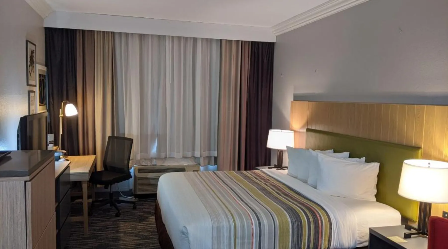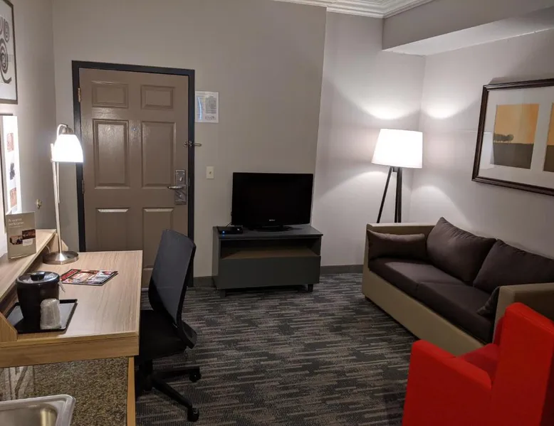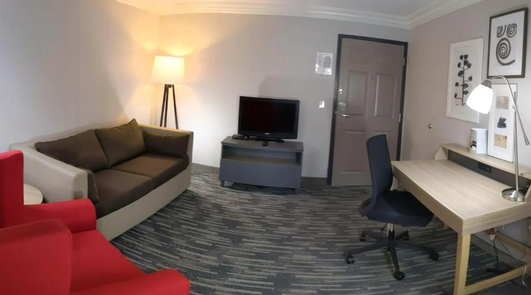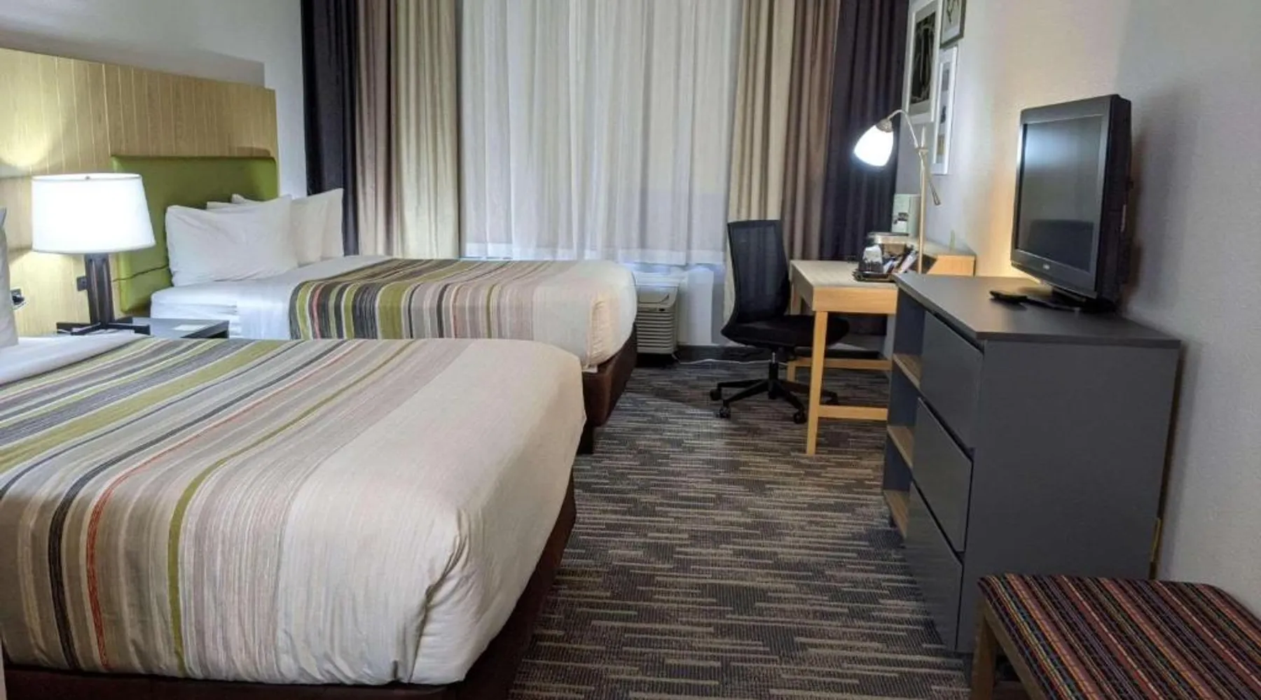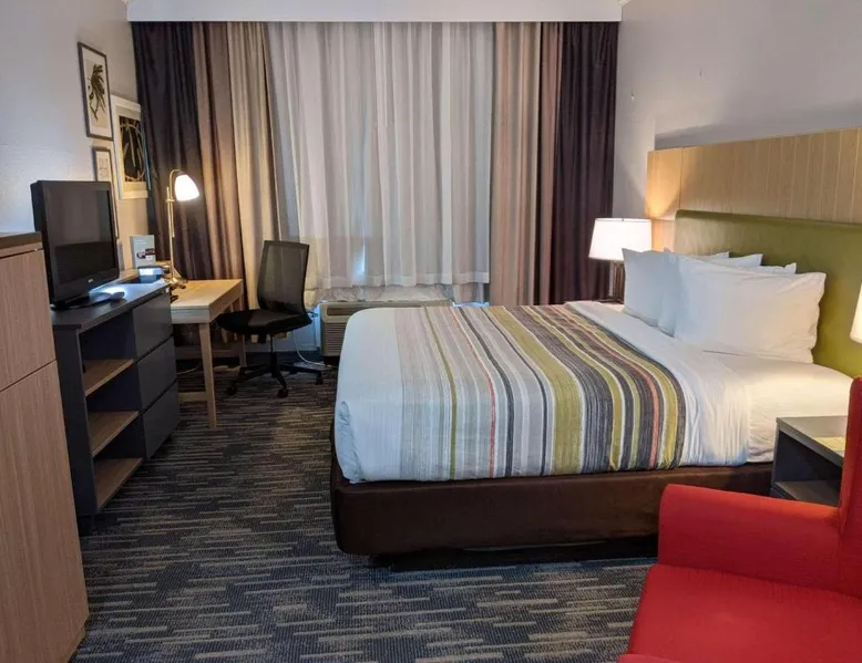 This Nashville Country Inn & Suites by Radisson is less than 5 minutes' drive from The Grand Ole Opry and Bass Pro Shops. It offers a continental breakfast with a few hot items, a seasonal outdoor pool, and free WiFi. The breakfast includes a selection of eggs, sausage, and bacon is every morning at the Opryland North Country Inn and Suites by Radisson. A 32-inch flat-screen TV, microwave, and refrigerator are provided in each room at this Nashville Country Inn and Suites. Rooms are decorated in rich reds and golds and also include a work desk and a coffee machine. The business center is located off of the lobby and laundry facilities are available 24 hours a day. Guests can also relax and read a book in the common library on site. Downtown Nashville, Tennessee is 9.9 mi from the hotel. Nashville International Airport is 10 minutes' drive from the hotel. This room features a flat-screen cable TV, complimentary WiFi and tea- and coffee-making facilities.