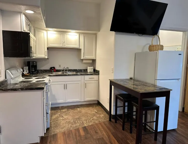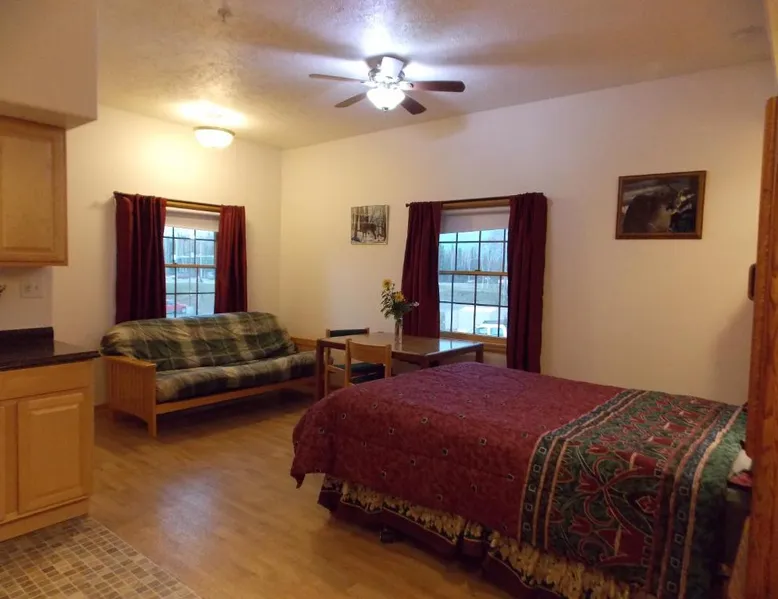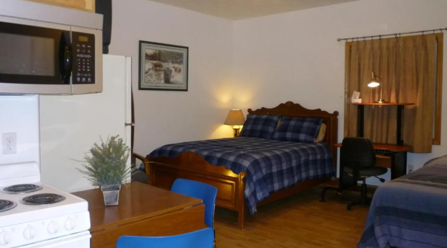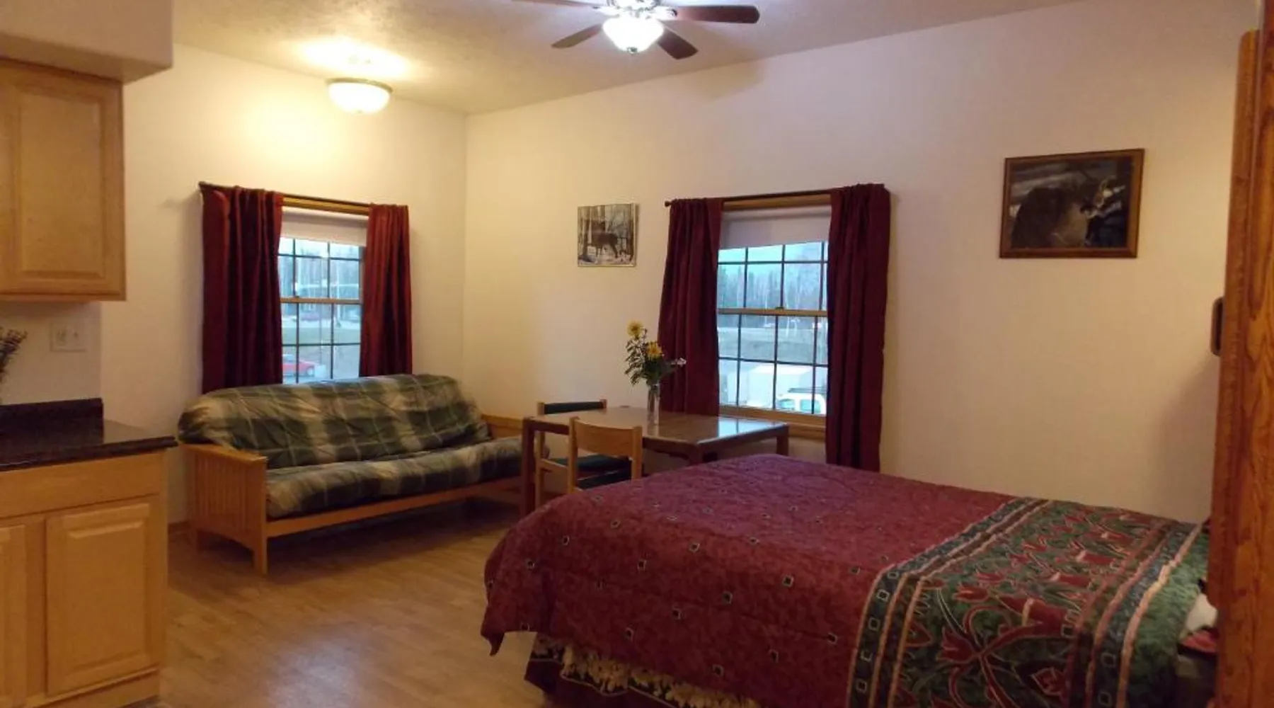 Comfortable Accommodations: Abbey Archway Inn in Fairbanks offers spacious rooms with comfortable furnishings. Guests enjoy private check-in and check-out services, ensuring a seamless arrival and departure experience. Modern Amenities: The hotel provides free WiFi, a garden, and a hot tub. Additional facilities include a business area, outdoor seating, picnic area, family rooms, and full-day security. Free on-site private parking is available. Convenient Location: Located 3.1 mi from Fairbanks International Airport and 1.2 mi from the University of Alaska Fairbanks, the hotel is near boating activities. Nearby attractions include the Alaska Railroad Depot and the Morris Thompson Cultural Center. Guest Favorites: Guests appreciate the room comfort, size, and well-equipped kitchen, making it a preferred choice for travelers. A fully equipped kitchen is available in this studio. A spa bath and a cable TV wit ha DVD player are also featured.