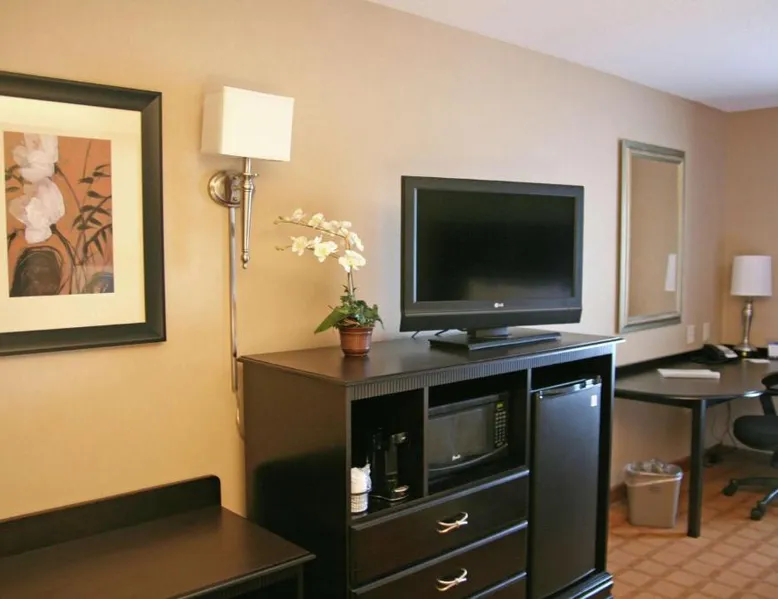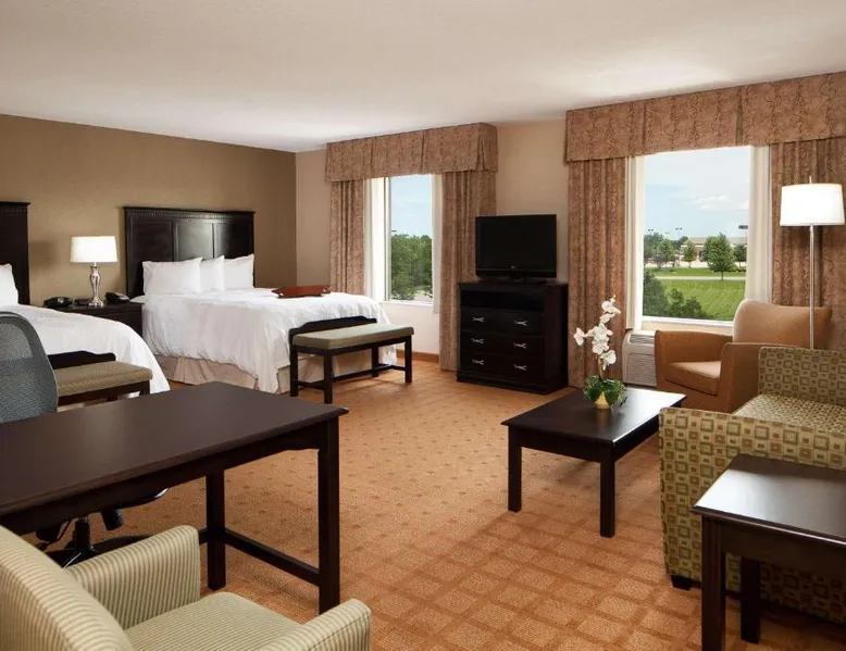 Comfortable Accommodations: Hampton Inn & Suites Chicago/Saint Charles in Saint Charles offers rooms with air-conditioning, free WiFi, and amenities such as a refrigerator, microwave, and work desk. Each room includes a bath, tea and coffee maker, and a TV. Leisure Facilities: Guests can enjoy a saltwater and indoor swimming pool, a fitness room, and a 24-hour front desk. Additional facilities include a minimarket, daily housekeeping service, and free on-site parking. Convenient Location: Located 25 mi from Chicago O'Hare International Airport, the hotel is near attractions like Batavia Depot Museum (6.8 mi) and Brookfield Zoo (29 mi). Guests appreciate the room cleanliness, attentive staff, and convenient location. This studio offers a sofa bed.