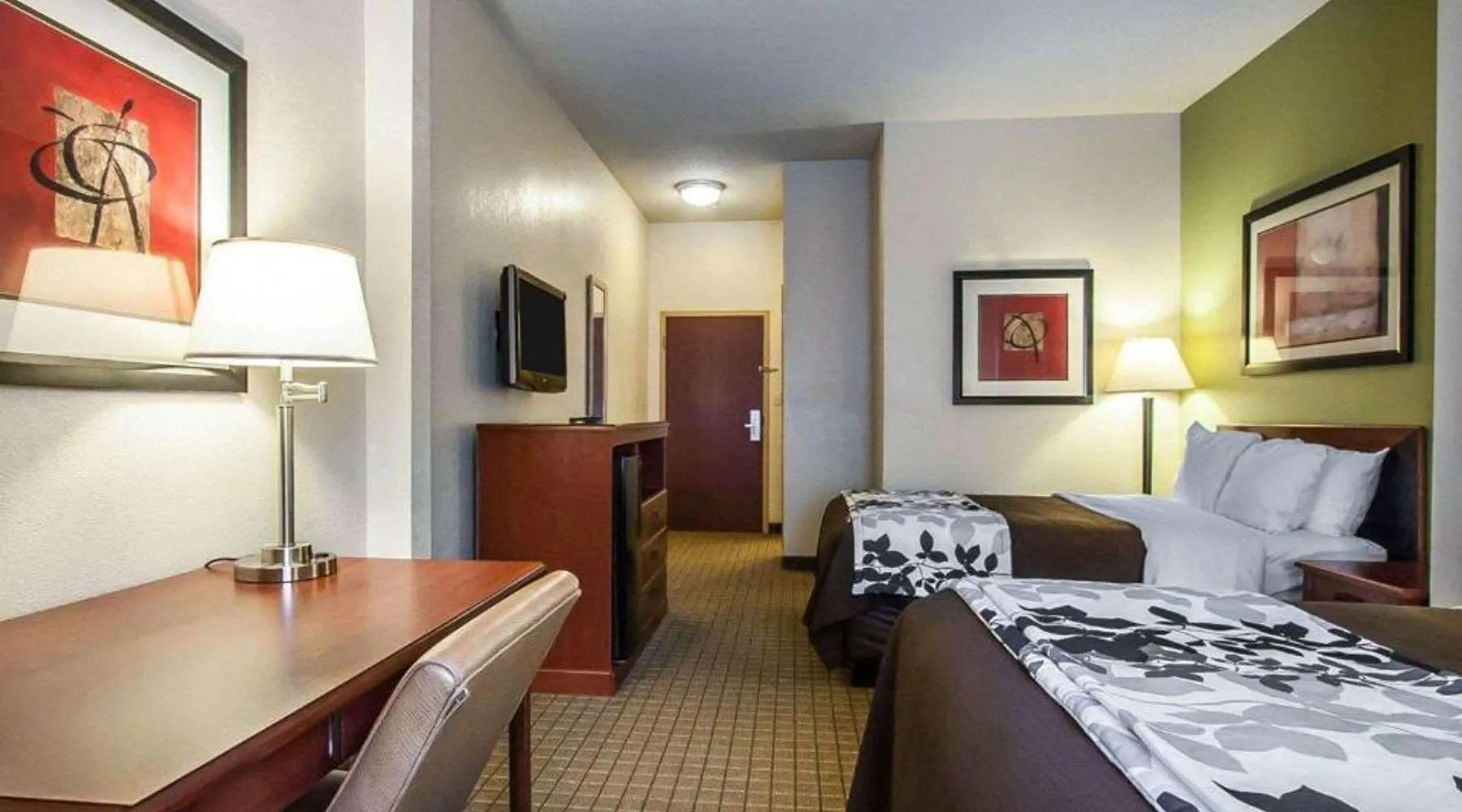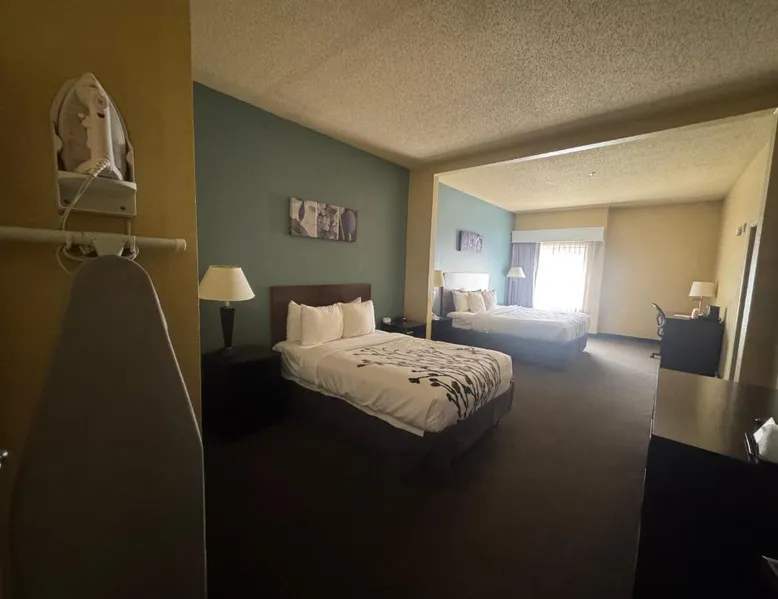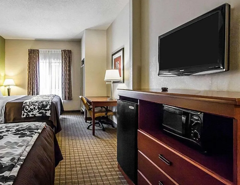The Sleep Inn & Suites Hattiesburg North hotel is conveniently located near several area attractions and local points of interest. This Hattiesburg, MS hotel is minutes away from the Hattiesburg Lake Terrace Convention Center, the Hattiesburg-Laurel Regional Airport, William Carrie University, The University of Southern Mississippi and Flint Creek Water Park. All of our guest rooms have microwaves, refrigerators, coffee makers, curved shower rods, hair dryers, flat-screen televisions, irons, ironing boards, voice mail and cable television. Handicap accessible and nonsmoking rooms can be requested. For added convenience, coin-operated laundry facilities and valet cleaning services are offered. Ample parking is available for cars, trucks and busses. Guests of this Hattiesburg, MS hotel are invited to enjoy features and amenities like: Free continental breakfast; Free local calls; Free wireless high-speed Internet access; Exercise room Business travelers will appreciate access to copy and fax services. A nice selection of restaurants and shopping opportunities are close to the hotel. The surrounding area offers a variety of recreational activities like hiking, swimming, boating and golfing. This family room features a tea and coffee maker, heating and a TV with cable channels. The unit offers 2 beds.