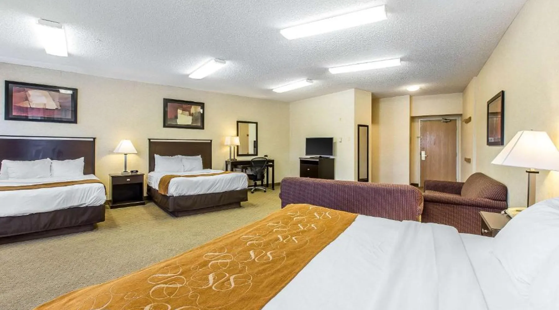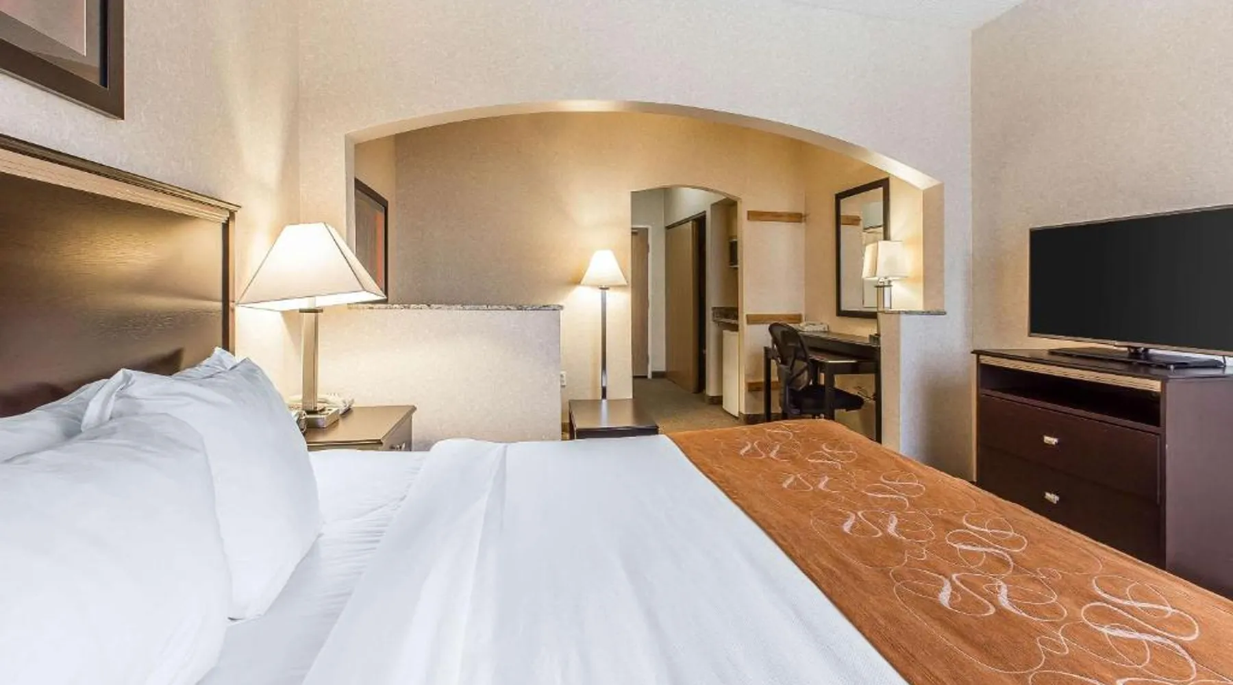 This Dillon hotel is located near Lake Dillon and offers scenic views of the Rocky Mountains. Several exciting world-class ski resorts and golf courses are nearby. Comfort Suites is a completely smoke-free property. Appreciate the interior corridors in the chilly winter months. After a day of hiking or skiing, soak in the whirlpool or take a swim in the indoor pool. Several recreational activities are available in the nearby area, such as fishing, biking and boating. Shopping and dining venues are also offered within minutes of the hotel. Have fun in Dillon, while staying at Comfort Suites. The suite includes a private bathroom fitted with a hairdryer. The suite features air conditioning, a tea and coffee maker, heating, a flat-screen TV with cable channels, as well as mountain views. The unit has 3 beds.