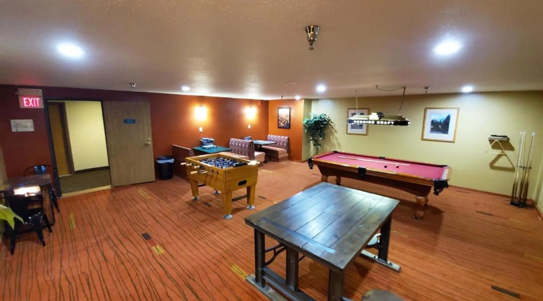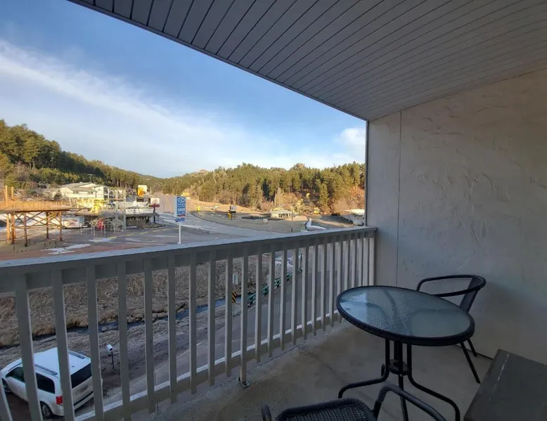 Comfortable Accommodations: Roosevelt Inn Mount Rushmore in Keystone offers family rooms with private bathrooms, air-conditioning, and free WiFi. Each room includes a balcony with mountain views, a work desk, and a sofa bed. Leisure Facilities: Guests can enjoy a swimming pool with a view, sun terrace, and outdoor seating area. The property features a lounge, games room, and a hot tub for relaxation. Convenient Location: Located 2.5 mi from Mount Rushmore and 28 mi from Rapid City Regional Airport, the inn is near attractions such as Rush Mountain Adventure Park (6.8 mi) and Crazy Horse Memorial (18 mi). Free on-site parking is available. Guest Services: The inn provides free WiFi, air-conditioning, and a hot tub. Additional services include a elevator, housekeeping, express check-in and check-out, and streaming services. A flat-screen TV and a small refrigerator are featured in this air-conditioned room. An private bathroom equipped with a hairdryer is also included. A microwave is provided as well.