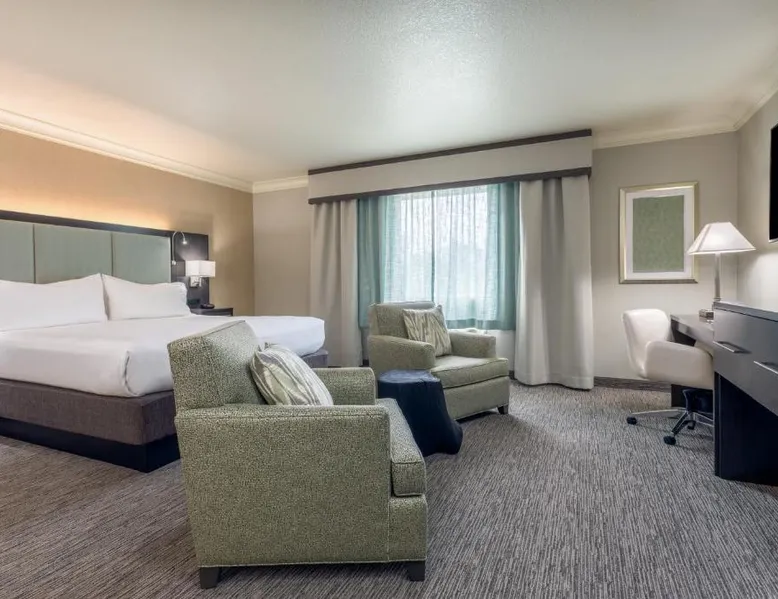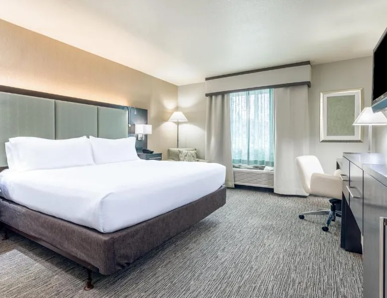 Comfortable Accommodations: Holiday Inn Auburn by IHG in Auburn offers family rooms with air-conditioning, private bathrooms, and free WiFi. Each room includes a work desk, refrigerator, and TV. Exceptional Facilities: Guests can enjoy a fitness center, outdoor swimming pool, and a beautiful garden. Additional amenities include a hot tub, elevator, and free on-site parking. Dining Experience: The modern restaurant serves American cuisine for lunch and dinner. A bar provides a relaxing atmosphere for evening meals. Convenient Location: Located 34 mi from Sacramento International Airport, the hotel is close to attractions such as William Jessup University (19 mi) and Empire Ranch Golf Course (22 mi). Free breakfast is provided by the property. A flat-screen cable TV with pay options is available in this room. A small fridge and tea and coffee-making facilities are also provided.
