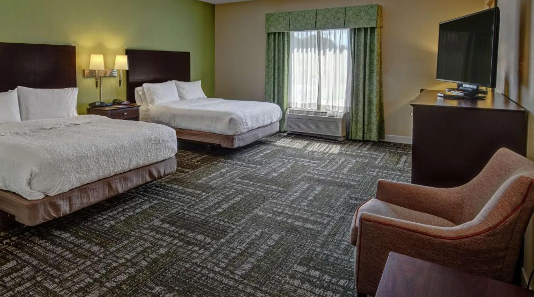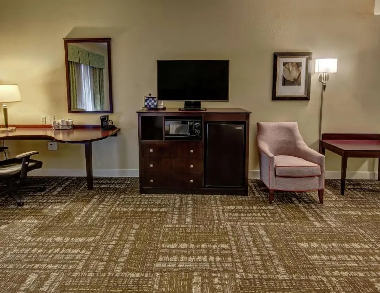 Comfortable Accommodations: Hampton Inn Crossville in Crossville offers comfortable rooms with refrigerators, microwaves, tea and coffee makers, hairdryers, showers, and TVs. Guests appreciate the room cleanliness and excellent service support. Exceptional Facilities: The hotel features an outdoor swimming pool, fitness room, elevator, and 24-hour front desk. Free on-site parking is available, and a continental breakfast is served daily. Convenient Location: Located 68 mi from McGhee Tyson Airport, the hotel provides easy access to local attractions. Guests enjoy the convenient location and excellent service. This room features a microwave, refrigerator, and cable TV.