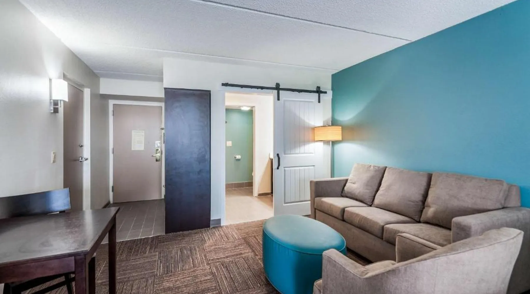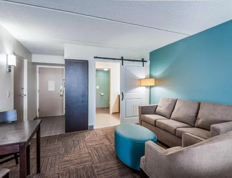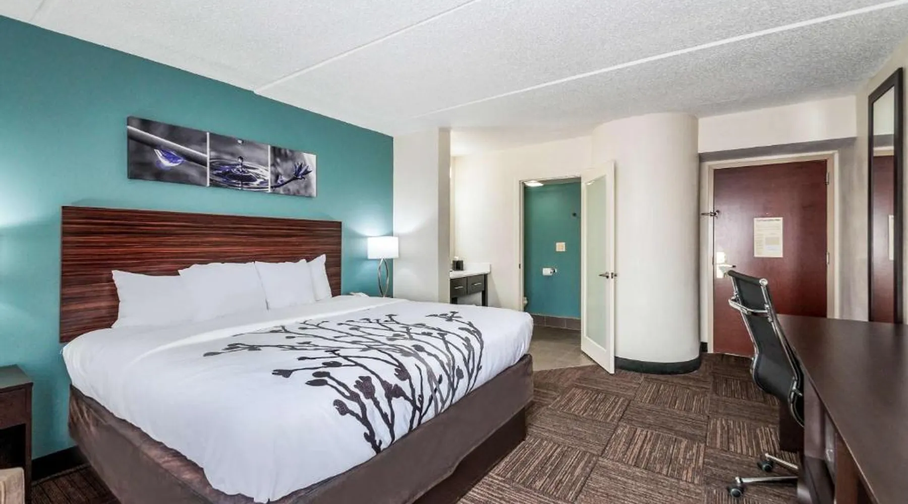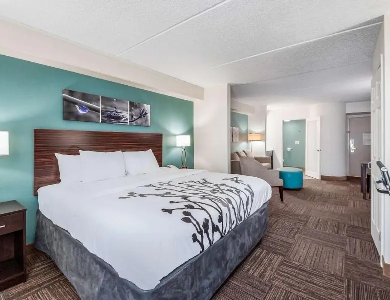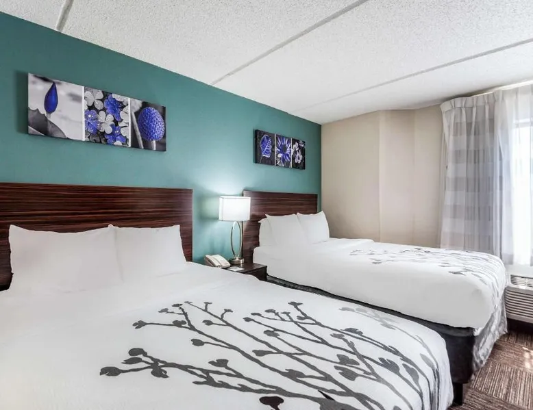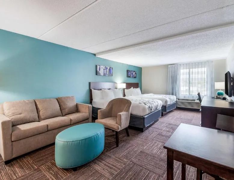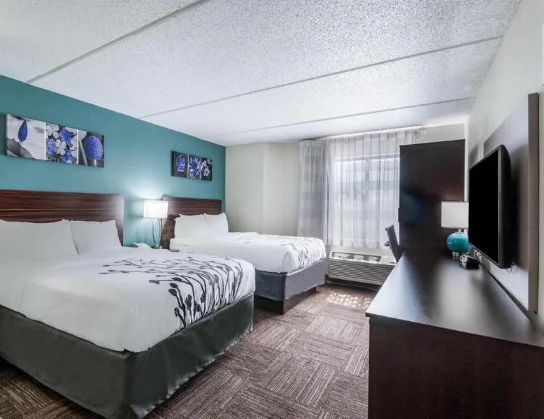 The Sleep Inn & Suites Rehoboth Beach hotel is located on U.S. Route 1, near many Delaware beach attractions, including historic downtown Lewes, Rehoboth Beach, Dewey Beach and Bethany Beach. This Lewes, DE hotel is minutes from the Delaware Seashore State Park and the Cape May-Lewes Ferry. All guest rooms include irons, ironing boards, coffee makers, hair dryers, microwaves, refrigerators and cable television with HBO. Two-room suites are also offered. Hotel features and amenities include: Free Morning Medley Hot Breakfast and free coffee; Free local calls; Free high-speed Internet access; Free weekday newspaper; Outdoor heated pool and kiddy pool with water activities Be sure to take advantage of the on-site basketball court, fitness room and outdoor picnic area. Business travelers will appreciate lobby workstations with wireless Internet access and access to copy and fax services. Plenty of parking is offered and group busses are welcome. Laundry facilities are located on the property. Visitors will enjoy many outdoor activities located just minutes away, including the boardwalk, deep-sea fishing, boating, parasailing, golfing, tennis, water slides, go-carts and other amusements. Several restaurants, museums and antique shops are within walking distance. Best of all, this Lewes, DE hotel is central to more than 140 tax-free shops in the Rehoboth Beach Outlets, including Harry and David, Mikasa, The Gap Outlet, Banana Republic, L.L. Bean and many more. This room features a flat-screen TV.