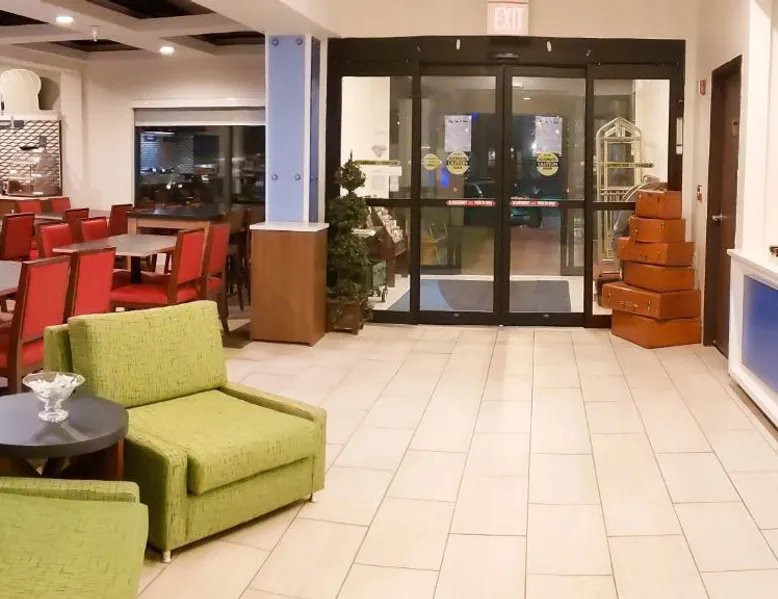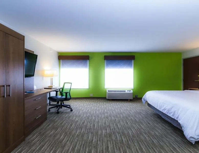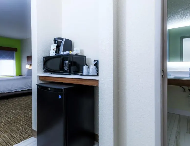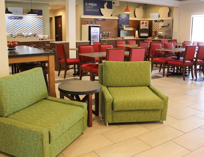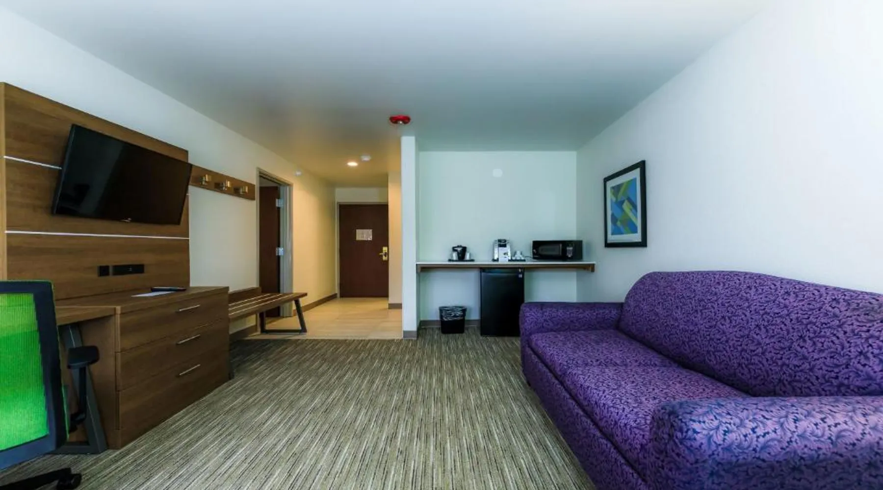 Comfortable Accommodations: Holiday Inn Express Osage Beach - Lake of the Ozarks by IHG in Osage Beach offers clean rooms with air-conditioning, private bathrooms, and free WiFi. Each room includes a work desk, sofa, and TV. Facilities and Services: Guests can enjoy a fitness center, indoor swimming pool, and free on-site parking. Additional amenities include a elevator, 24-hour front desk, business area, and express check-in and check-out services. Breakfast and Dining: A continental buffet breakfast is served daily, featuring warm dishes, fresh pastries, pancakes, fruits, and juice. The property also offers a coffee machine and free toiletries. Location and Attractions: Located 55 mi from Waynesville-St. Robert Regional Airport, the hotel is near attractions such as Bridal Cave and Dogwood Canyon. Guests appreciate the room cleanliness, breakfast provided by the property, and attentive staff. Room offers a spacious seating area with a sofa bed.