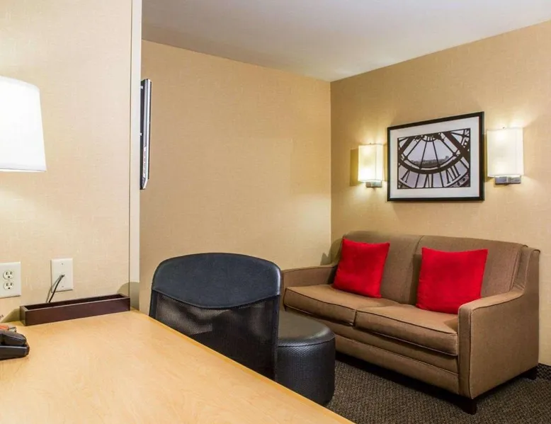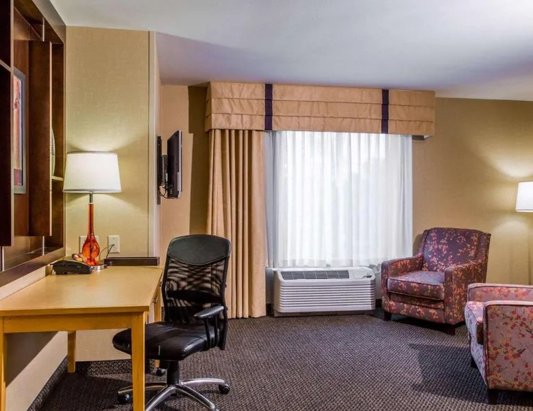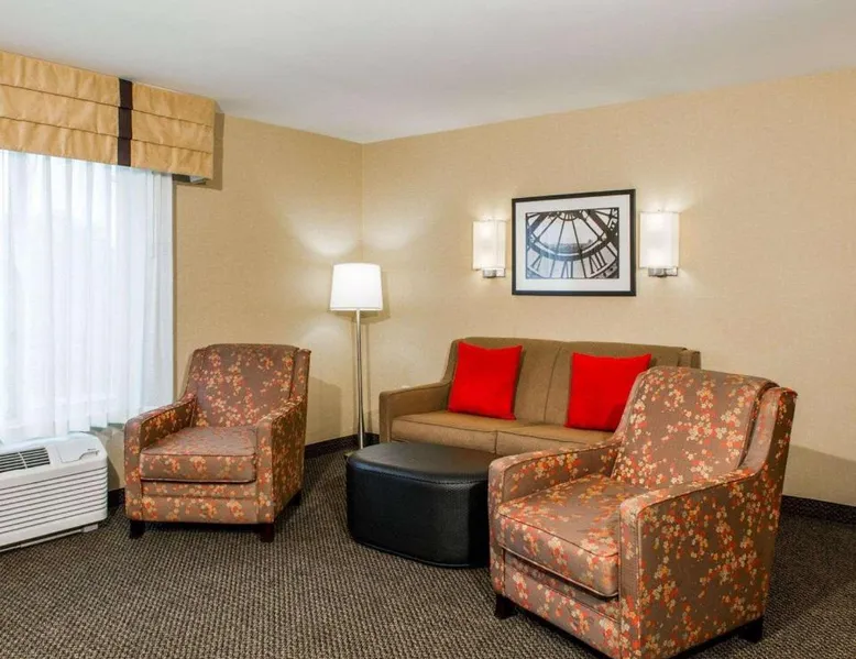 Comfortable Accommodations: Cambria Hotel Appleton in Appleton offers rooms with air-conditioning, private bathrooms, and free WiFi. Each room includes a work desk, TV, and sofa for added comfort. Exceptional Facilities: Guests can enjoy a spa and wellness center, indoor swimming pool, fitness center, and hot tub. The hotel also features a restaurant serving American cuisine with vegetarian and gluten-free options, a bar, and a business area. Convenient Location: Located 11 mi from Outagamie County Regional Airport, the hotel is near attractions such as The History Museum at the Castle (4.3 mi) and Lawrence University (4.3 mi). Free on-site parking is available. Guest Satisfaction: Guests appreciate the attentive staff, room cleanliness, and comfort. This air-conditioned suite is consisted of of a flat-screen TV with cable channels and a private bathroom.