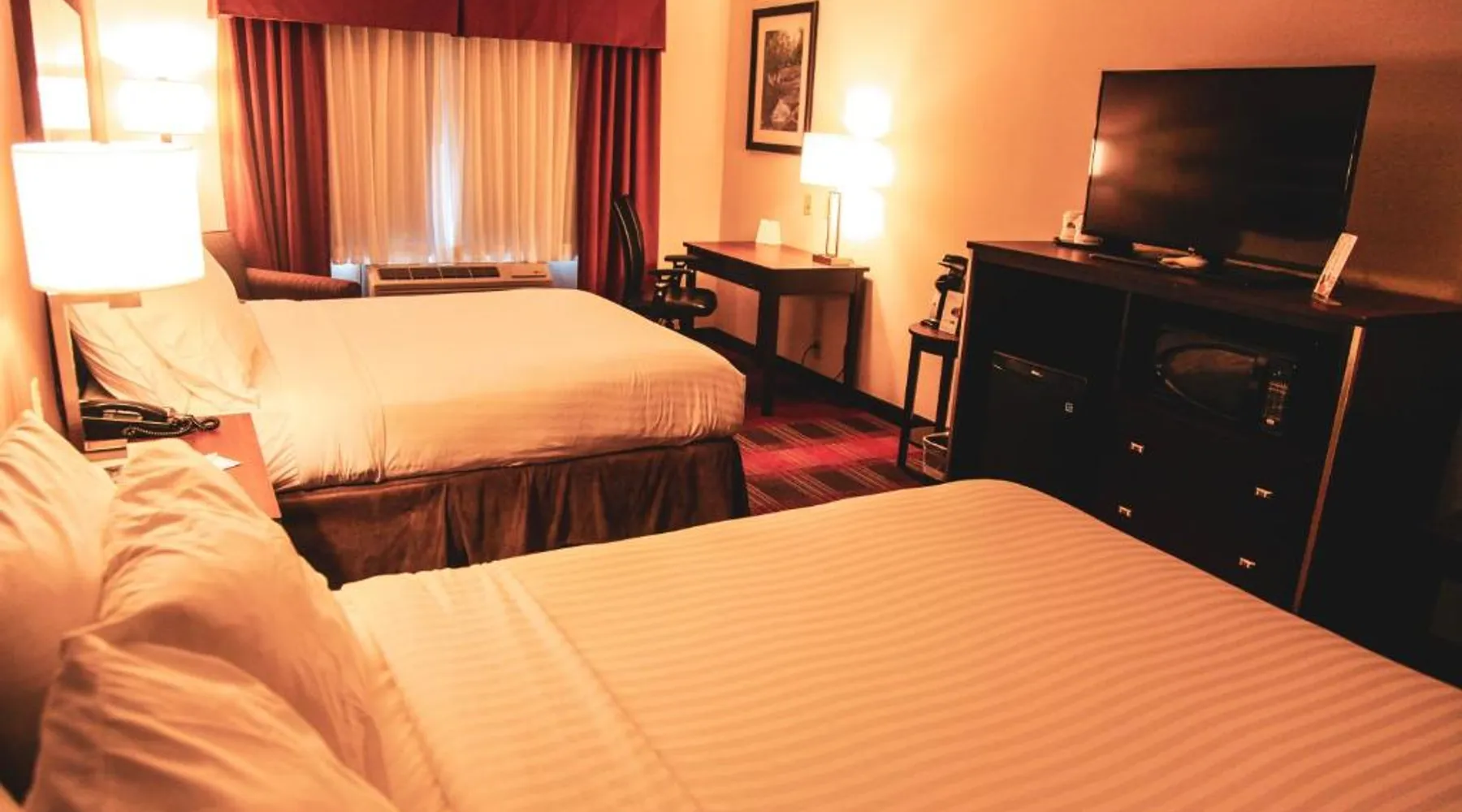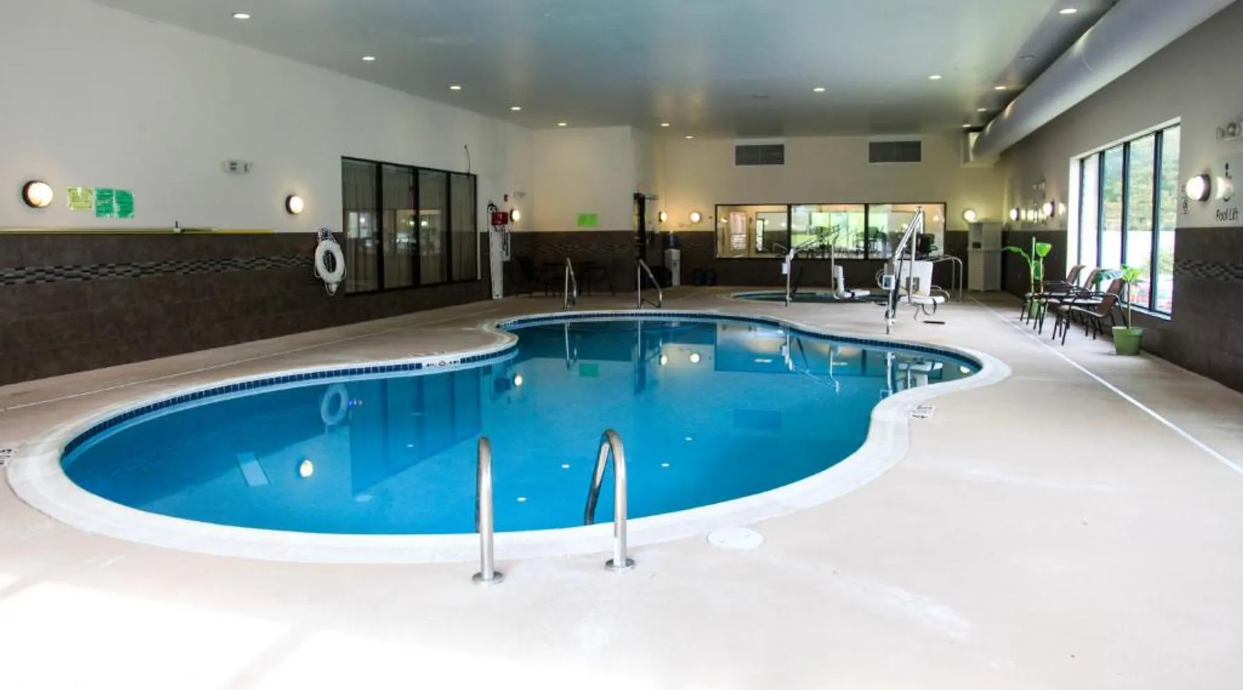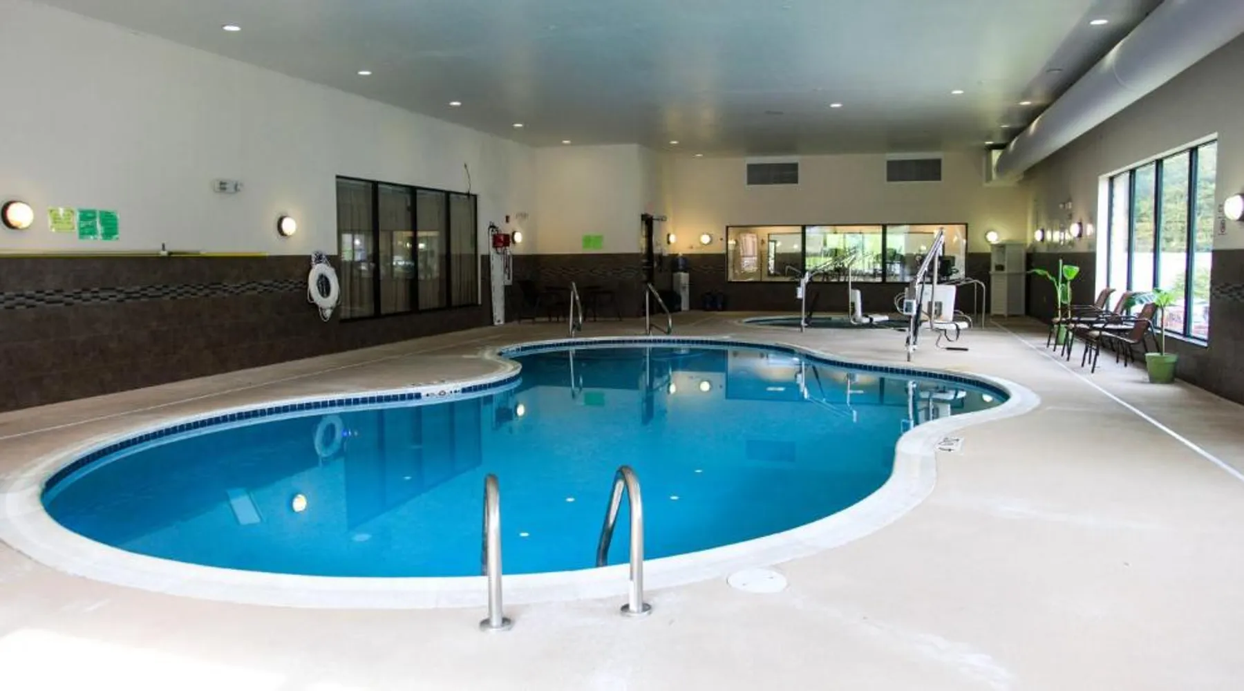 Comfortable Accommodations: Holiday Inn Express & Suites Cumberland - La Vale by IHG in La Vale offers rooms with air-conditioning, private bathrooms, baths, hairdryers, sofa beds, refrigerators, seating areas, microwaves, and TVs. Exceptional Facilities: Guests enjoy an indoor swimming pool, fitness center, and free WiFi. The hotel provides a 24-hour front desk, housekeeping service, and free on-site parking. Convenient Location: Located 62 mi from Altoona-Blair County Airport and 8.1 mi from Frostburg State University. Highly rated for staff, room cleanliness, and property cleanliness. The unit offers 2 beds.