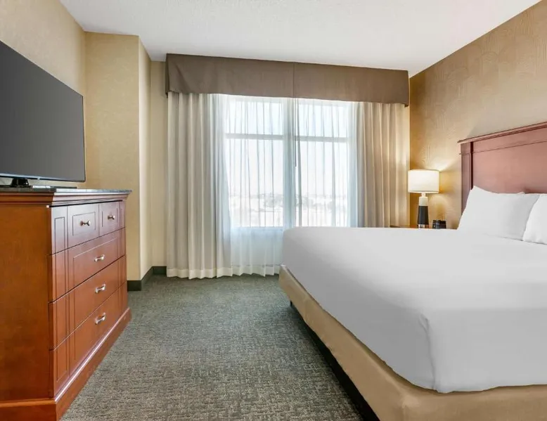 Featuring a daily hot breakfast buffet, Drury Plaza Hotel Phenix Tempe is 10 minutes’ drive from Arizona State University. An outdoor pool and hot tub are available to guests of the hotel. Free WiFi, a flat-screen cable TV, a microwave and a small refrigerator are offered in each air-conditioned room at Drury Plaza Hotel Phenix Tempee. An private bathroom with a hairdryer is also included. A 24-hour front desk assists guests at Drury Plaza Hotel Phenix Tempe. Other facilities offered at the property include a fitness center, a business center and meeting facilities. Free snacks and beverages are served each evening. The property offers free parking. The hotel is 6.9 mi from Tempe Center for the Arts. Phenix Sky Harbor International Airport is 15 minutes’ drive from Drury Plaza Hotel Phenix Tempe. This suite comes with 1 living room, 1 separate bedroom and 1 bathroom with a bath and free toiletries. The suite features air conditioning, a coffee machine, a seating area, a wardrobe, as well as a flat-screen TV with cable channels. The unit has 2 beds.