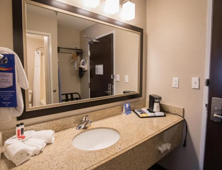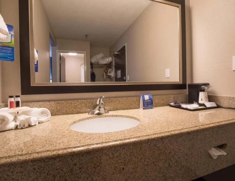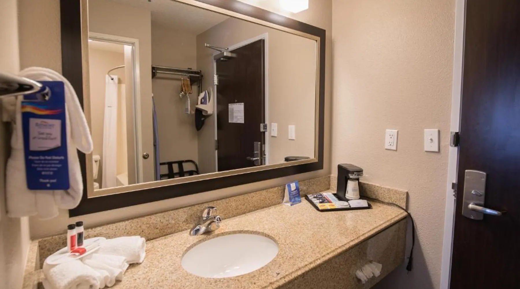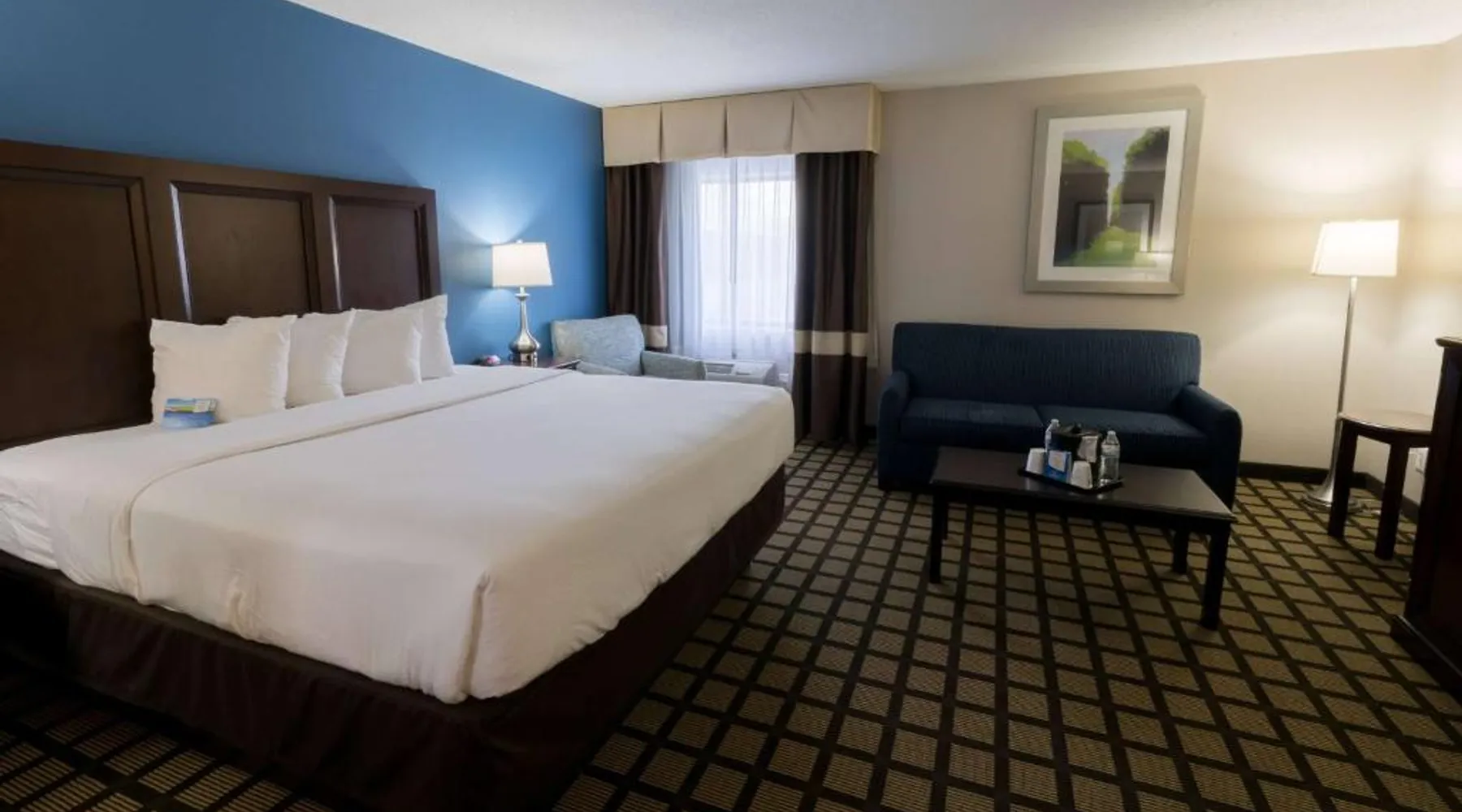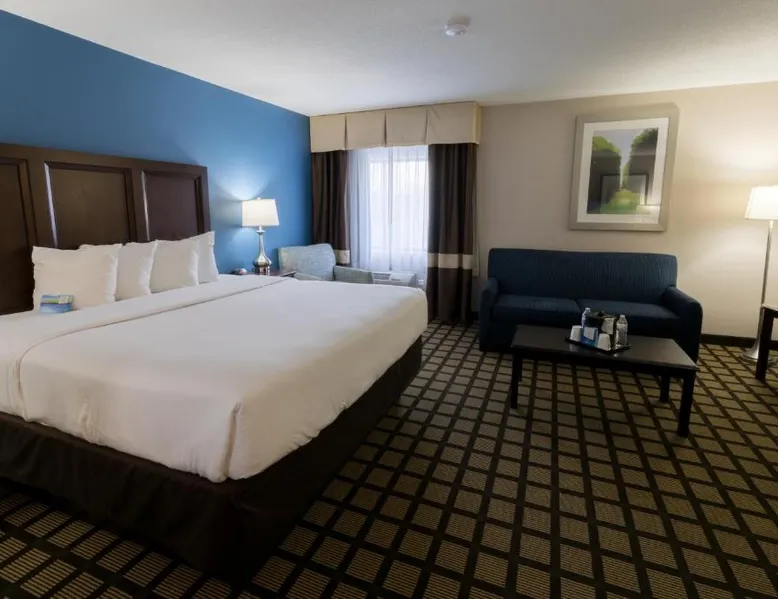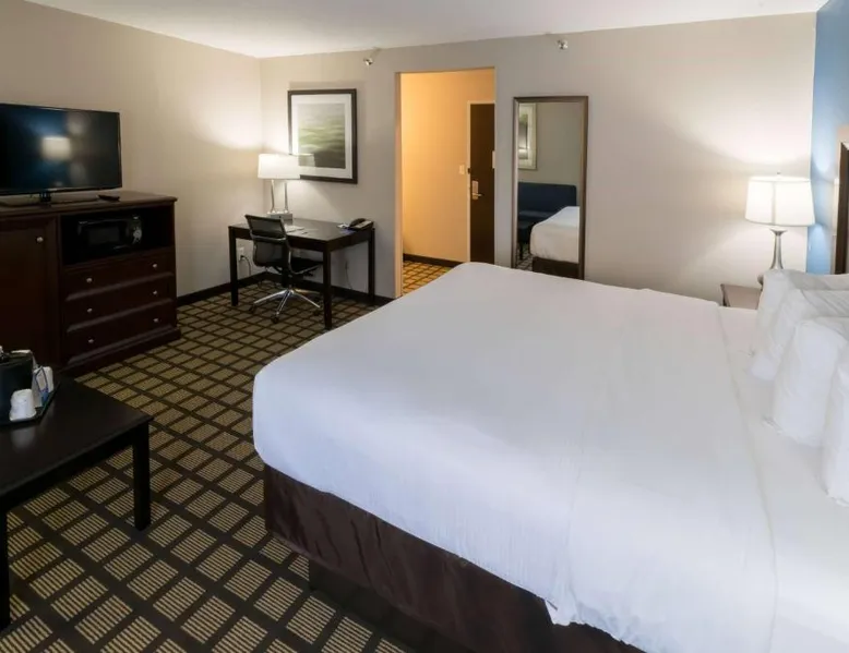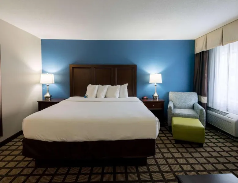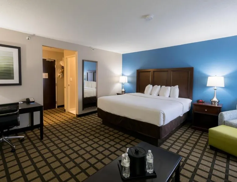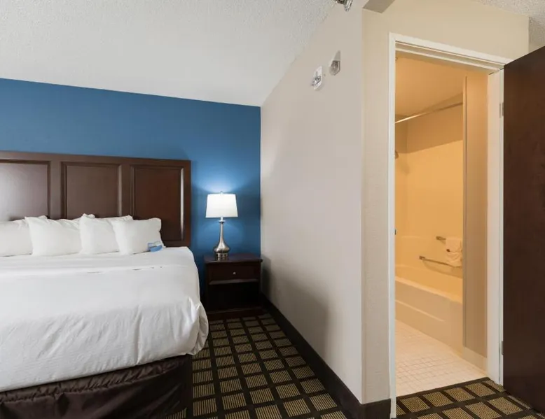 Less than 6 minutes’ drive from Detroit Metropolitan Wayne County Airport, this hotel features guest rooms with free Wi-Fi and flat-screen TVs. A complimentary hot breakfast is served each morning. Tea and coffee-making facilities are included in each room at Baymont by Wyndham Detroit Airport/Romulus A hairdryer and ironing facilities are also provided in each room. A free 24-hour airport transfer service is provided to all guests of Baymont by Wyndham Detroit Airport/Romulus. Laundry facilities and a business center are available on site. Guests can also enjoy a workout in the fitness center on the property. Motor City Casino, Ford Field and Detroit city center are within 20 minutes’ drive of this hotel. The Henry Ford Museum is 11 miles away. Featuring free toiletries, this quadruple room includes a private bathroom with a bath or a shower and a hairdryer. The quadruple room has carpeted floors, a seating area with a flat-screen TV with streaming services, air conditioning, a tea and coffee maker, as well as a wardrobe. The unit has 1 bed.