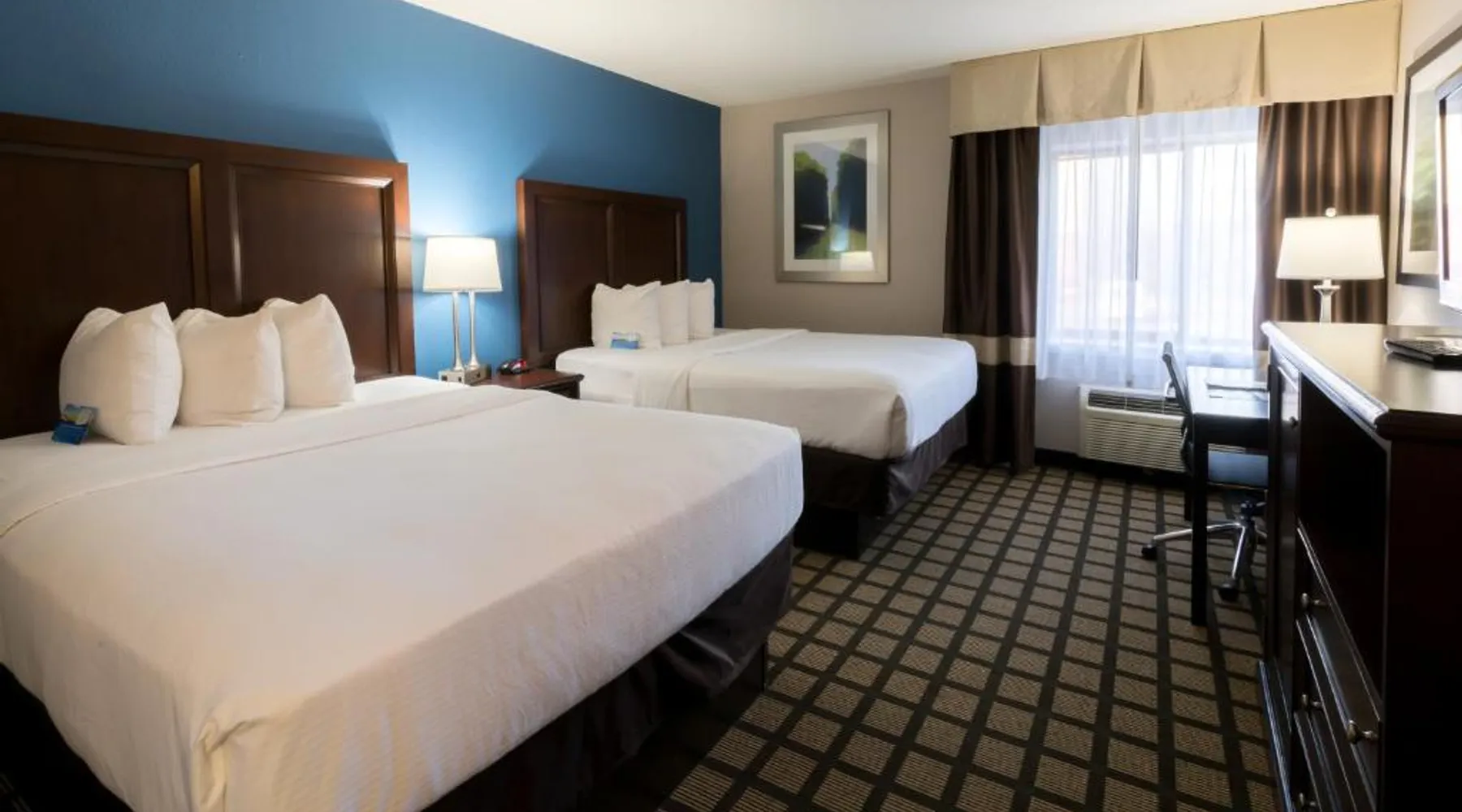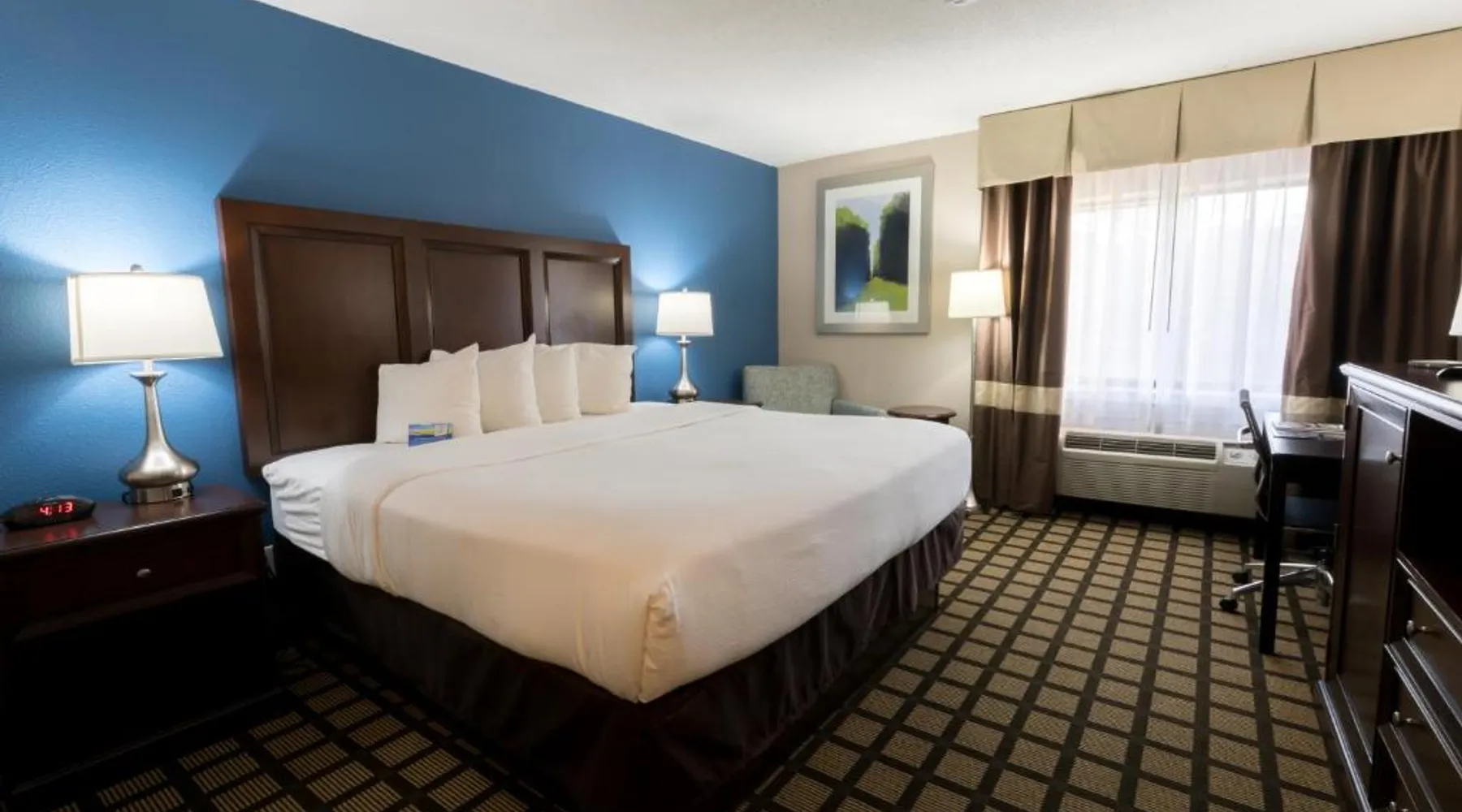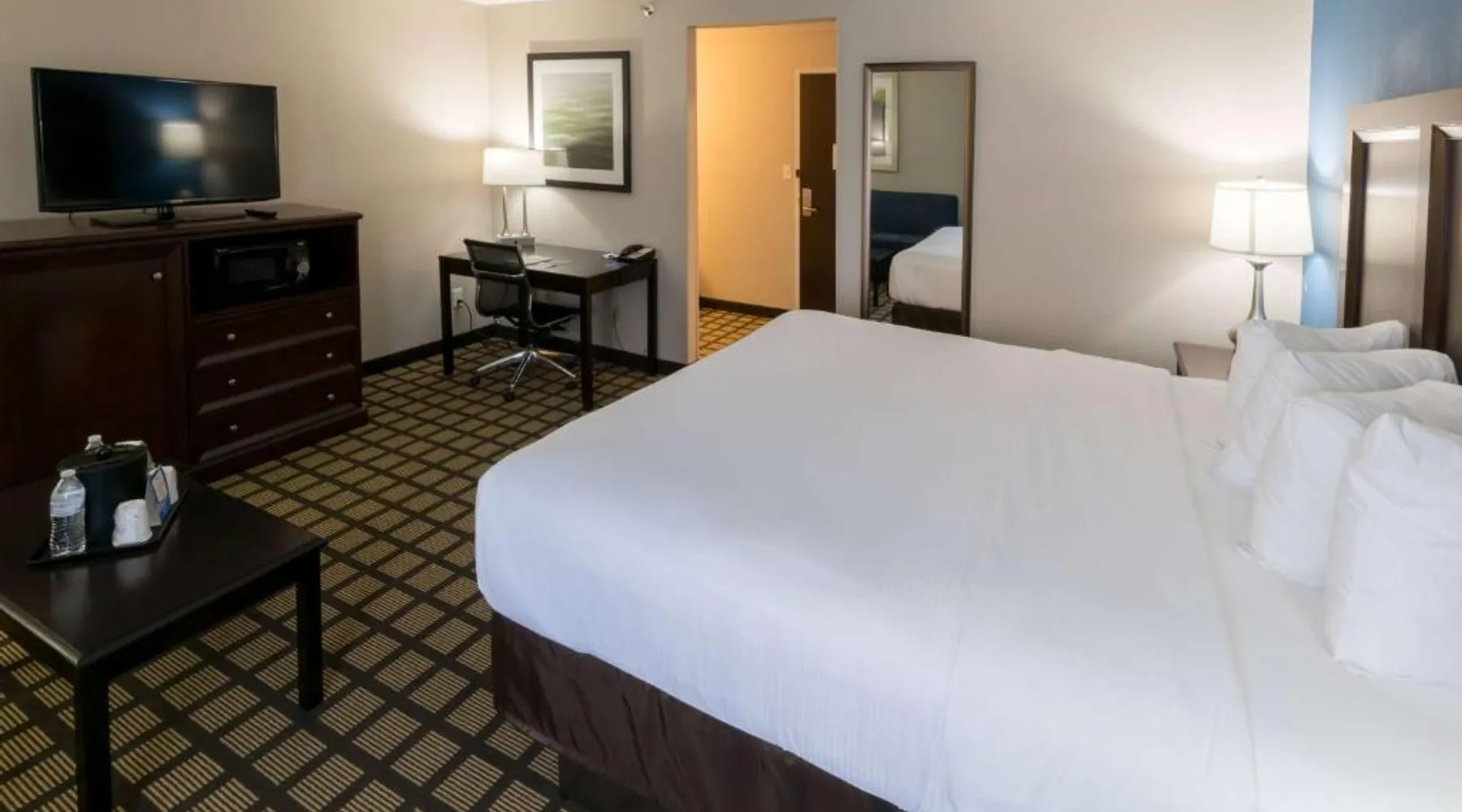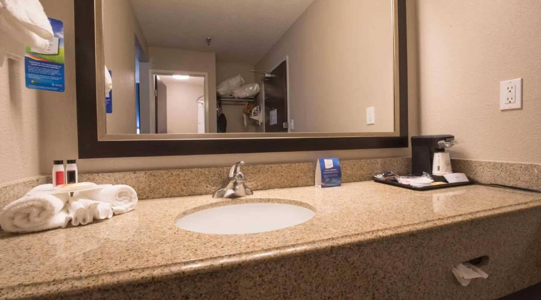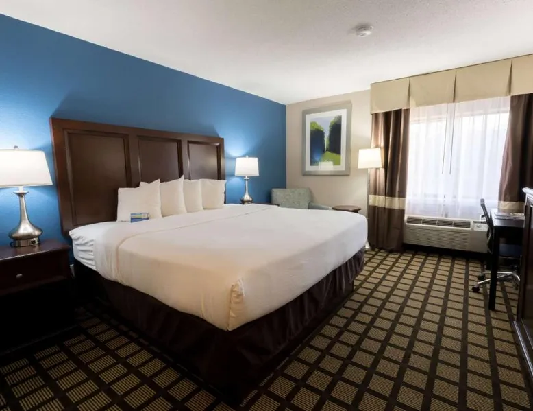 Less than 6 minutes’ drive from Detroit Metropolitan Wayne County Airport, this hotel features guest rooms with free Wi-Fi and flat-screen TVs. A complimentary hot breakfast is served each morning. Tea and coffee-making facilities are included in each room at Baymont by Wyndham Detroit Airport/Romulus A hairdryer and ironing facilities are also provided in each room. A free 24-hour airport transfer service is provided to all guests of Baymont by Wyndham Detroit Airport/Romulus. Laundry facilities and a business center are available on site. Guests can also enjoy a workout in the fitness center on the property. Motor City Casino, Ford Field and Detroit city center are within 20 minutes’ drive of this hotel. The Henry Ford Museum is 11 miles away. Featuring free toiletries, this quadruple room includes a private bathroom with a bath or a shower and a hairdryer. The quadruple room has carpeted floors, a seating area with a flat-screen TV with streaming services, air conditioning, a tea and coffee maker, as well as a wardrobe. The unit has 1 bed.