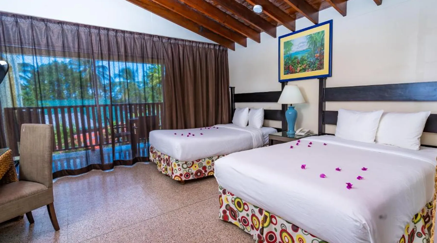 This oceanfront resort is set in Scarborough, Tobago, just 5 miles from the city center. It offers buffet-style dining, poolside bars and recreation options that include scuba diving and deep-sea fishing. Modern rooms provide private balconies with ocean views. Guests at Starfish Tobago can enjoy snorkeling or kayaking in the Caribbean Sea. Bike rentals are also available to explore the property and its tropical gardens. Starfish Tobago guest rooms are styled with light colors and feature a small seating area. A TV and a safety deposit box are also included. The traditional Kiskadee Restaurant serves buffet dinner, with an optional à la carte menu, while the Courlanders Deck restaurant opens for breakfast and lunch overlooking the beach. Later, guests can sip creative cocktails at the swim-up Surf Bar or Crusoe Bar. This property is about a 20-minute drive from Crown Point International Airport. A 9 and 18-hole golf course is also nearby. This spacious room features a balcony or patio with ocean views, as well as a cable TV, a telephone and a mini-fridge. The mini-fridge is restocked weekly. The private bathroom comes with a toilet, hair dryer and a bathtub or shower.