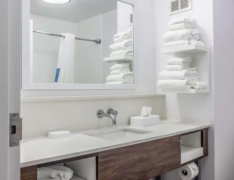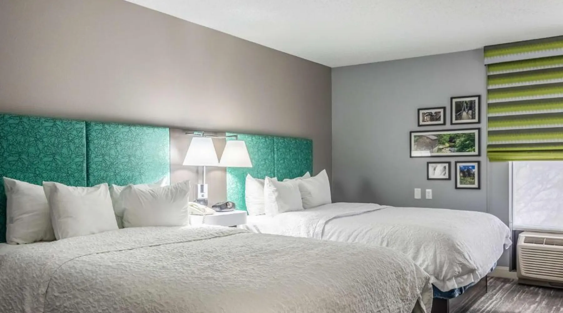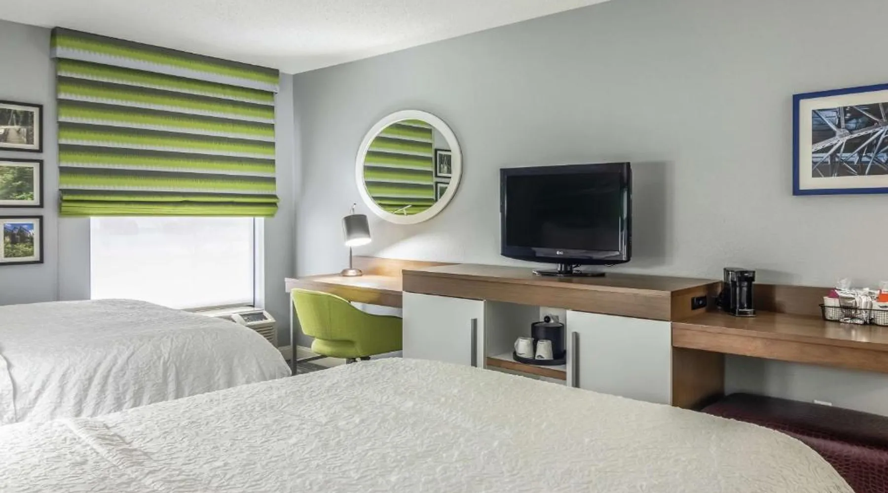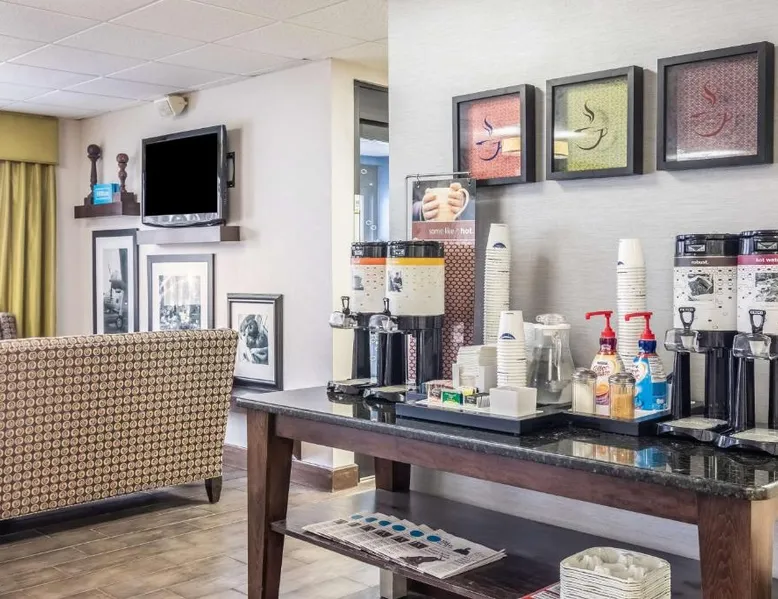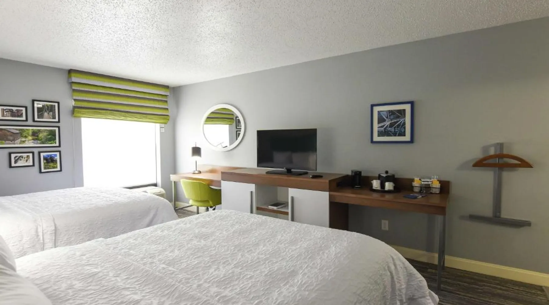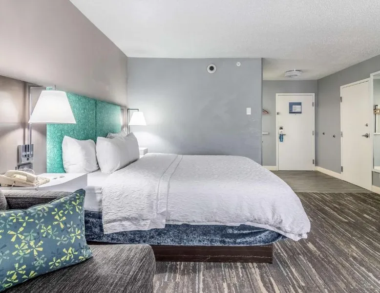 Comfortable Accommodations: Hampton Inn Youngstown-North in Youngstown offers family rooms with free WiFi, air-conditioning, and modern amenities. Each room includes a tea and coffee maker, hairdryer, sofa bed, refrigerator, free toiletries, shower, and TV. Leisure Facilities: Guests can enjoy an indoor swimming pool, fitness center, and outdoor fireplace. Additional facilities include a lounge, casino, and fitness room. Free on-site parking is available. Convenient Location: Located 25 mi from The Links at Firestone Farms, the hotel is near attractions such as Youngstown State University and the Butler Institute of American Art. Guest Services: The property features a 24-hour front desk, daily housekeeping, business area, and luggage storage. Guests appreciate the room cleanliness, attentive staff, and nearby food and drink options. This quadruple room provides a tea and coffee maker and a flat-screen TV. The unit offers 2 beds.