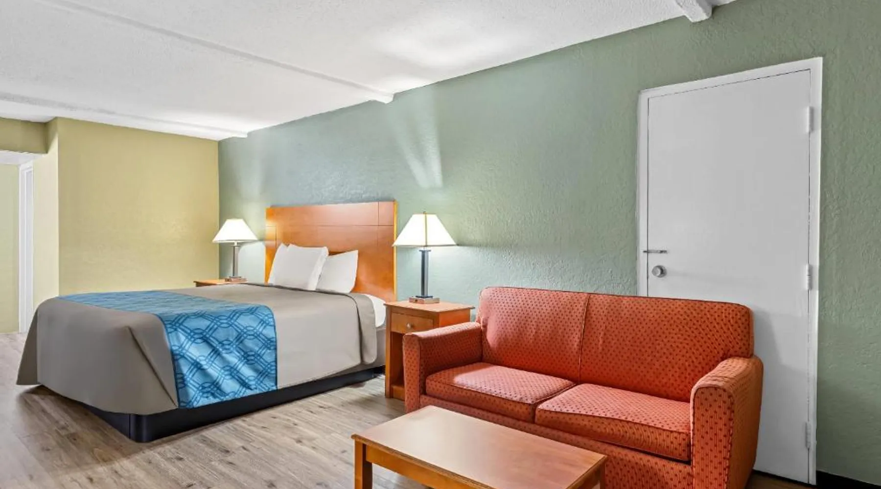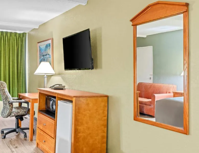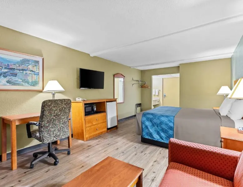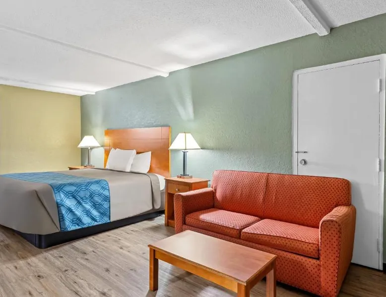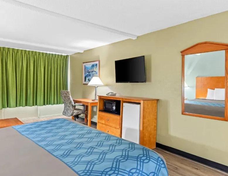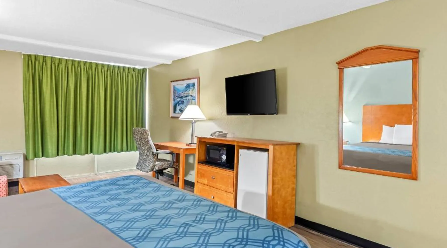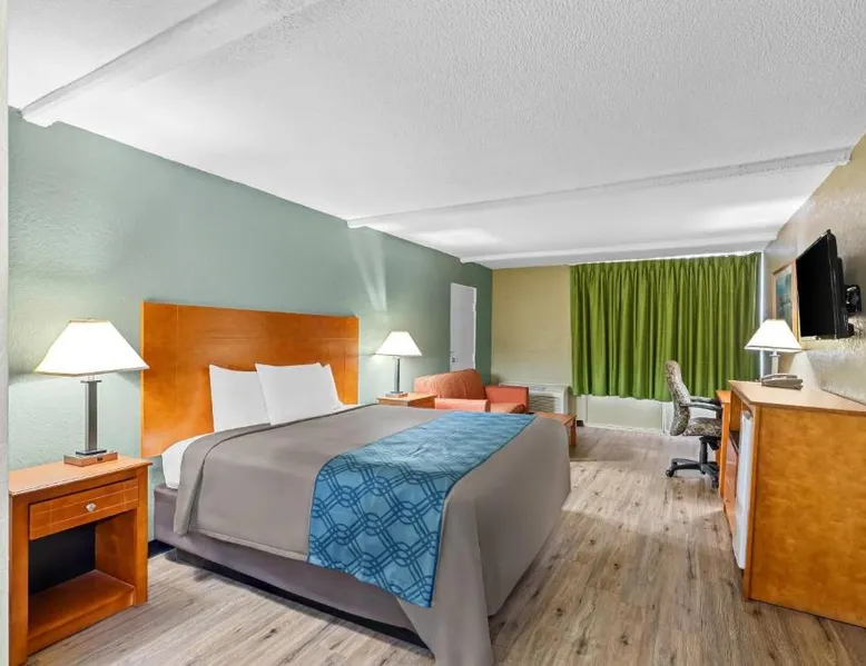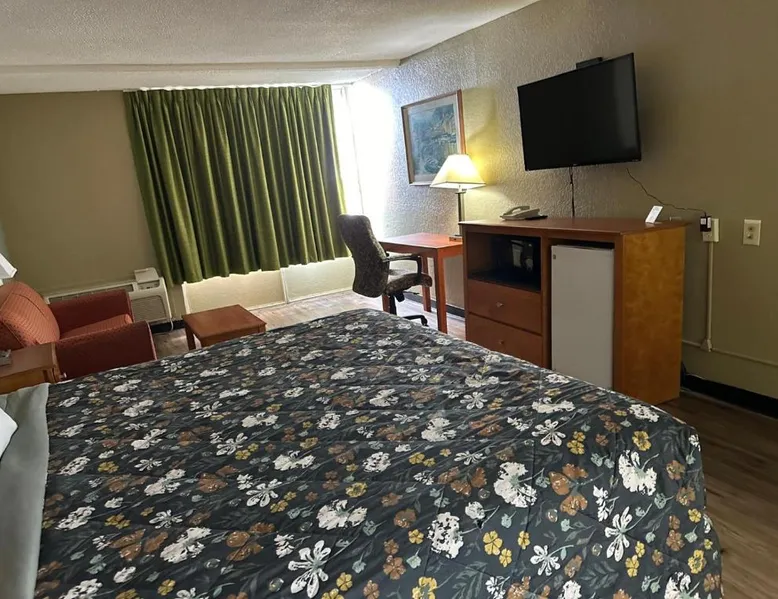 Comfortable Accommodations: Rodeway Inn Stone Mountain in Tucker offers air-conditioned rooms with refrigerators, tea and coffee makers, work desks, showers, and TVs. Free WiFi is available throughout the property. Convenient Facilities: Guests benefit from a 24-hour front desk, housekeeping service, and free on-site private parking. Additional amenities include a work desk, shower, and TV. Local Attractions: Historic Stone Mountain Village is 3.1 mi away, Stone Mountain Carving 6.2 mi, and Atlanta Botanical Garden 12 mi from the inn. Other nearby points include the High Museum of Art and Atlantic Station. This room features a cable TV, a telephone and ironing facilities.
