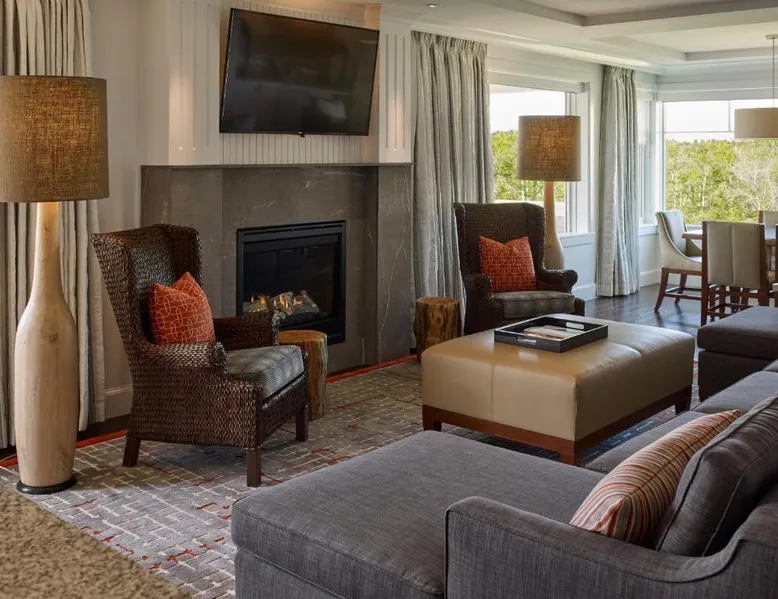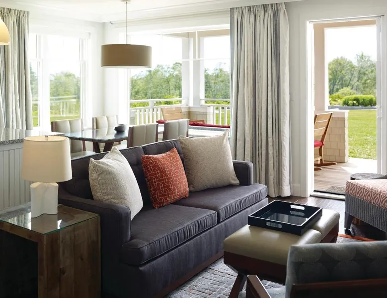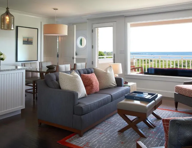Comfortable Accommodations: Inn By the Sea in Cape Elizabeth offers family rooms with sea views, balconies, and private bathrooms. Each room includes air-conditioning, a work desk, and a flat-screen TV. Wellness and Leisure: Guests can enjoy spa facilities, a swimming pool with a view, fitness center, sun terrace, and garden. Additional amenities include a steam room, sauna, and yoga classes. Dining Experience: The traditional, romantic restaurant serves American cuisine with vegetarian, vegan, and gluten-free options. Brunch, lunch, and dinner are available, alongside cocktails at the bar. Location and Attractions: Located 9.3 mi from Portland International Jetport, the hotel is a 12-minute walk from Crescent Beach. Nearby attractions include Merrill Auditorium and Portland Observatory. This suite features a loft area, spacious bathroom, and views of the ocean. A refrigerator, microwave and coffeemaker are also provided. Pet friendly subject to availability.